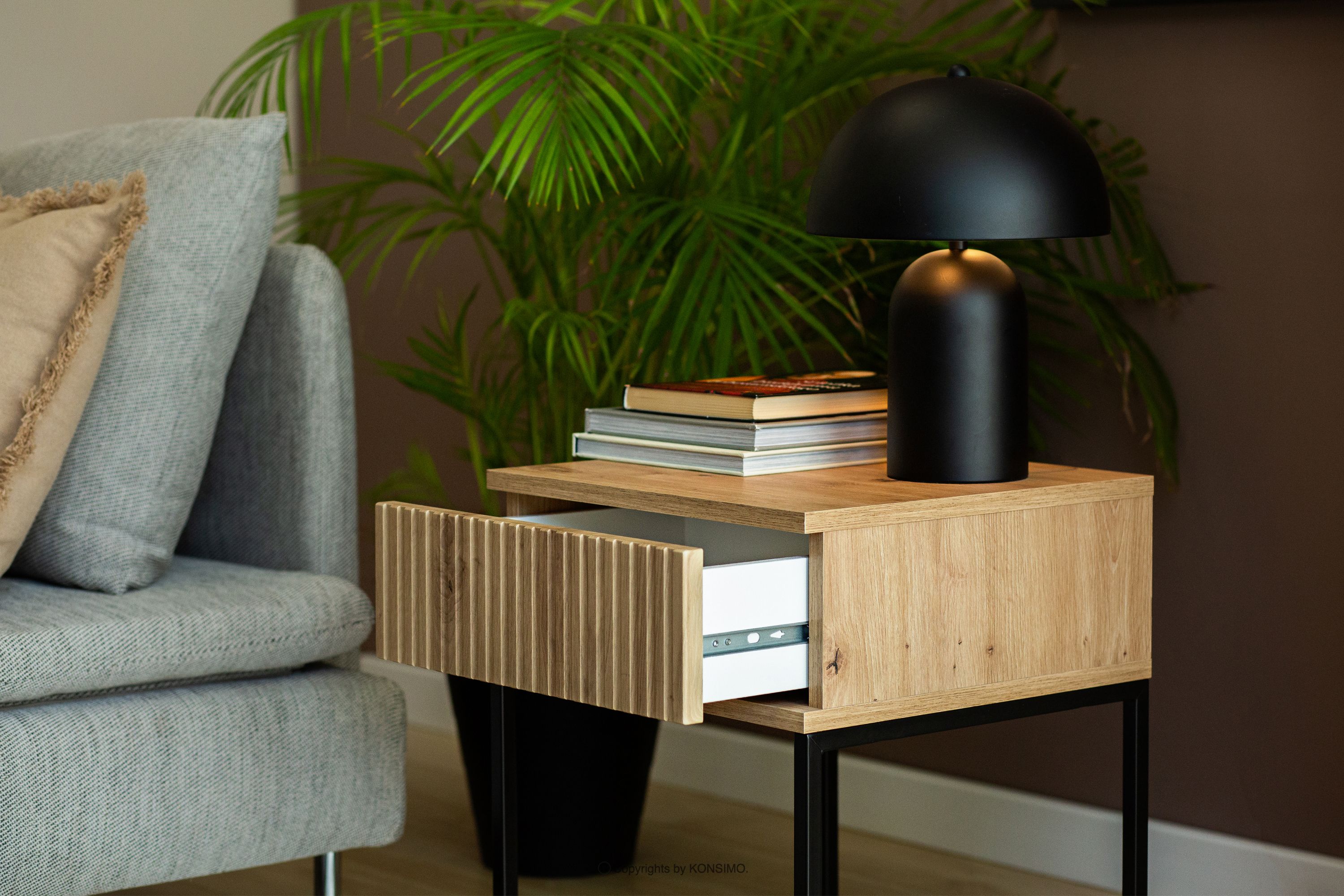 RECTUS Objav celú kolekciu Nočný stolík so zásuvkou moderný dub artisan- farba dub artisan/čierna