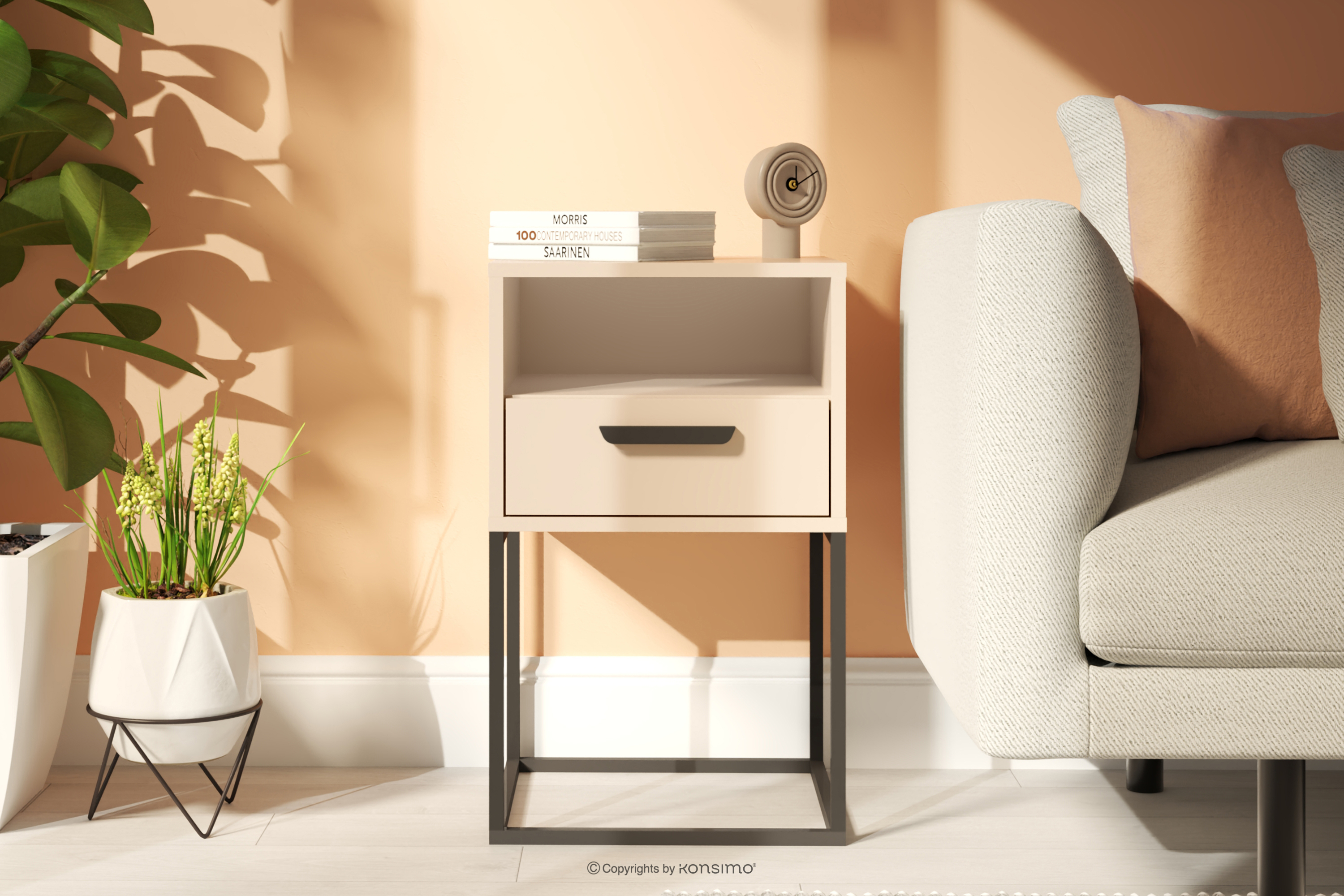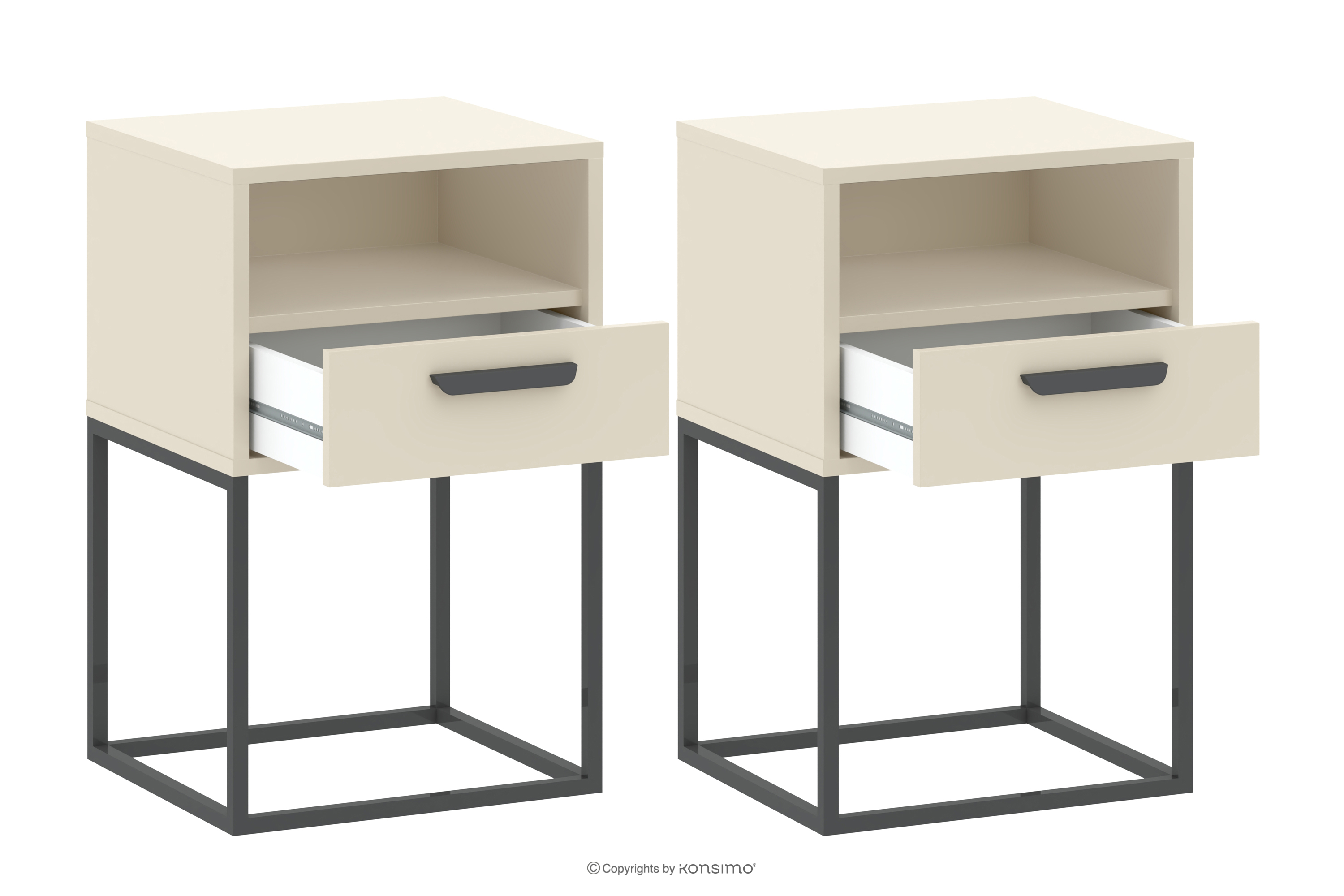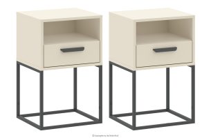 Malý krémový nočný stolík so zásuvkou 2 ks spojením funkčnosti, minimalistického dizajnu a najvyššej kvality spracovania. Perfektne zapadajú do súčasných trendov v interiérovom dizajne a ponúkajú praktické riešenia v elegantnej forme. Vďaka použitiu odolných materiálov tieto stolíky splnia očakávania aj tých najnáročnejších používateľov. Minimalistický vzhľad ide ruka v ruke s funkčnosťou – stoly sú vybavené priestrannou zásuvkou, do ktorej sa zmestia všetky potrebné drobnosti, ako sú knihy, okuliare alebo nabíjačka na telefón.