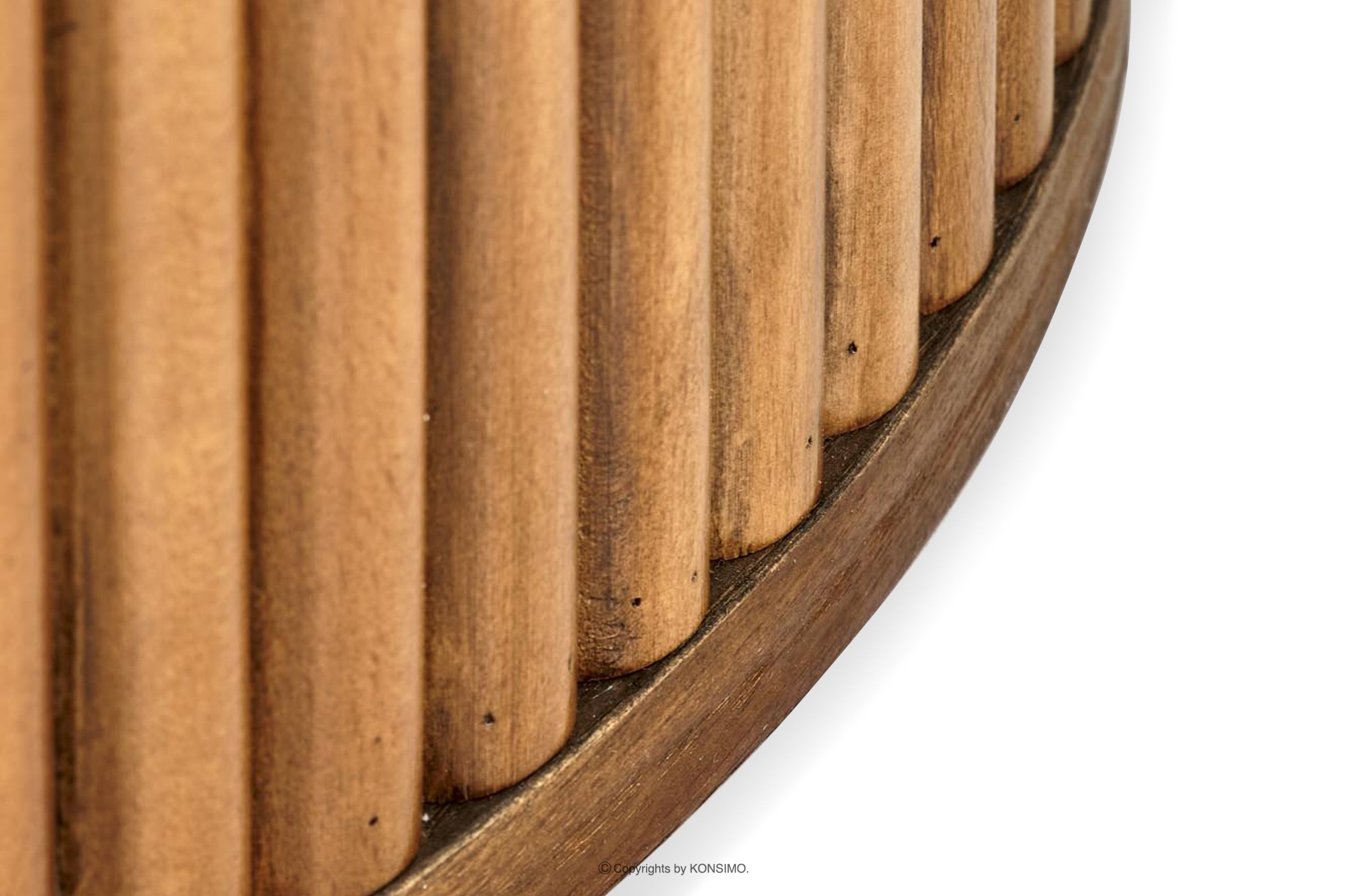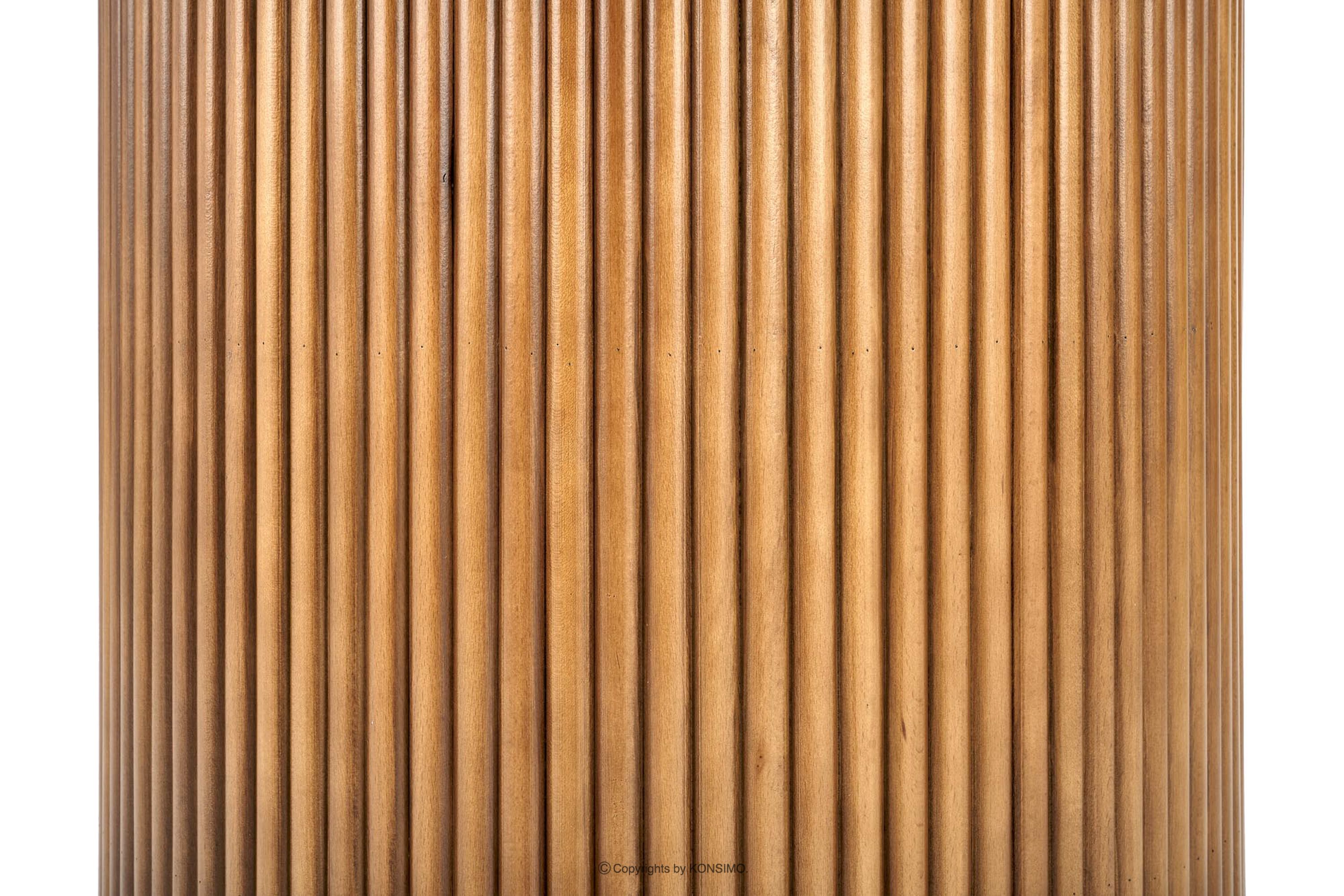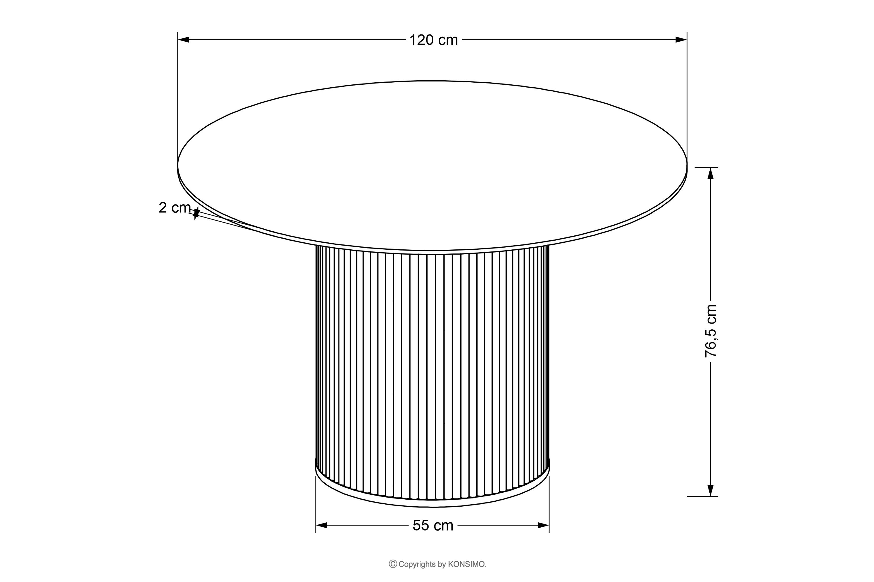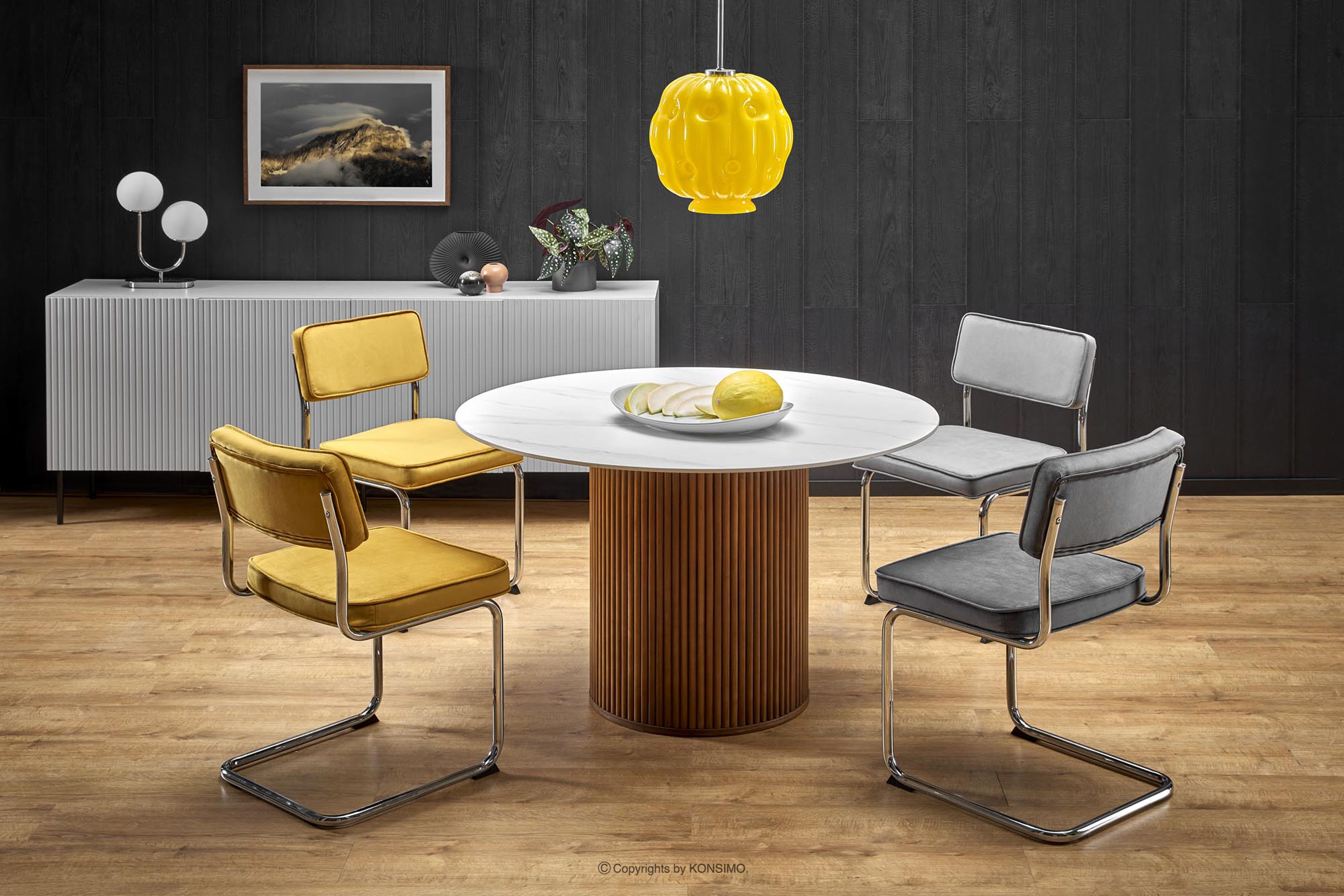 Exkluzívny okrúhly stôl spájajúci prírodnú eleganciu s moderným dizajnom. Centrálne umiestnená noha z masívneho dreva poskytuje stabilnú základňu a dodáva nábytku teplo a prírodný charakter. Luxusná keramická doska v jedinečnom dekore matného mramoru poteší svojím jemným vzorom a eleganciou. Okrúhly tvar podporuje voľnú konverzáciu a rovnaký prístup k stolu pre všetkých hostí.