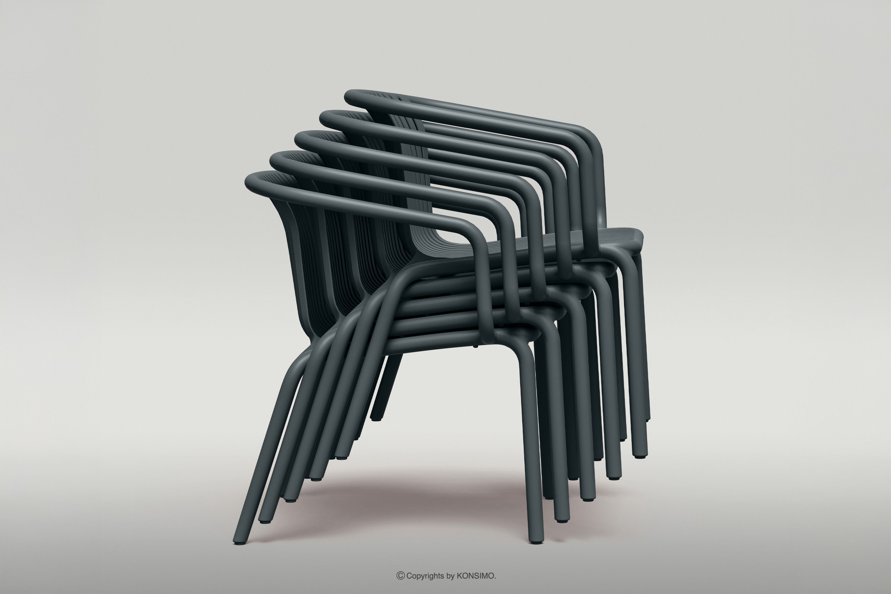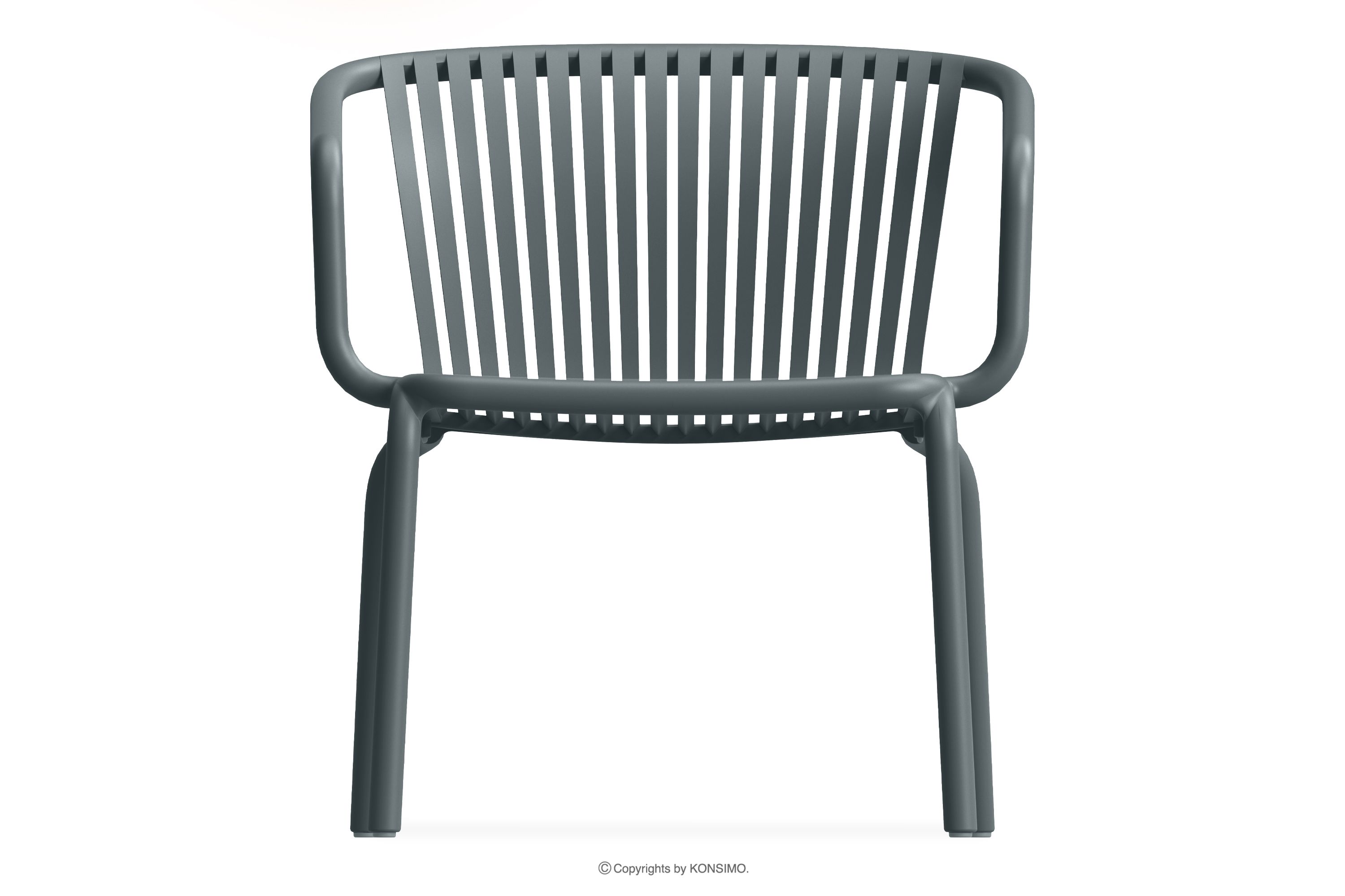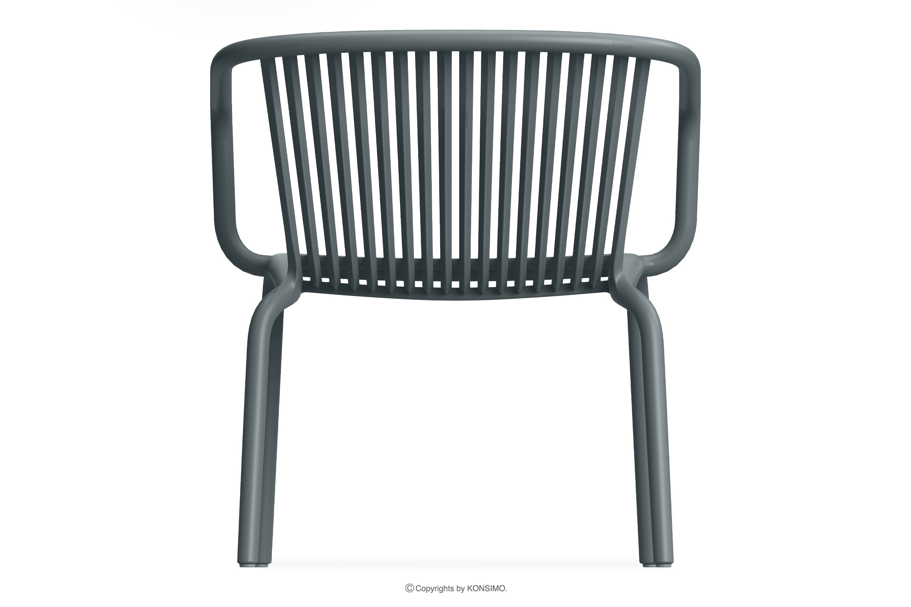 Záhradné kreslo s podrúčkami polypropylén so sklenenými vláknami antracitová ideálne spája minimalistickú estetiku s výnimočnou funkčnosťou. Vyrobený z vysoko kvalitného plastu – špeciálnej zmesi polypropylénu obohateného sklenenými vláknami – zaručuje bezkonkurenčnú odolnosť a odolnosť voči meniacim sa poveternostným podmienkam. Inovatívna konštrukcia každého prvku zabraňuje hromadeniu dažďovej vody, vďaka čomu nábytok rýchlo schne aj po intenzívnych zrážkach.