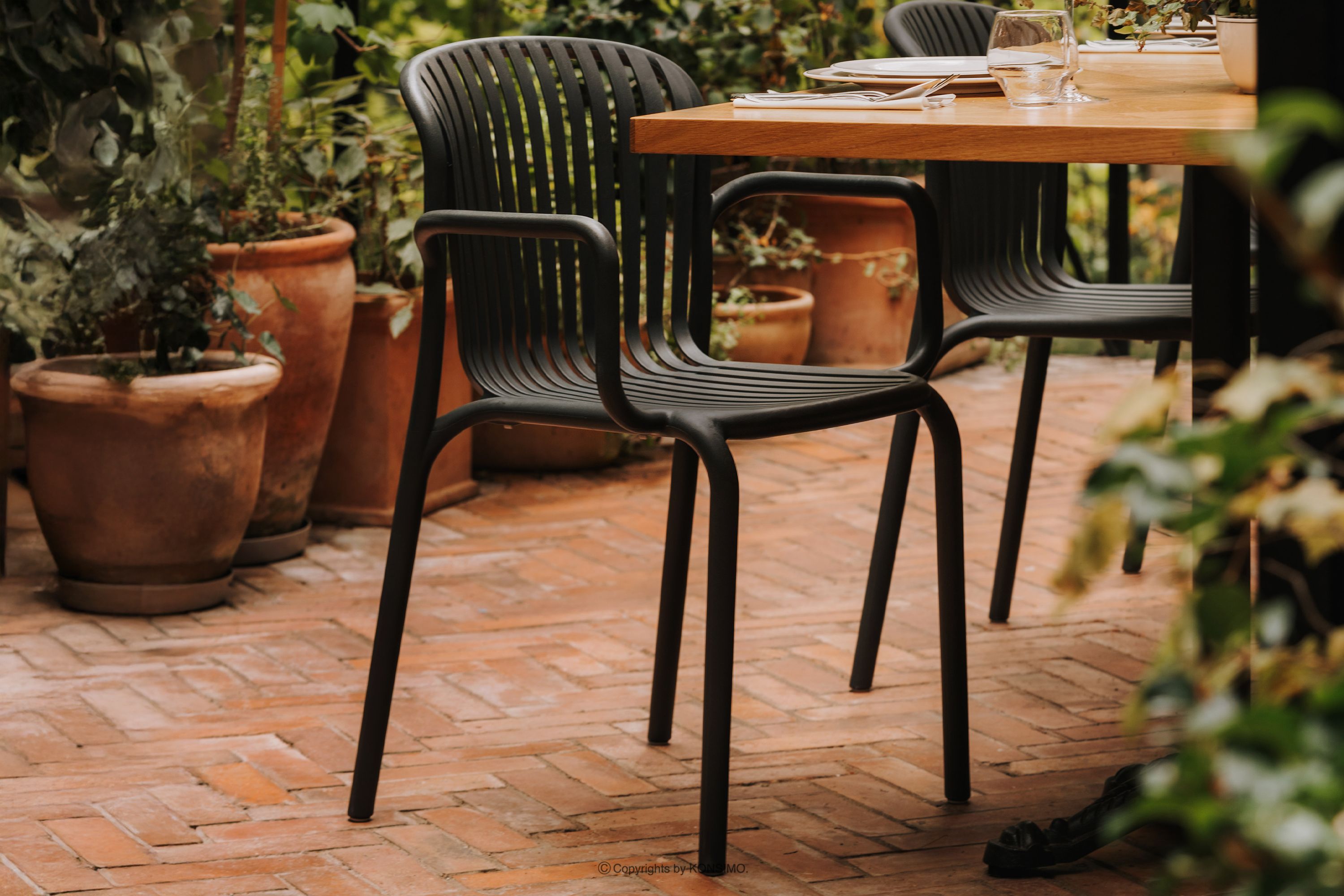 Stôl so stoličkami do záhrady antracitová farba 6 os. ideálne spája minimalistickú estetiku s výnimočnou funkčnosťou. Vyrobený z vysoko kvalitného plastu – špeciálnej zmesi polypropylénu obohateného sklenenými vláknami – zaručuje bezkonkurenčnú odolnosť a odolnosť voči meniacim sa poveternostným podmienkam. Inovatívna konštrukcia každého prvku zabraňuje hromadeniu dažďovej vody, vďaka čomu nábytok rýchlo schne aj po intenzívnych zrážkach.