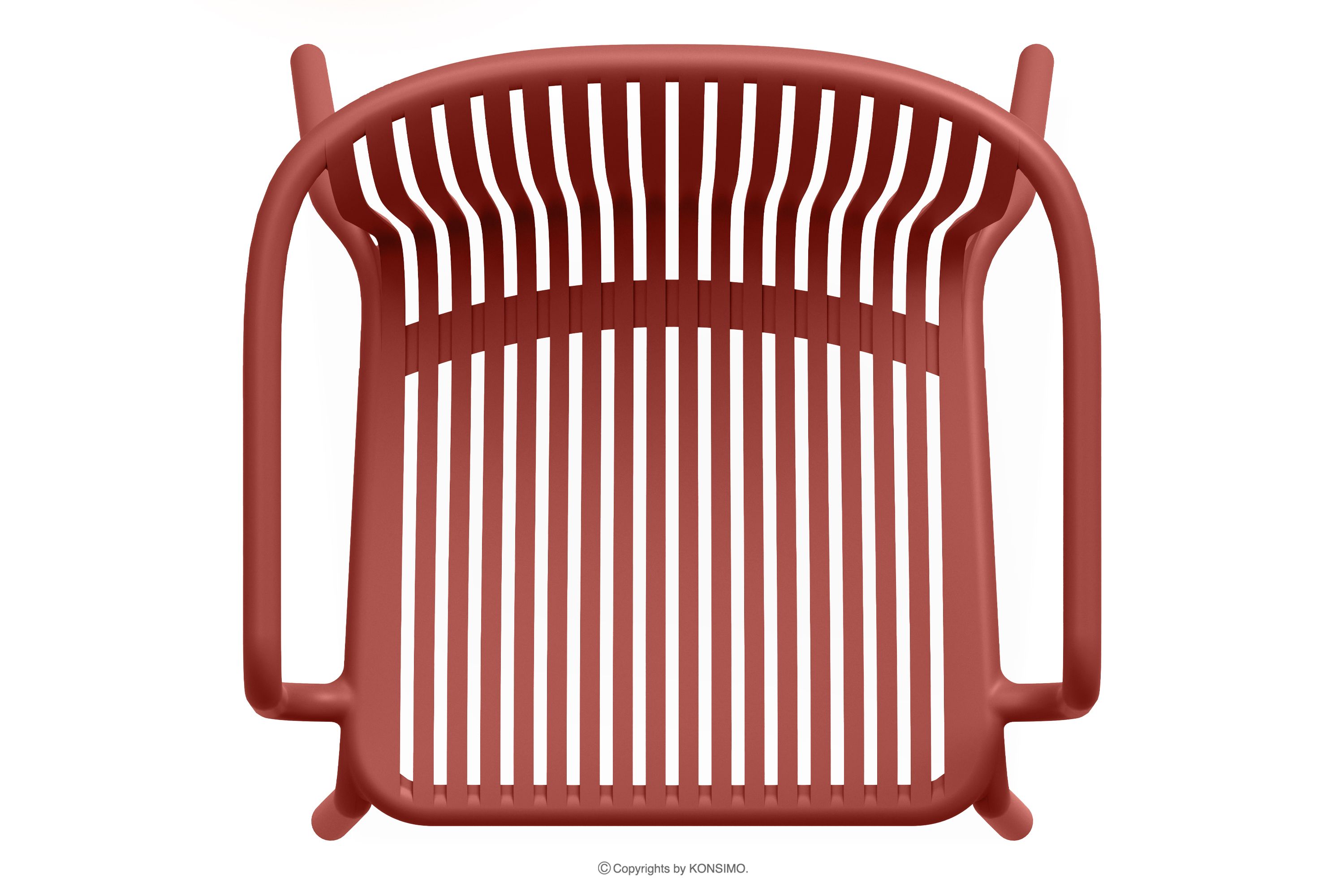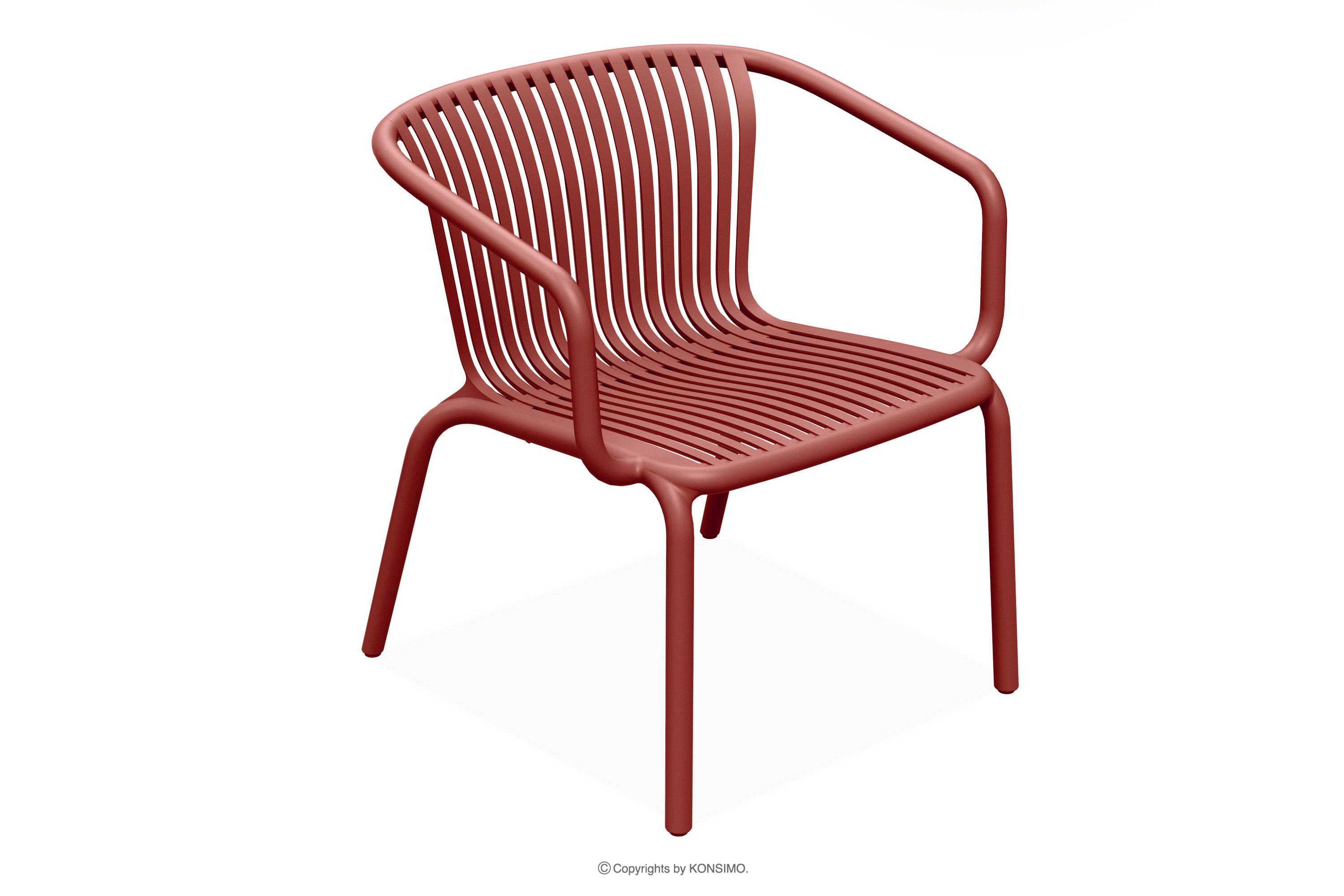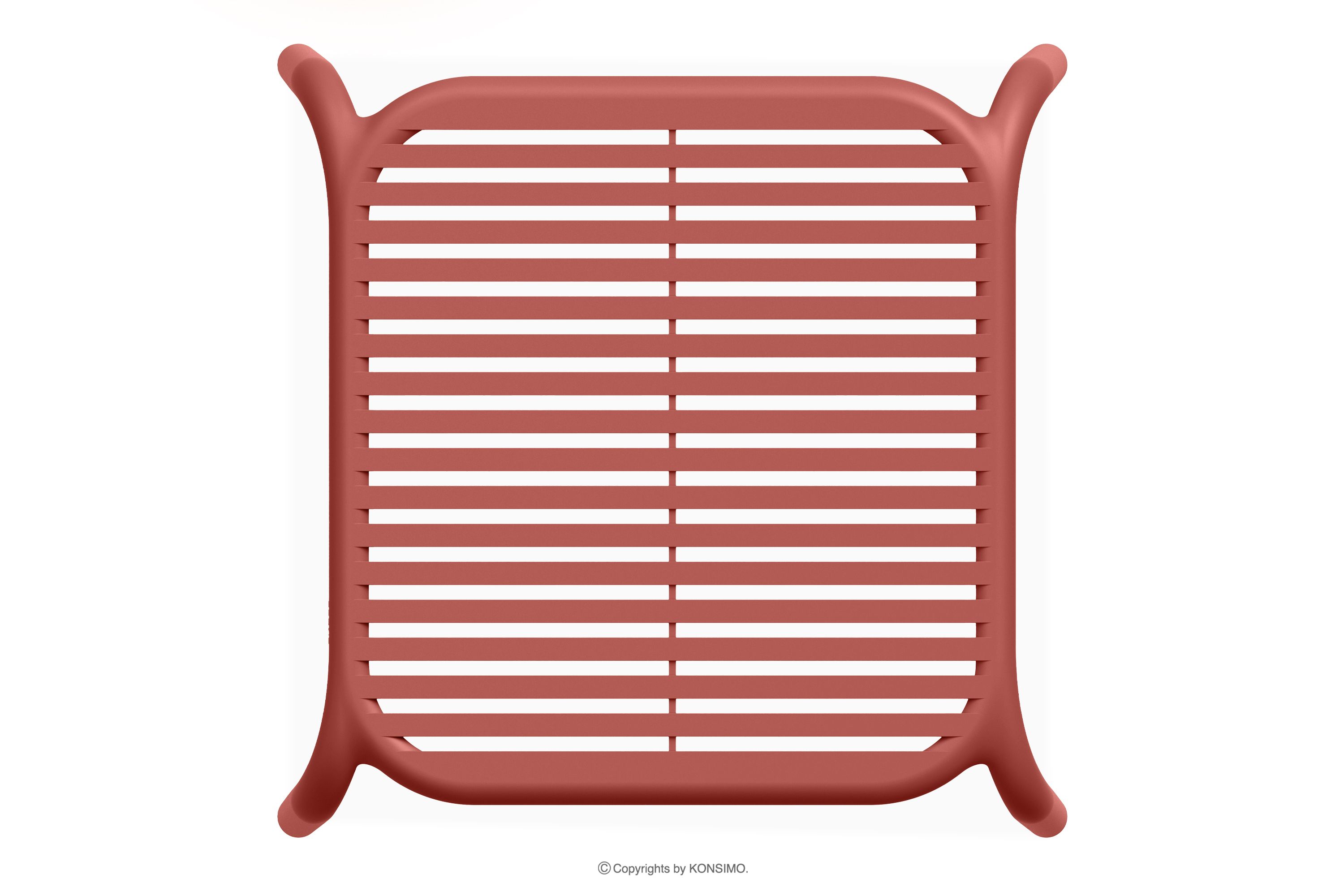 Sada nábytku na balkón polypropylén so sklenenými vláknami červená 2 osoby. ideálne spája minimalistickú estetiku s výnimočnou funkčnosťou. Vyrobený z vysoko kvalitného plastu – špeciálnej zmesi polypropylénu obohateného sklenenými vláknami – zaručuje bezkonkurenčnú odolnosť a odolnosť voči meniacim sa poveternostným podmienkam. Inovatívna konštrukcia každého prvku zabraňuje hromadeniu dažďovej vody, vďaka čomu nábytok rýchlo schne aj po intenzívnych zrážkach.