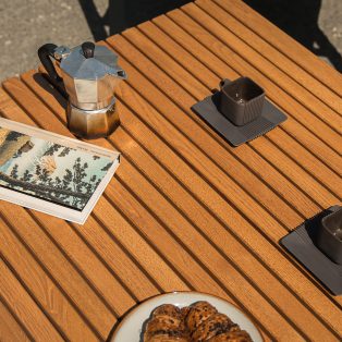 - čistenie a údržba: aby sa zachoval pôvodný vzhľad nábytku, odporúčame pravidelnú údržbu (1–3 krát za sezónu, v závislosti od poveternostných podmienok) pomocou olejov na vonkajší nábytok vhodných pre tvrdé drevo