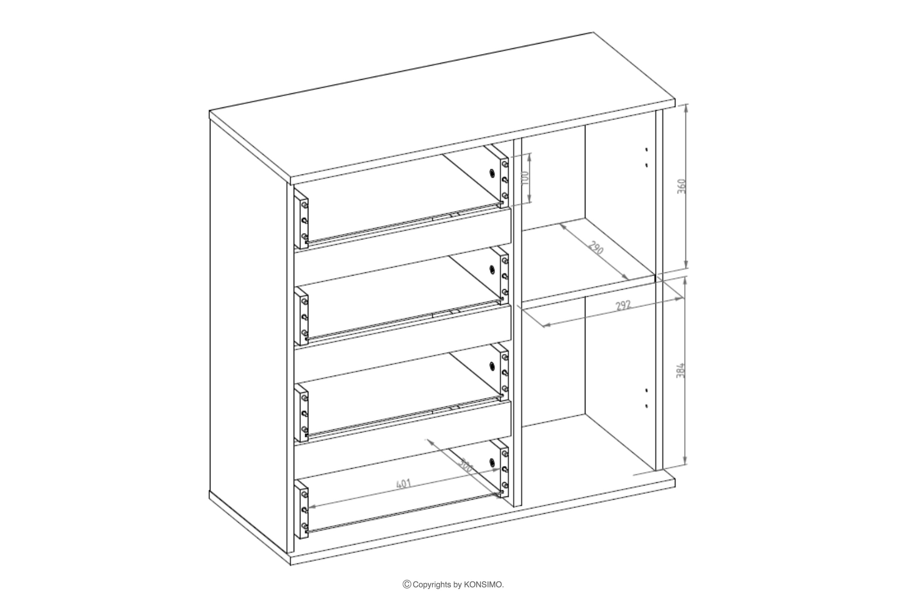 - Materiál prednej časti: 16 mm laminovaná doska, Lišty MDF