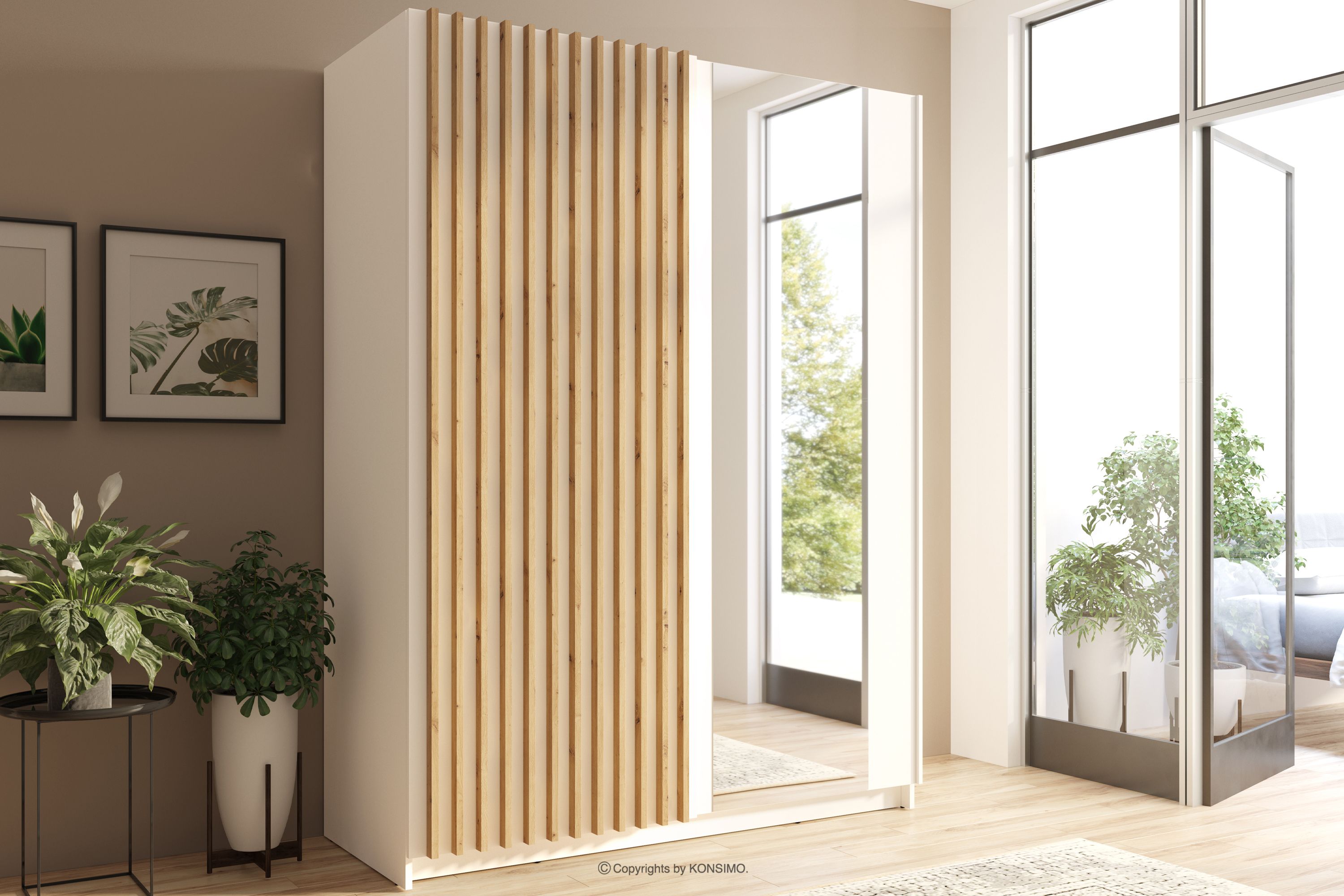 CASTARI Objav celú kolekciu Veľká posuvná šatníková skriňa s lamelami a zrkadlom biela/dub artisan- farba biely/dub artisan