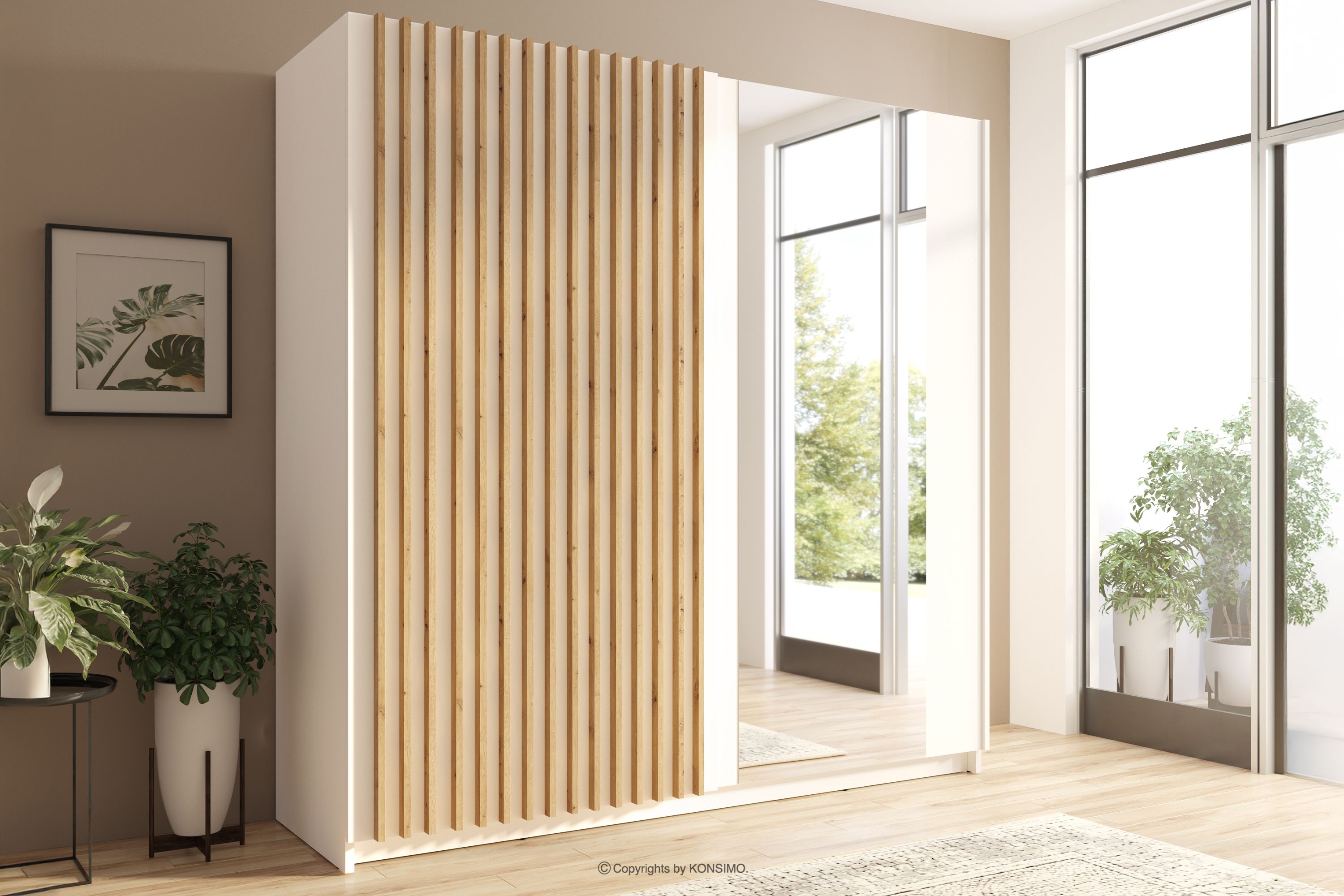 CASTARI Objav celú kolekciu Veľká šatníková skriňa so zrkadlom a lamelami biela/dub artisan- farba biely/dub artisan