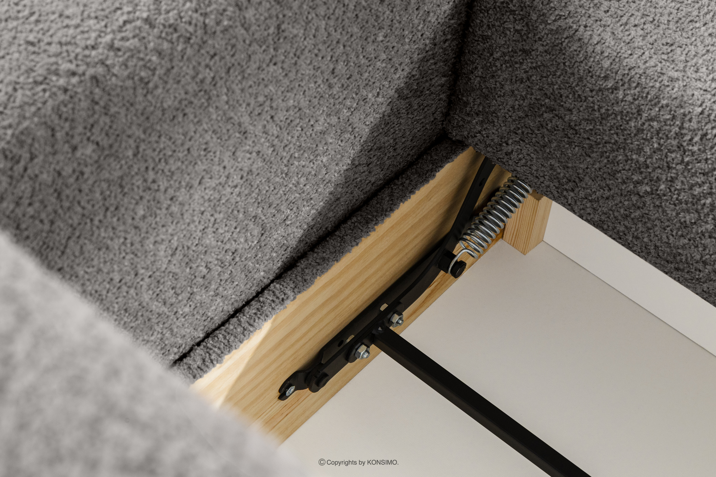 Trojmiestna pohovka s vankúšmi rozkladacia látka boucle tmavosivá je stelesnením moderného komfortu a funkčnosti, navrhnutý s ohľadom na moderné interiéry a požiadavky každodenného používania. Elegantné, minimalistické línie pôsobia v harmónii s premysleným dizajnom, ktorý spája estetiku a praktickosť. Je vybavená rozkladacím systémom typu DL a kontajnerom na lôžkoviny, vďaka čomu je ideálnym riešením do malých bytov alebo hosťovských izieb.