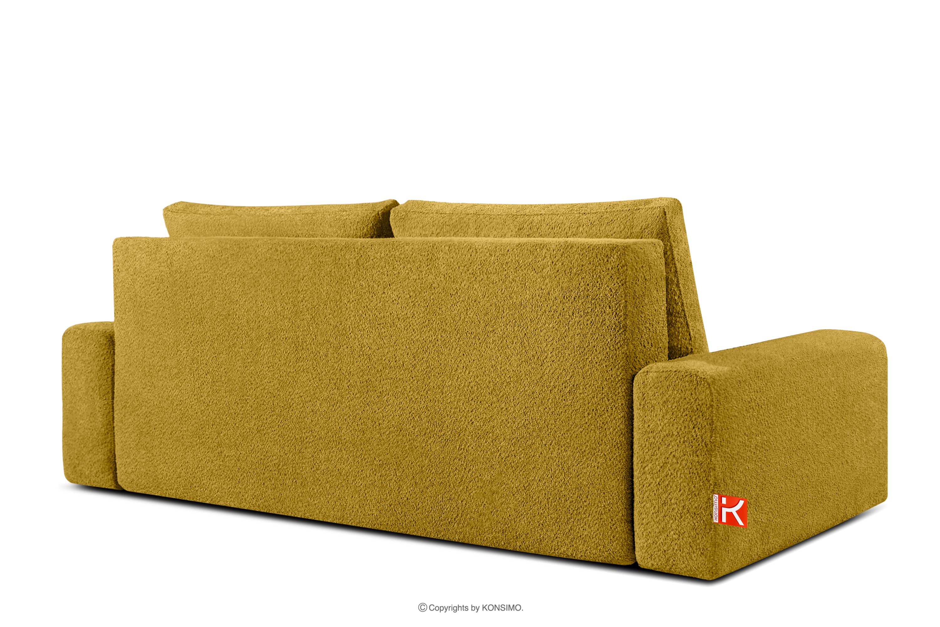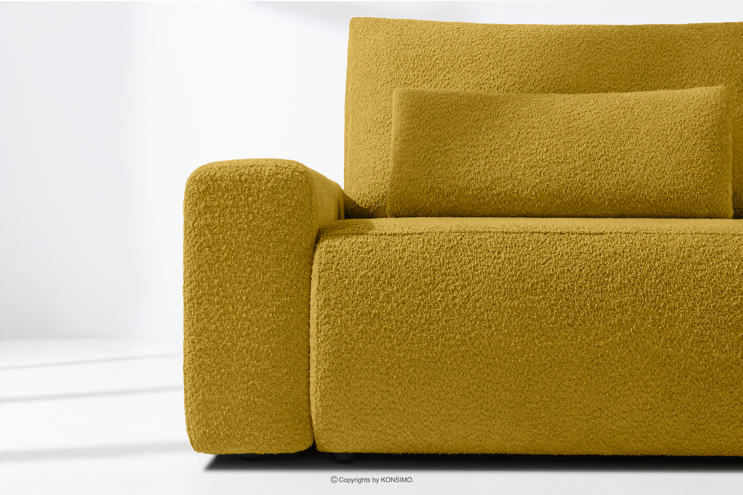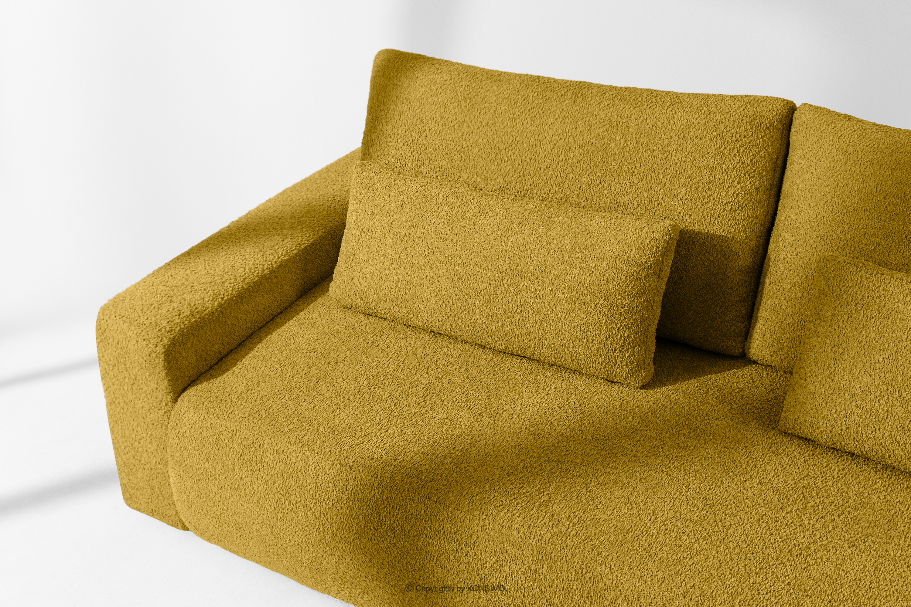 MOLLIS Objav celú kolekciu Trojmiestna pohovka s vankúšmi rozkladacia boucle látka žltá- farba žltá