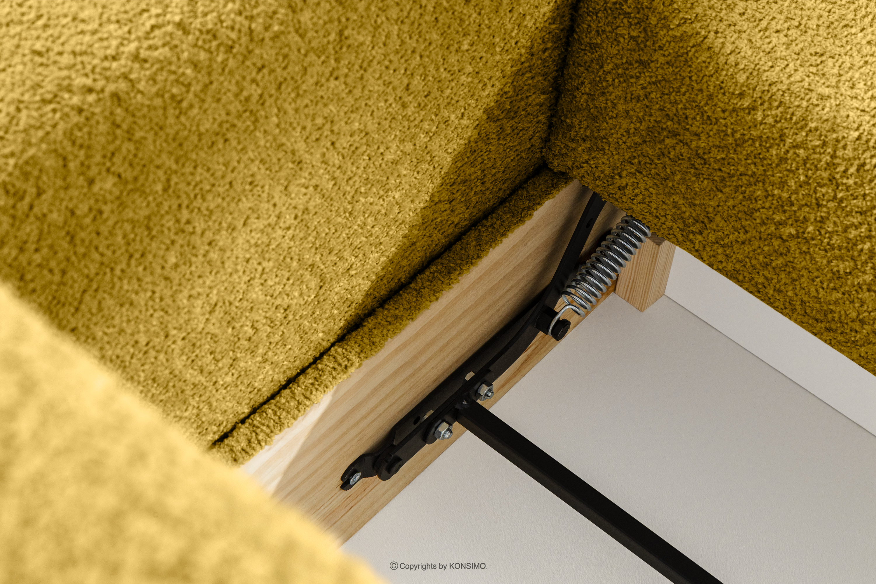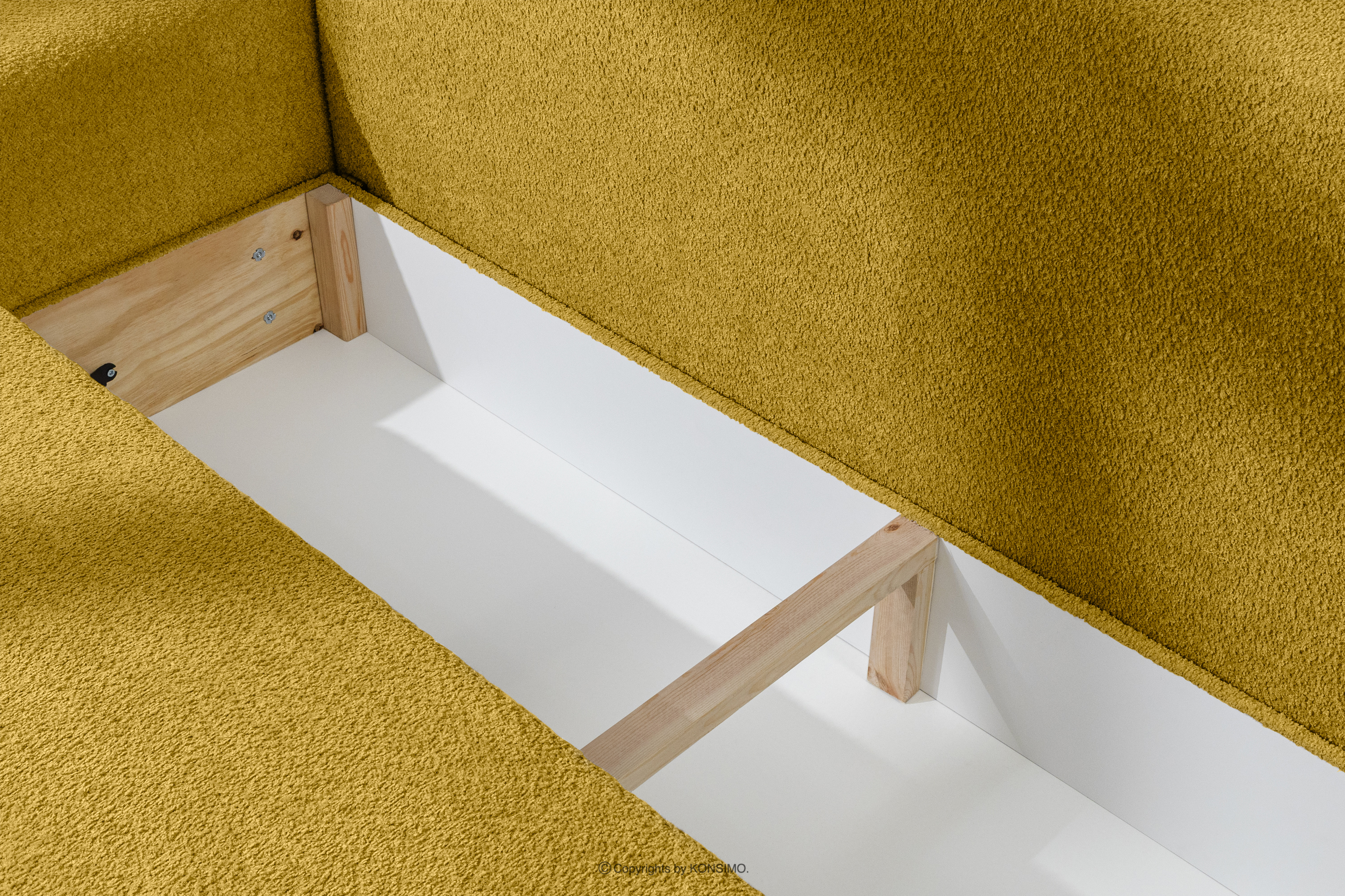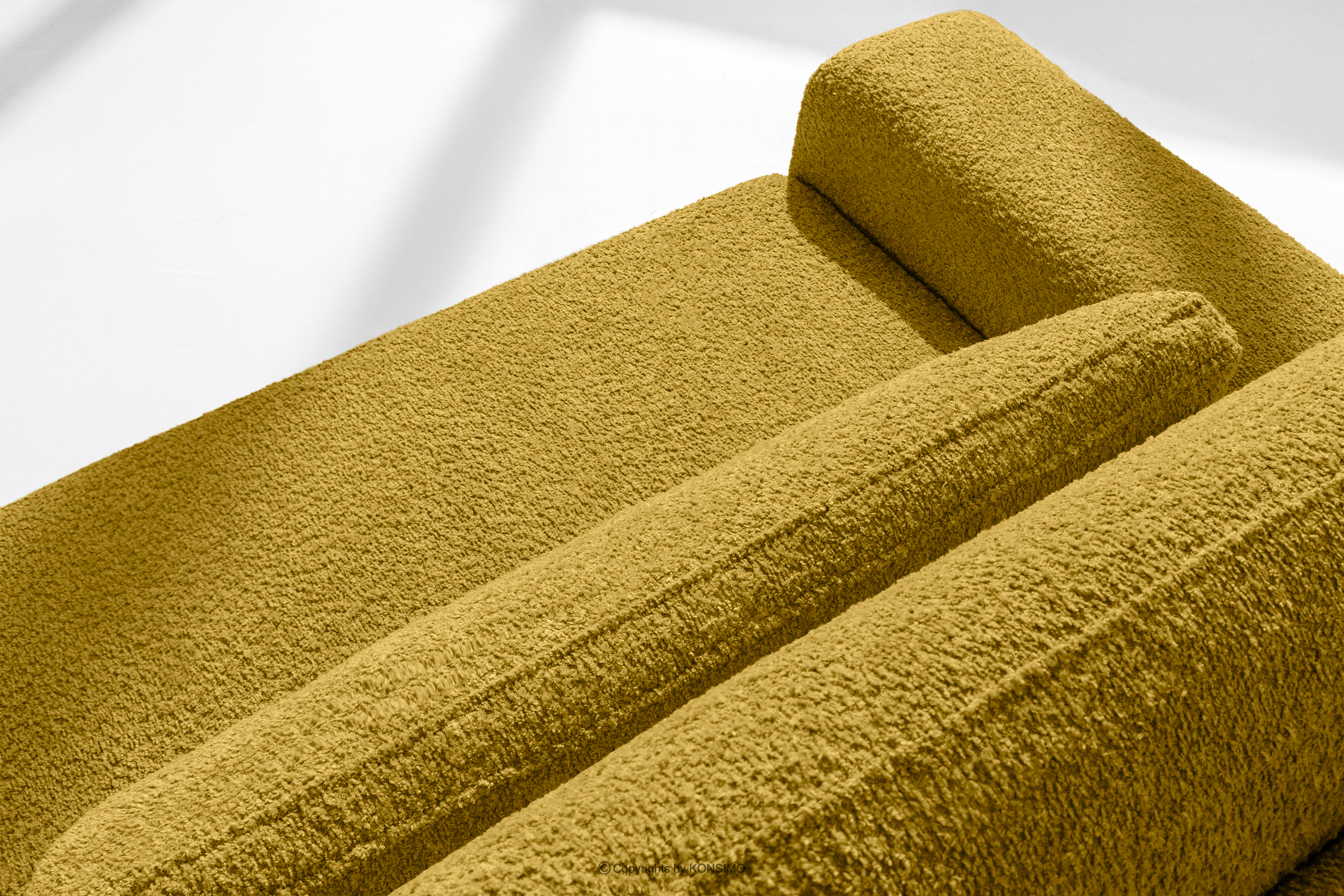 MOLLIS Objav celú kolekciu Trojmiestna pohovka s vankúšmi rozkladacia boucle látka žltá- farba žltá