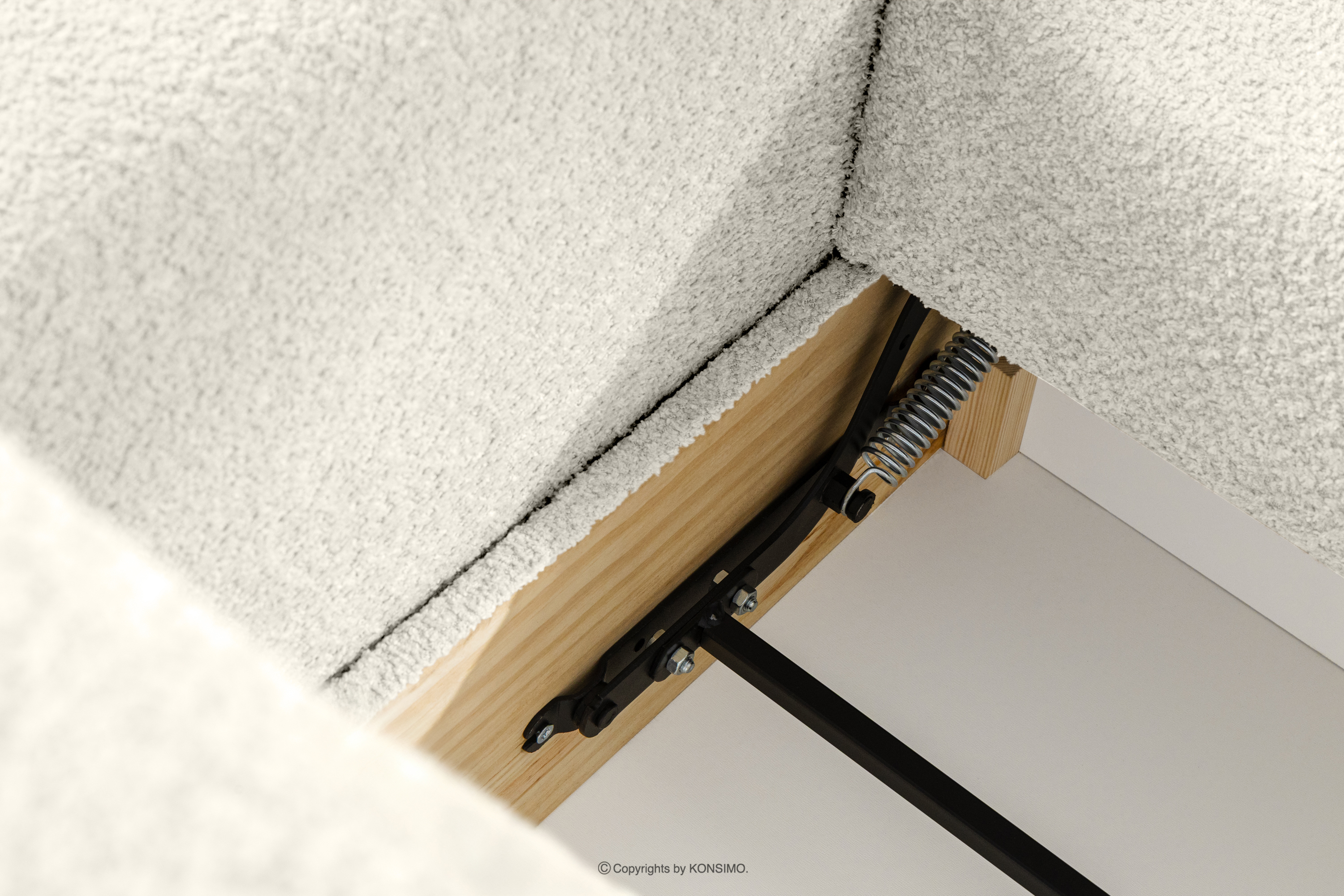 Rozkladacia pohovka s vankúšmi látka boucle biela je stelesnením moderného komfortu a funkčnosti, navrhnutý s ohľadom na moderné interiéry a požiadavky každodenného používania. Elegantné, minimalistické línie pôsobia v harmónii s premysleným dizajnom, ktorý spája estetiku a praktickosť. Je vybavená rozkladacím systémom typu DL a kontajnerom na lôžkoviny, vďaka čomu je ideálnym riešením do malých bytov alebo hosťovských izieb.