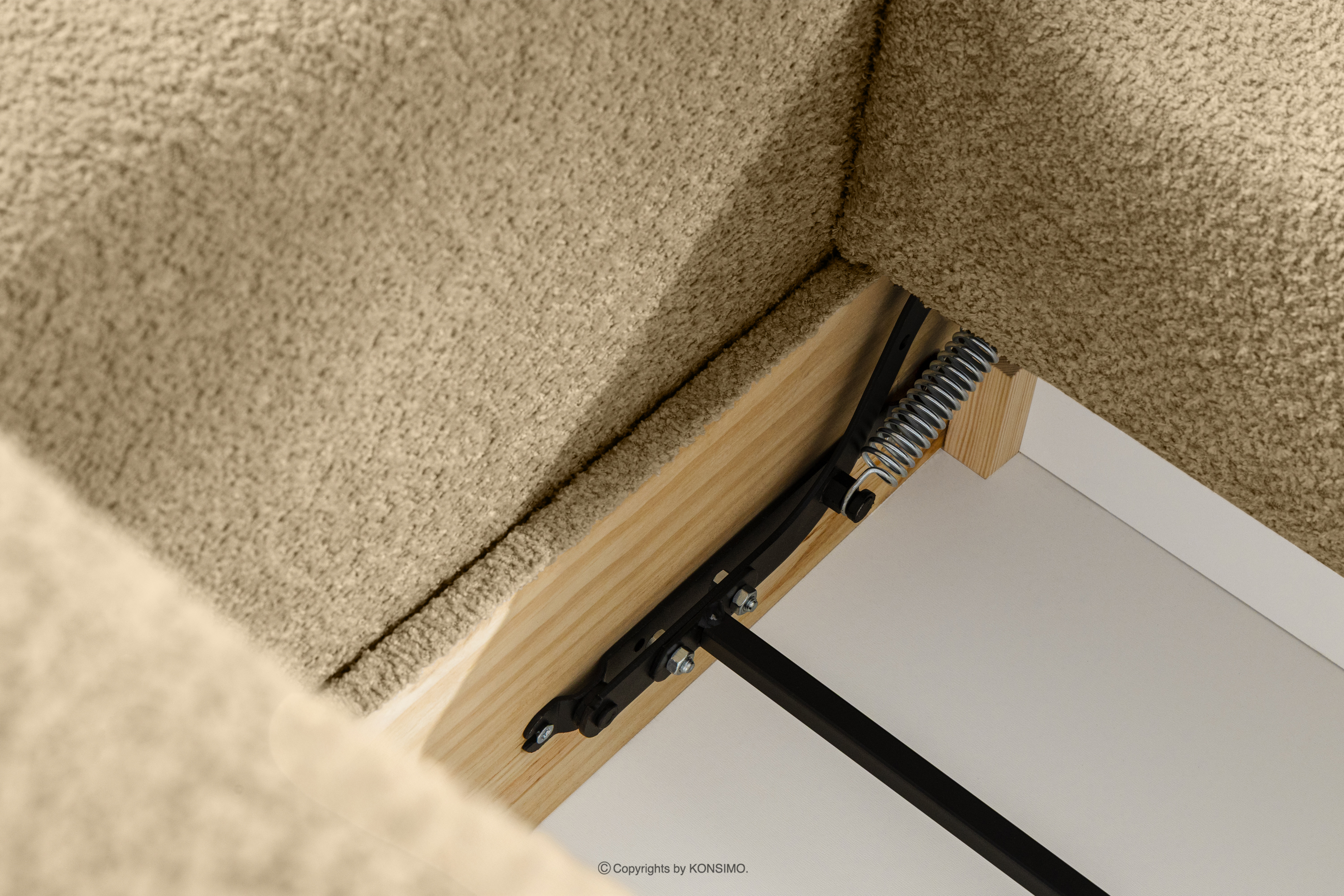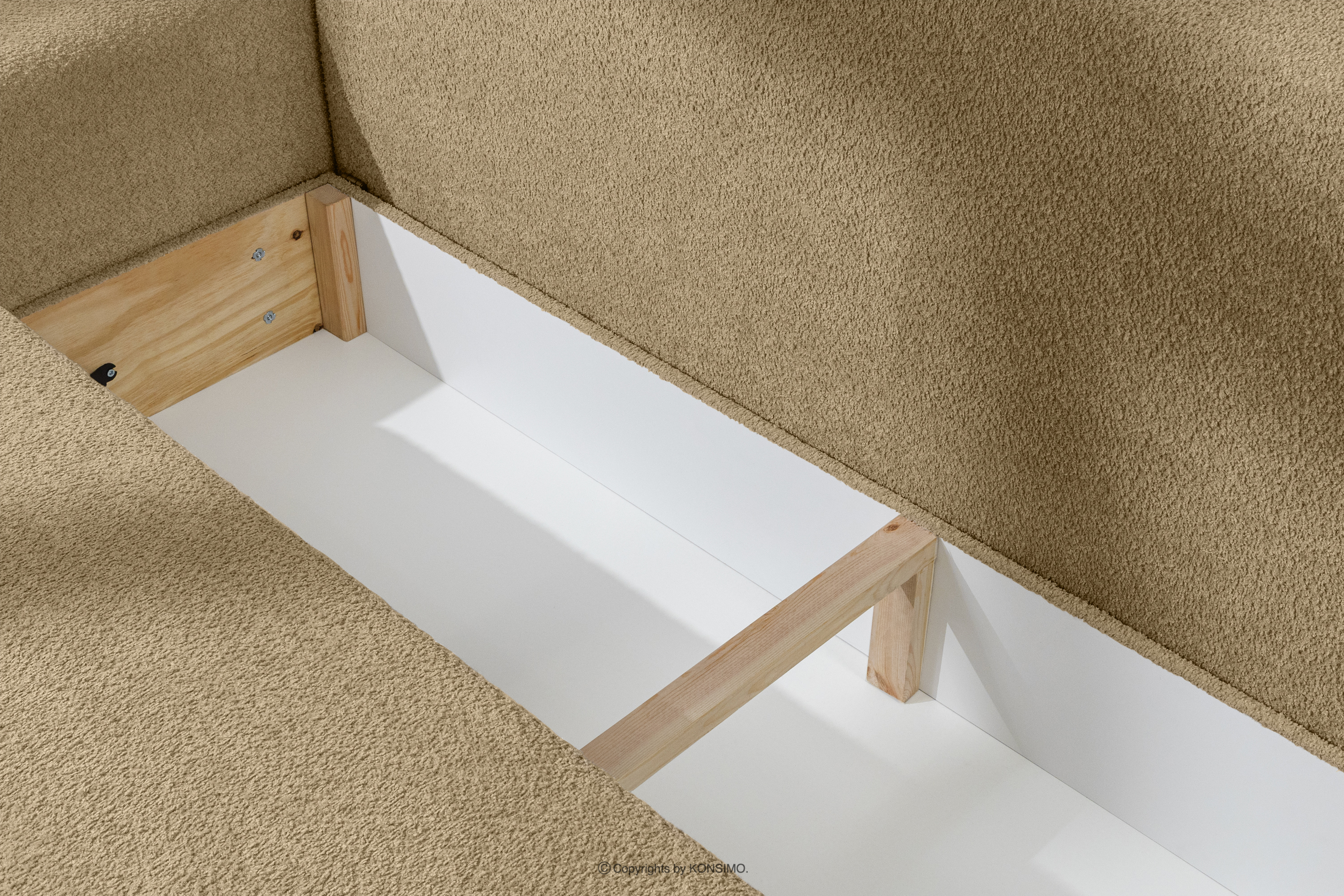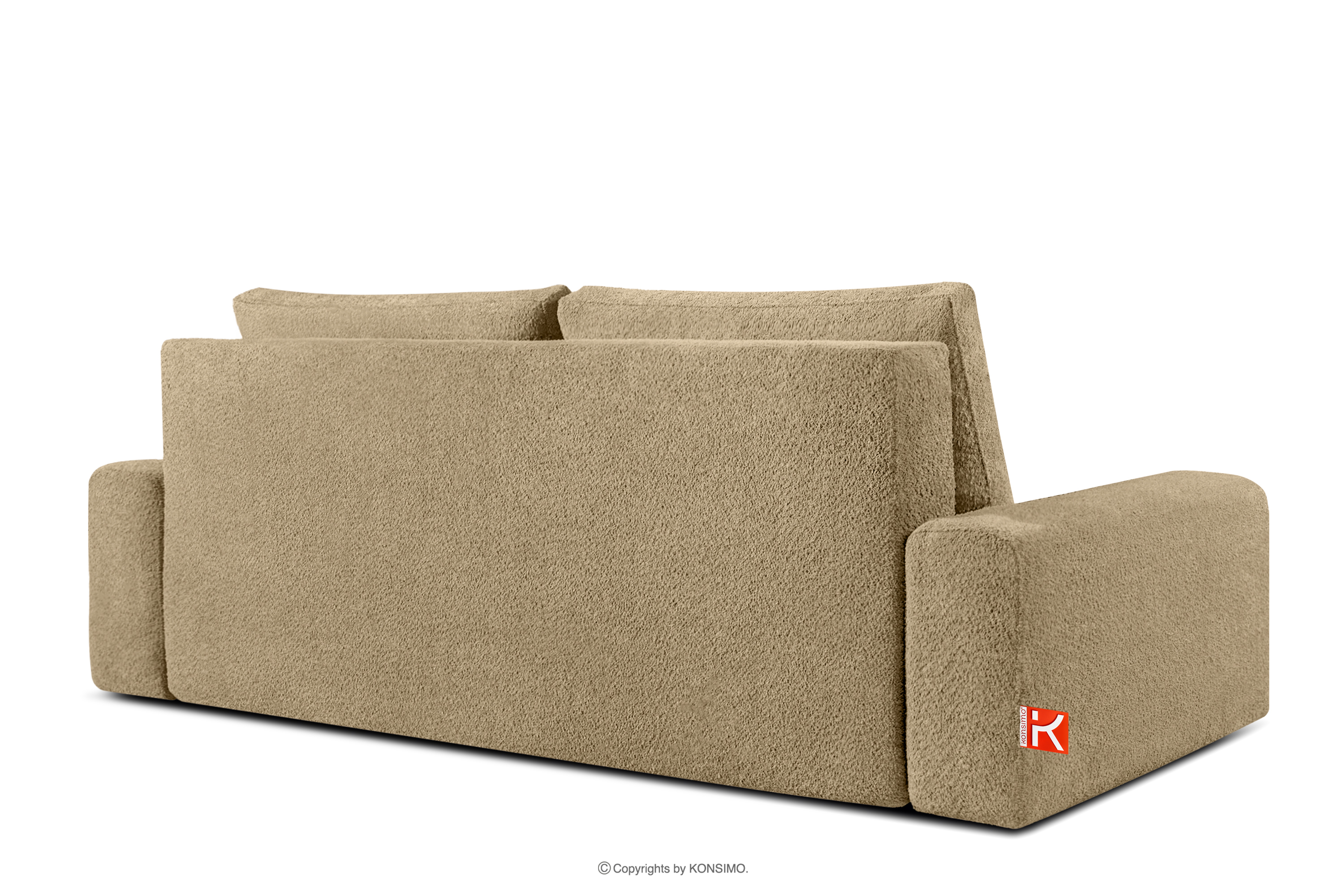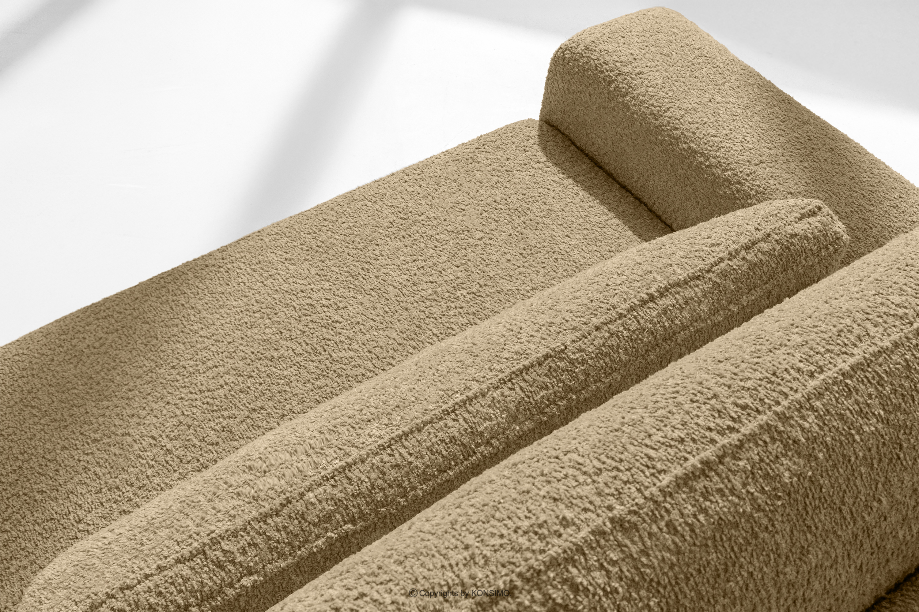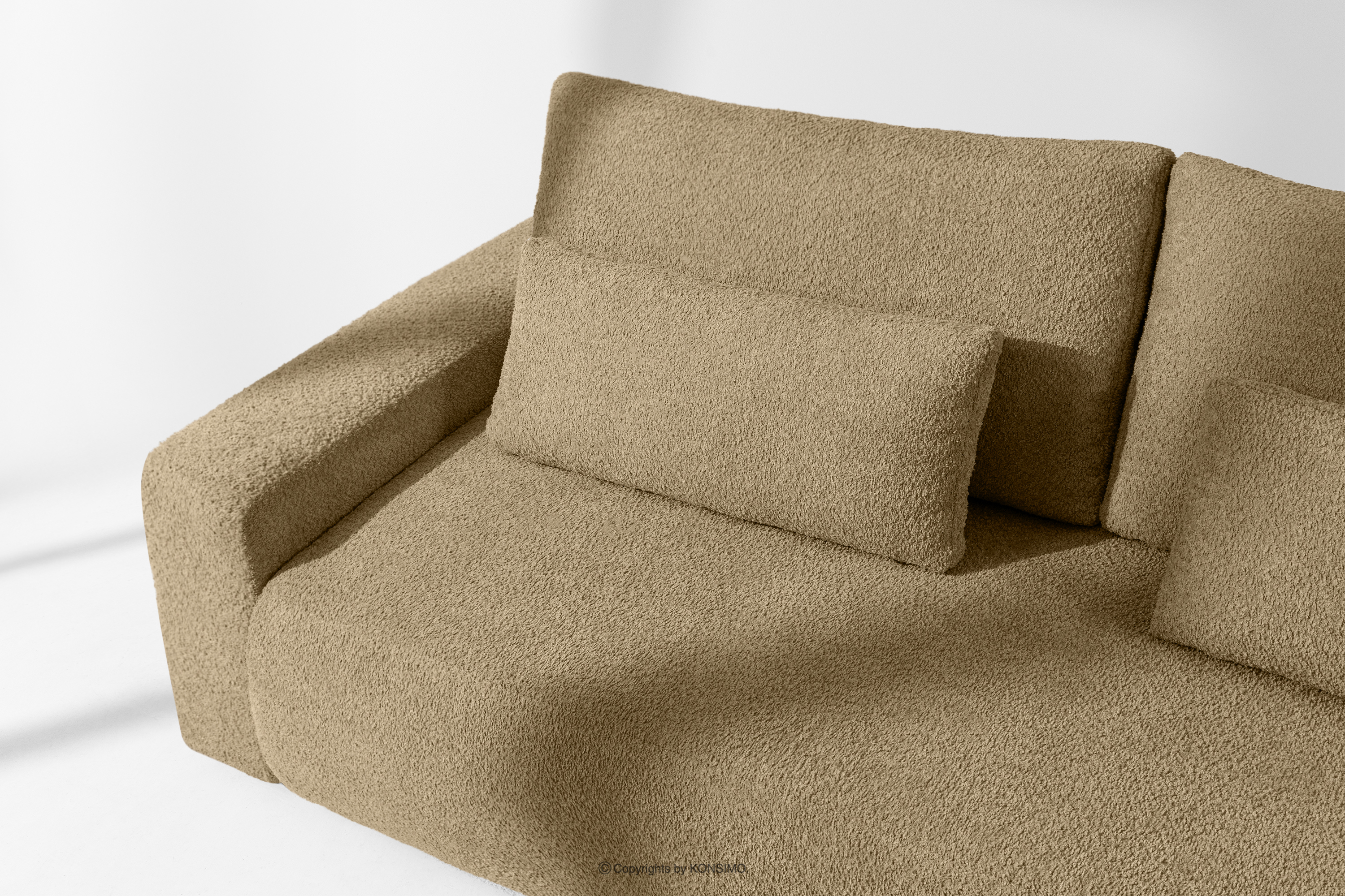 Rozkladacia pohovka s vankúšmi boucle látka tmavobéžová je stelesnením moderného komfortu a funkčnosti, navrhnutý s ohľadom na moderné interiéry a požiadavky každodenného používania. Elegantné, minimalistické línie pôsobia v harmónii s premysleným dizajnom, ktorý spája estetiku a praktickosť. Je vybavená rozkladacím systémom typu DL a kontajnerom na lôžkoviny, vďaka čomu je ideálnym riešením do malých bytov alebo hosťovských izieb.