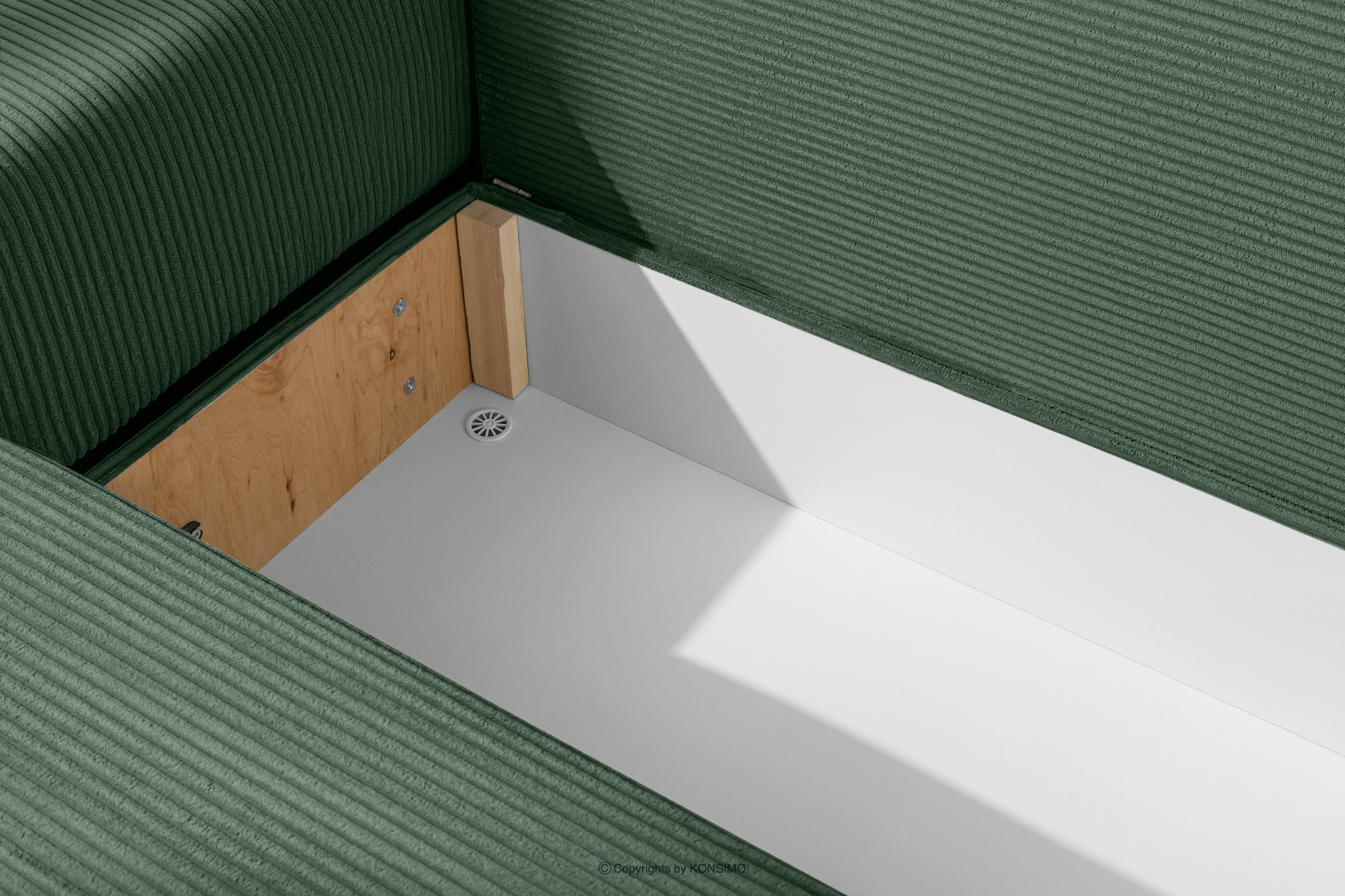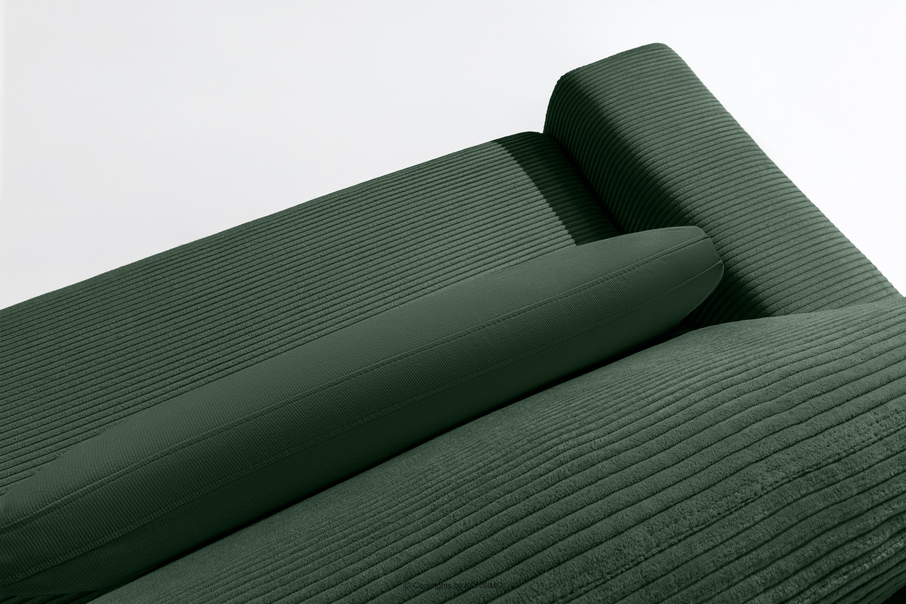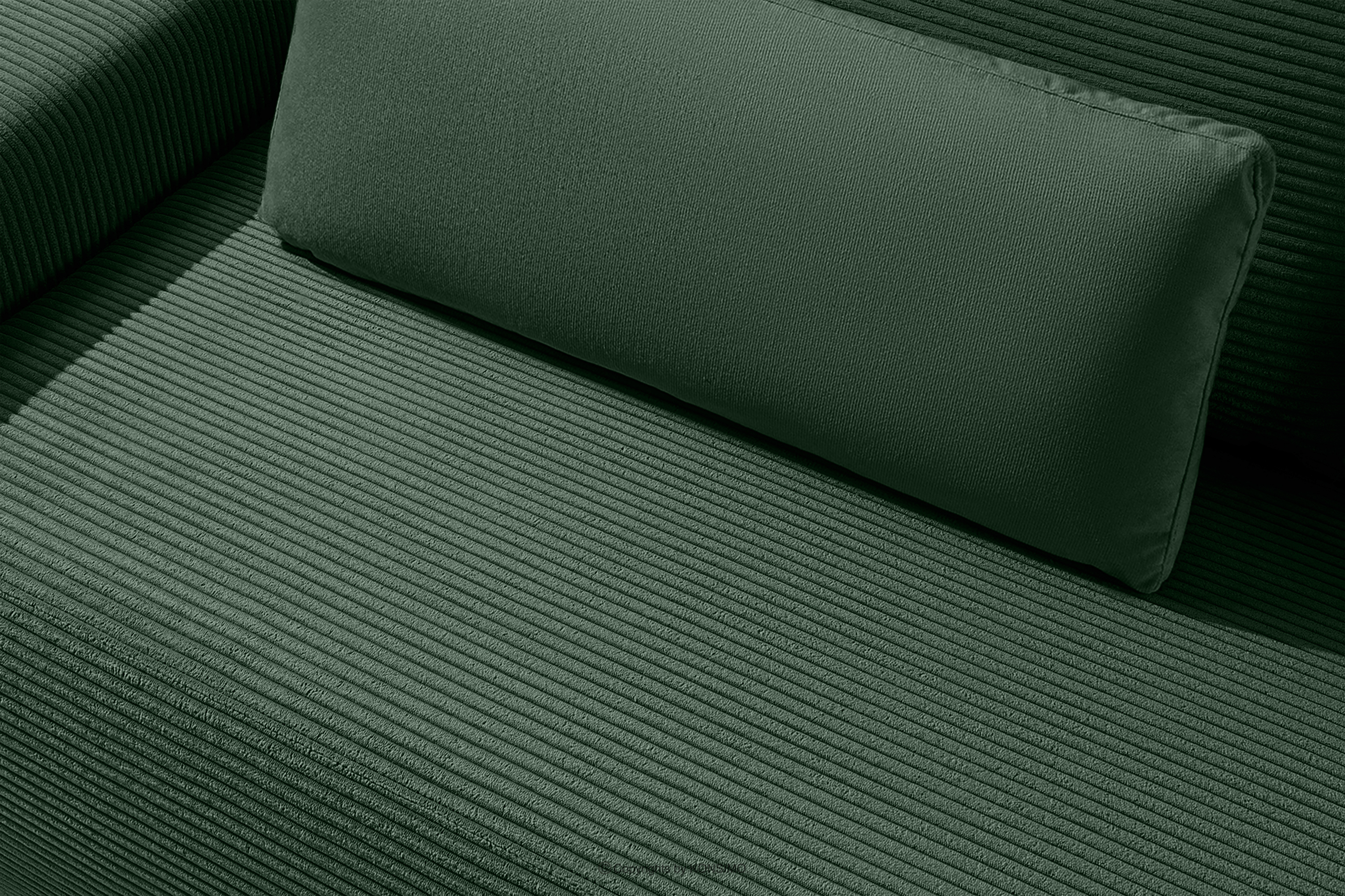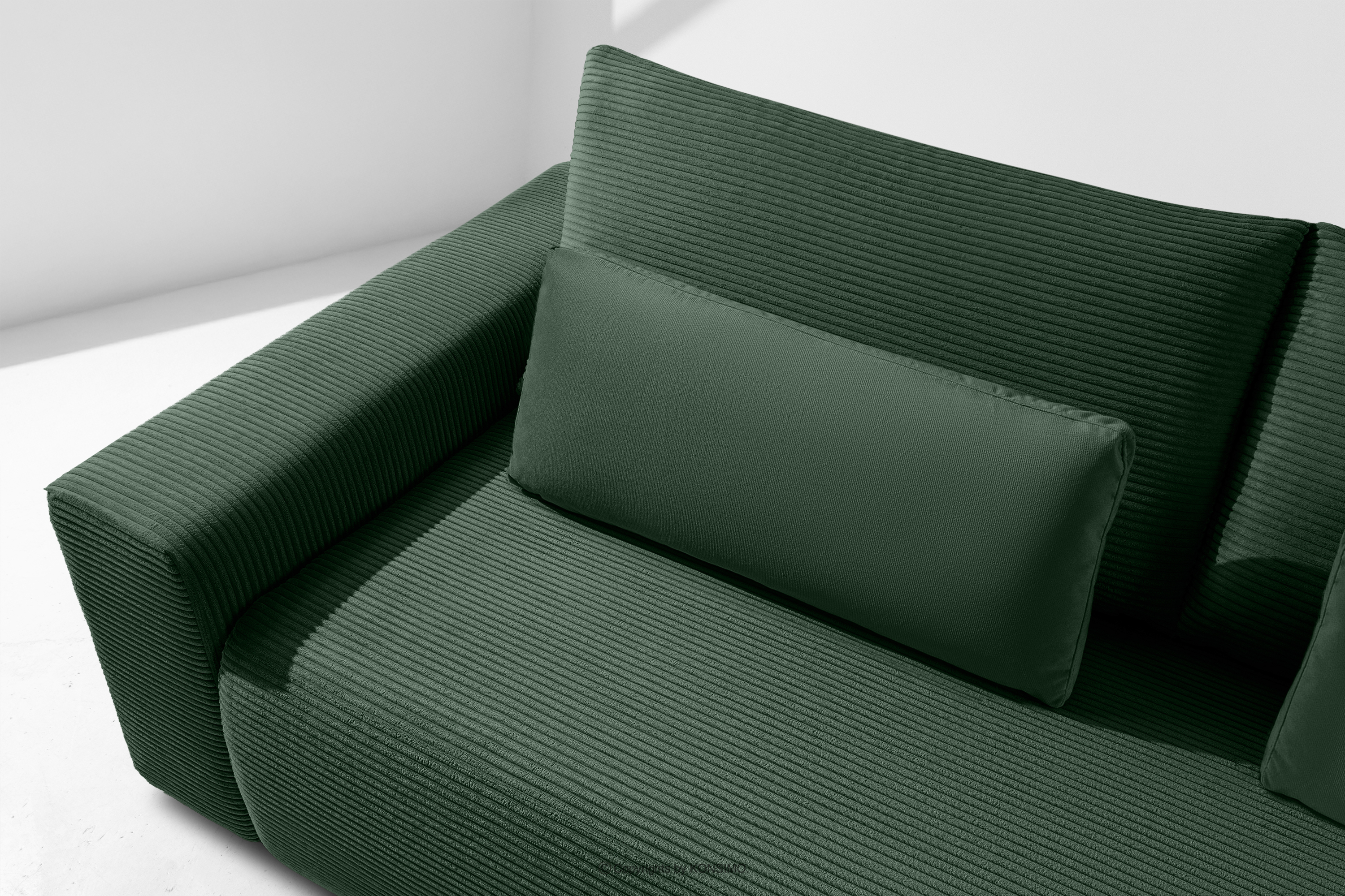 Trojmiestna pohovka s vankúšmi rozkladacia manšestrová látka / velúr tmavozelený je stelesnením moderného komfortu a funkčnosti, navrhnutý s ohľadom na moderné interiéry a požiadavky každodenného používania. Elegantné, minimalistické línie pôsobia v harmónii s premysleným dizajnom, ktorý spája estetiku a praktickosť. Je vybavená rozkladacím systémom typu DL a kontajnerom na lôžkoviny, vďaka čomu je ideálnym riešením do malých bytov alebo hosťovských izieb.