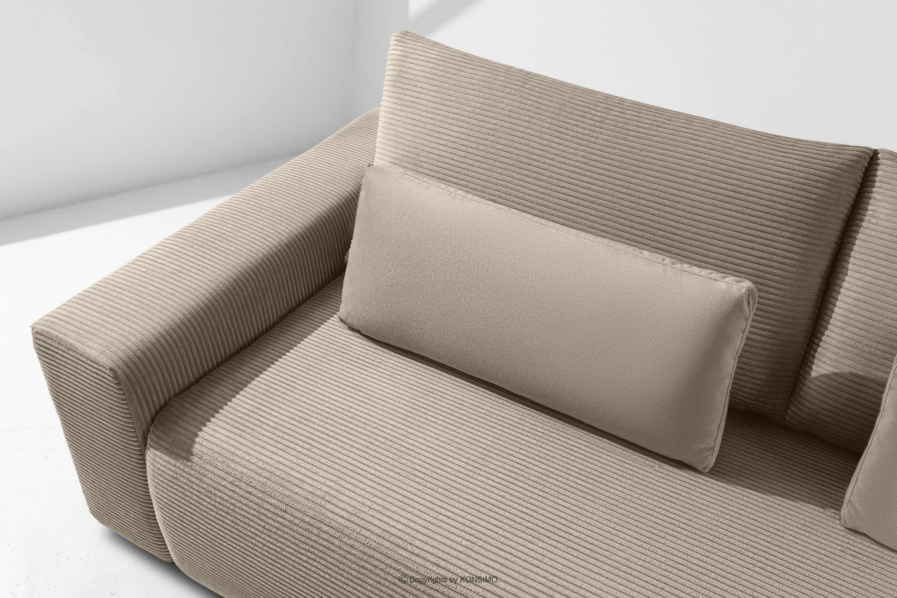 MOLLIS Objav celú kolekciu Rozkladacia pohovka s vankúšmi manšestrová látka / velúr béžový- farba béžová