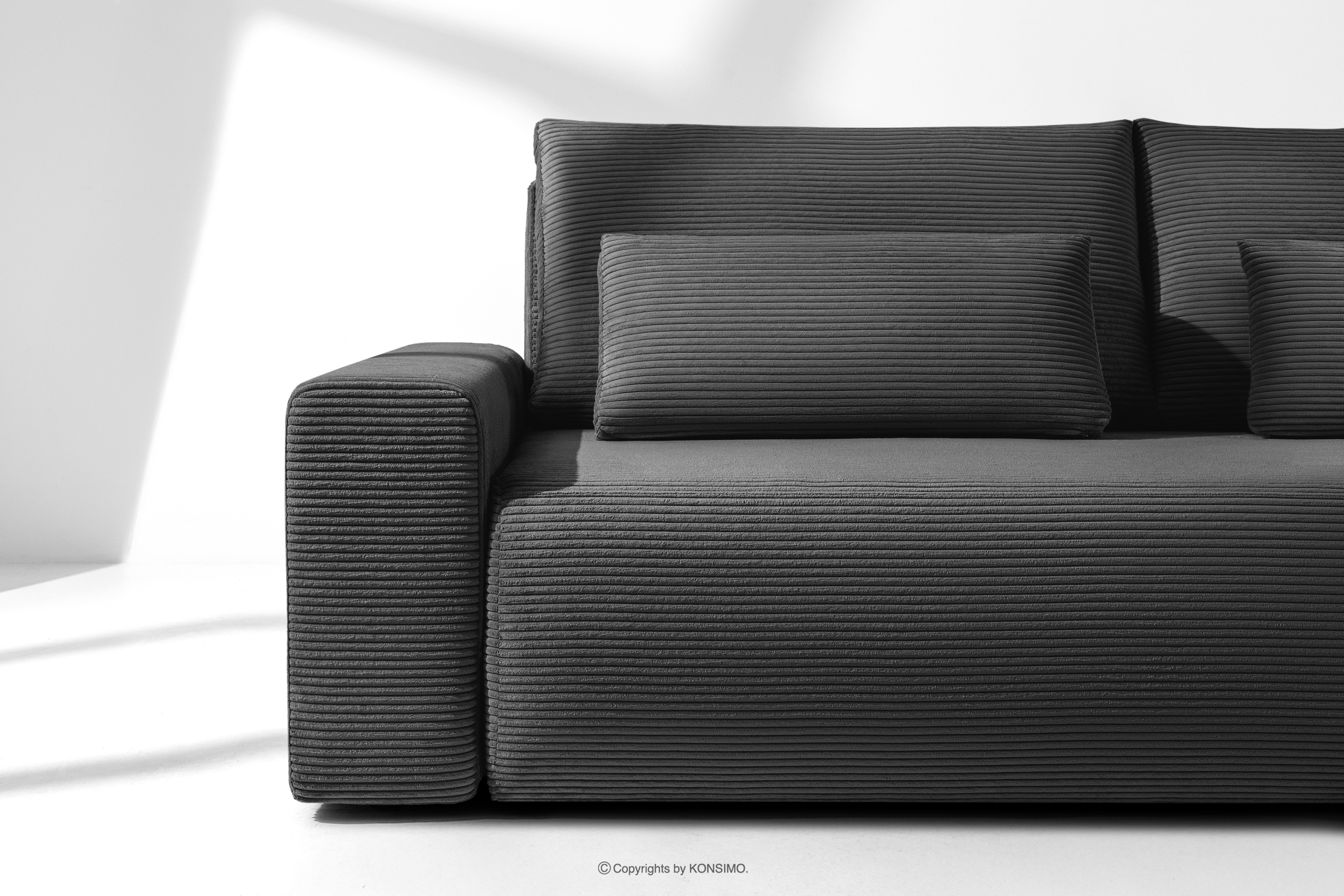 MOLLIS Objav celú kolekciu Rozkladacia pohovka s vankúšmi manšestrová látka sivá- farba sivá