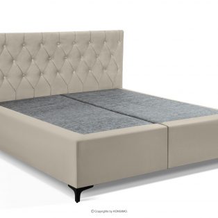 Posteľ podopierajú štyri ozdobné kovové nohy viditeľné zvonku, ktoré jej dodávajú elegantný nádych, a štyri ďalšie plastové podpery pod skrinku v čiernej farbe na zabezpečenie stability.