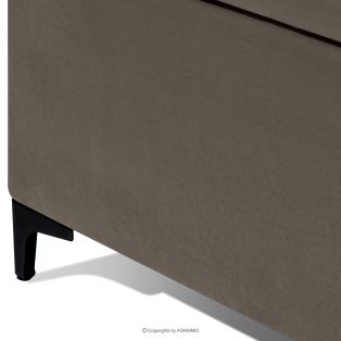 Posteľ podopierajú štyri ozdobné kovové nohy viditeľné zvonku, ktoré jej dodávajú elegantný nádych, a štyri ďalšie plastové podpery pod skrinku v čiernej farbe na zabezpečenie stability.