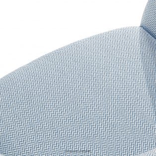 Vďaka hydrofóbnej štruktúre tkaniny voda jednoducho steká z povrchu a nepreniká do hĺbky materiálu. Operadlo je vyplnené 4 cm hrubou penou T 30/50, ktorá bola vybraná tak, aby poskytovala dostatočnú oporu chrbta bez nadmernej tuhosti. Rozdiel v špecifikácii pien medzi sedadlom a operadlom nie je náhodný – ide o premyslené ergonomické riešenie, ktoré zaisťuje optimálne rozloženie tlaku a maximálny komfort používania.