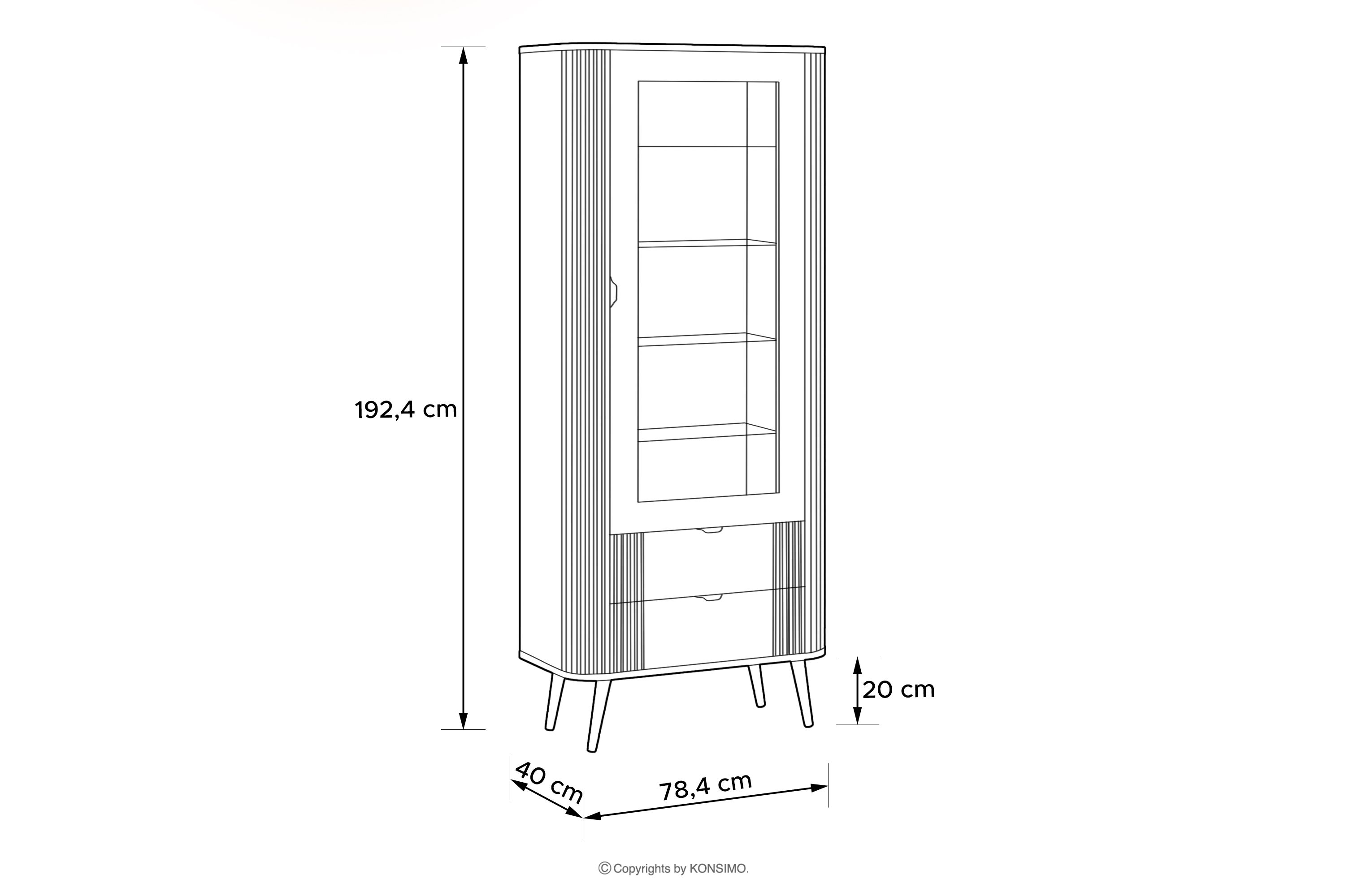 Rýhovaná vitrína krémovej farby poteší moderným dizajnom a precíznym spracovaním. Čierne telo zo 16 mm hrubej laminovanej dosky obohatené zlatými kovovými úchytkami vytvára luxusný kontrast, ktorý priťahuje pozornosť. Robustná konštrukcia vystužená rohovými lištami z MDF a povrchová úprava hrán z 0,45 mm ABS pásky zaručujú odolnosť a dokonalý vzhľad na dlhé roky.