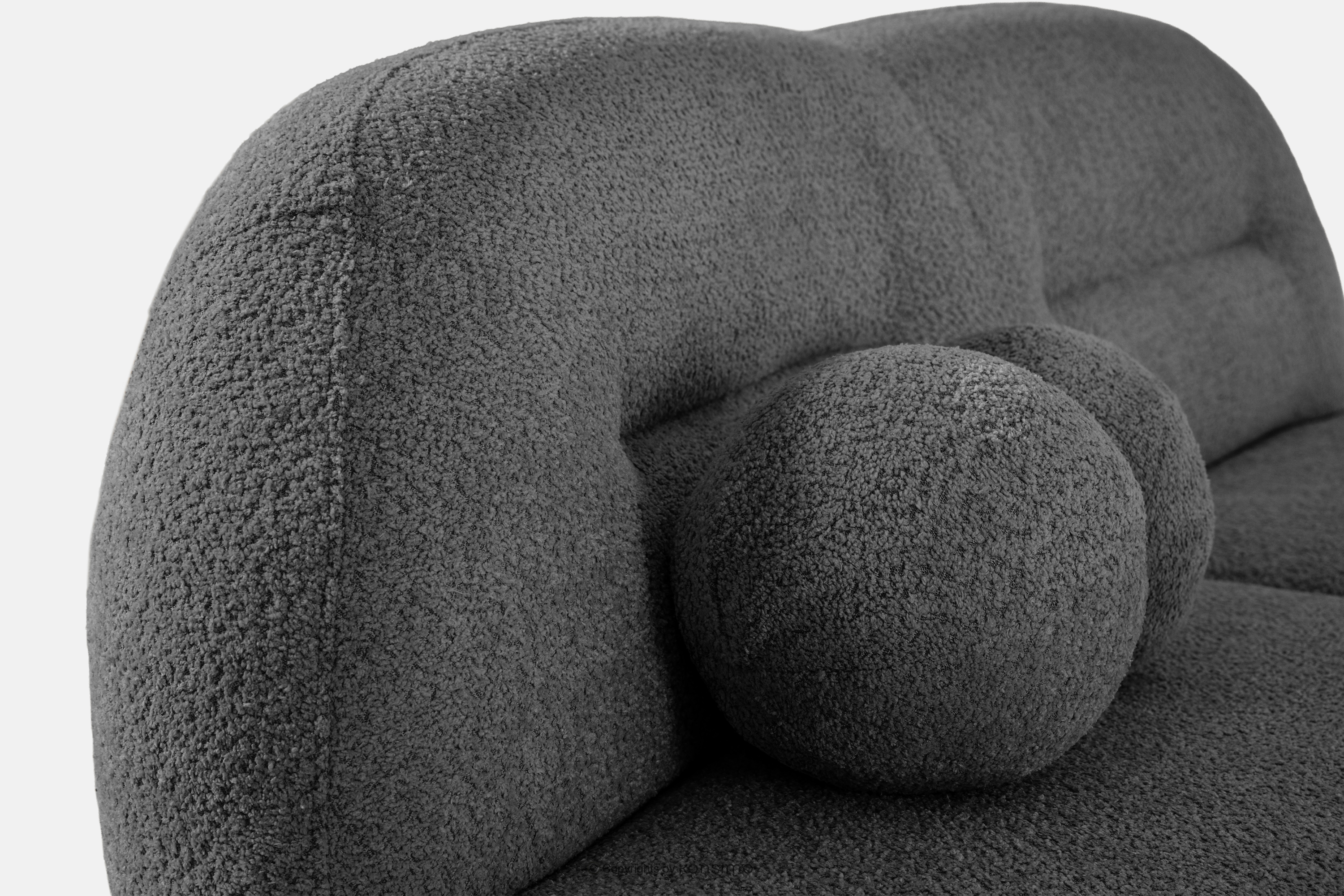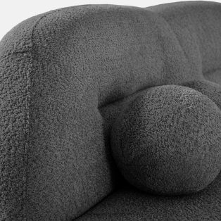 Trojmiestna pohovka bouclé v štýle Japandi antracitová toto je voľba pre tých, ktorí ocenia moderný dizajn v kombinácii s výnimočným komfortom a starostlivým spracovaním. Jeho mäkké, zaoblené tvary upútajú pozornosť a dodávajú interiéru pocit harmónie a útulnosti. Čalúnenie z módnej bouclé tkaniny zdôrazňuje elegantný, ale zároveň teplý charakter nábytku – textúrovaný povrch materiálu je nielen vizuálne atraktívny, ale aj veľmi príjemný na dotyk.
