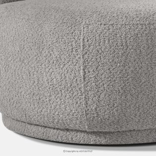 Trojmiestna pohovka bouclé v štýle Japandi oceľová toto je voľba pre tých, ktorí ocenia moderný dizajn v kombinácii s výnimočným komfortom a starostlivým spracovaním. Jeho mäkké, zaoblené tvary upútajú pozornosť a dodávajú interiéru pocit harmónie a útulnosti. Čalúnenie z módnej bouclé tkaniny zdôrazňuje elegantný, ale zároveň teplý charakter nábytku – textúrovaný povrch materiálu je nielen vizuálne atraktívny, ale aj veľmi príjemný na dotyk.