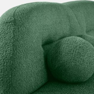Trojmiestna pohovka bouclé v štýle Japandi tmavozelená toto je voľba pre tých, ktorí ocenia moderný dizajn v kombinácii s výnimočným komfortom a starostlivým spracovaním. Jeho mäkké, zaoblené tvary upútajú pozornosť a dodávajú interiéru pocit harmónie a útulnosti. Čalúnenie z módnej bouclé tkaniny zdôrazňuje elegantný, ale zároveň teplý charakter nábytku – textúrovaný povrch materiálu je nielen vizuálne atraktívny, ale aj veľmi príjemný na dotyk.
