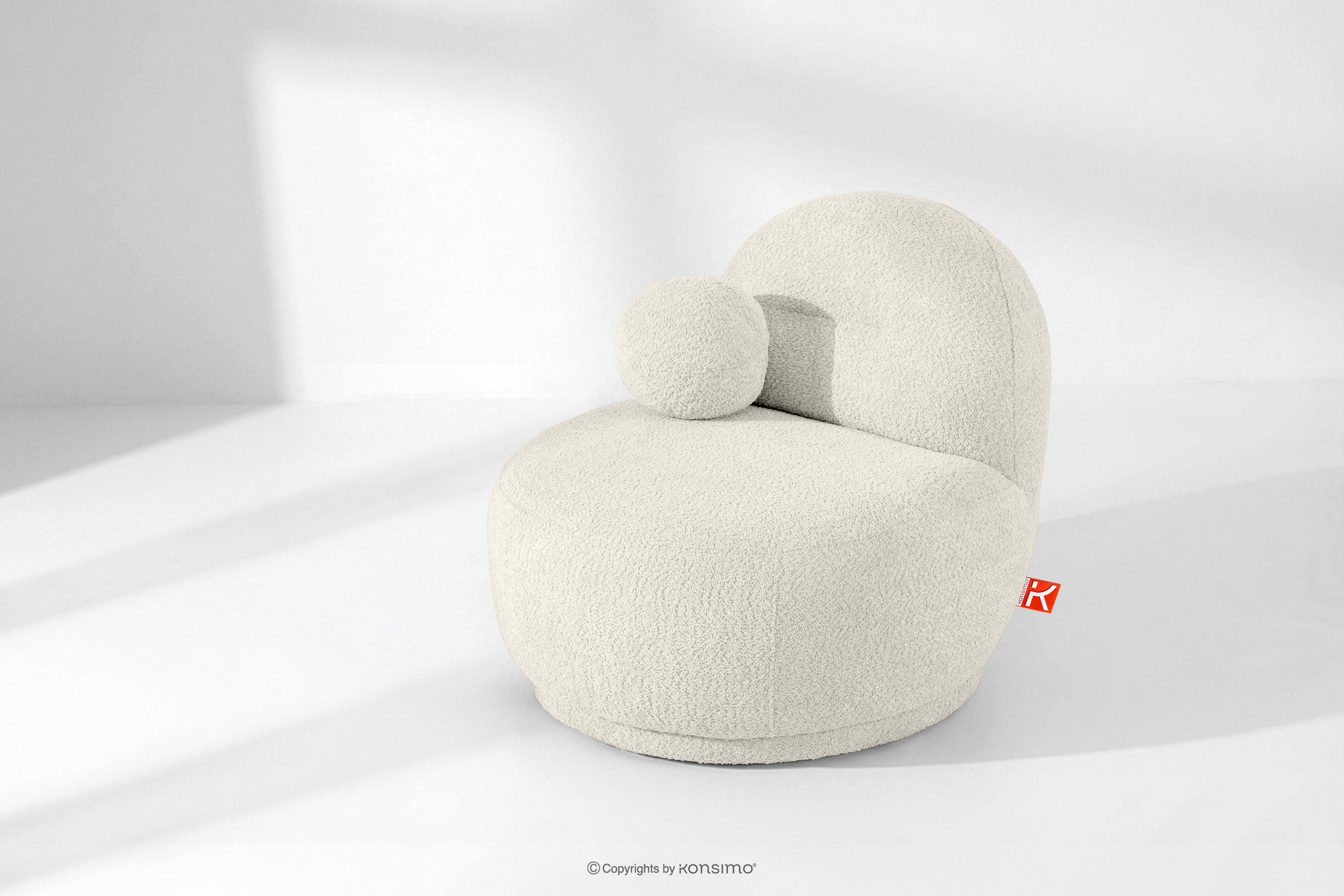 Kreslo z bouclé tkaniny v štýle Japandi biele toto je voľba pre tých, ktorí ocenia moderný dizajn v kombinácii s výnimočným komfortom a starostlivým spracovaním. Mäkké, zaoblené tvary upútajú pozornosť a dodávajú interiéru pocit harmónie a útulnosti. Čalúnenie z módnej bouclé tkaniny zdôrazňuje elegantný, ale zároveň teplý charakter nábytku – textúrovaný povrch materiálu je nielen vizuálne atraktívny, ale aj veľmi príjemný na dotyk.