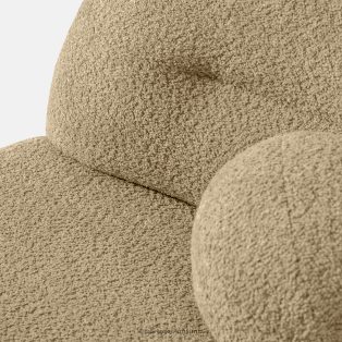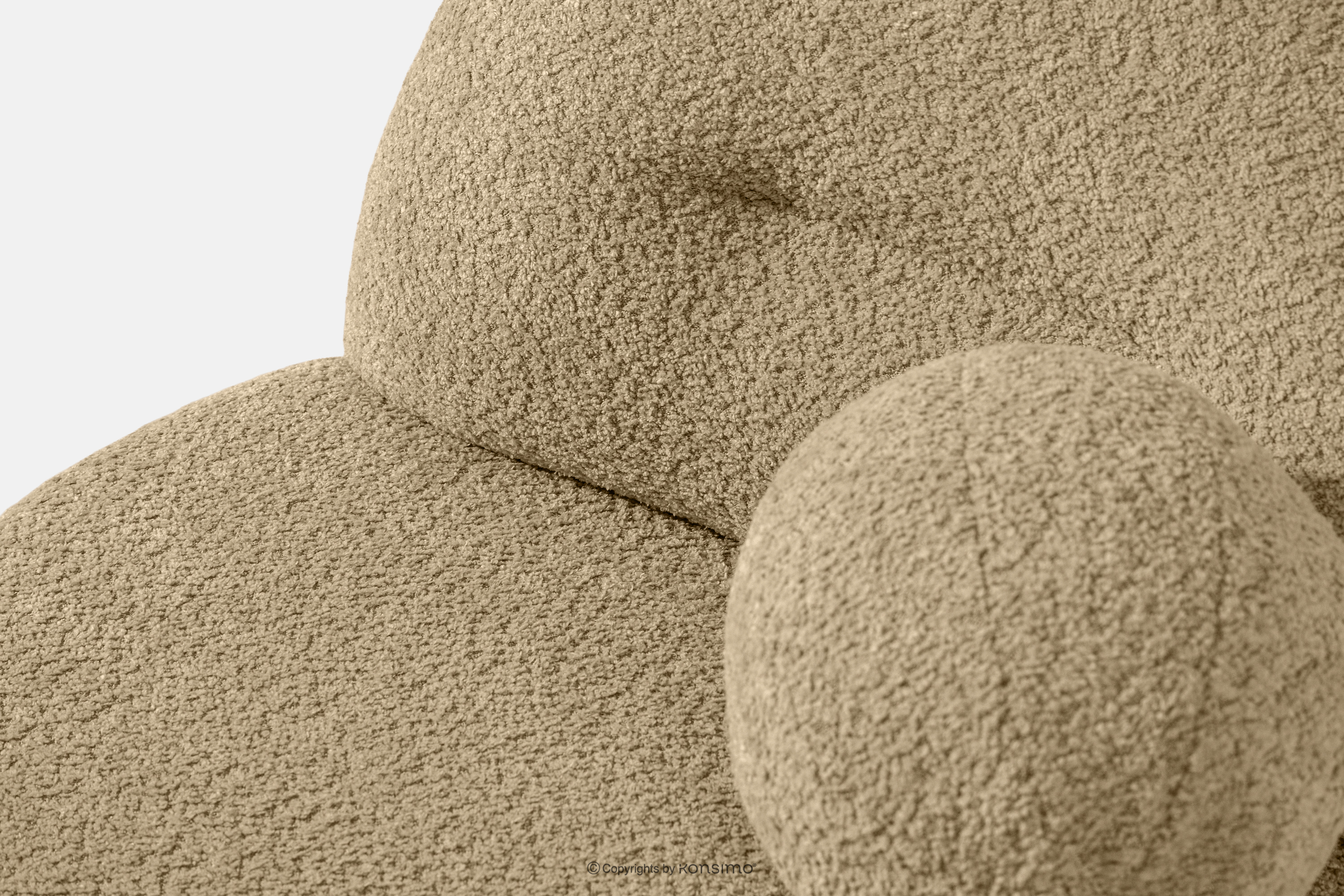 Kreslo z bouclé tkaniny v štýle Japandi tmavo béžové toto je voľba pre tých, ktorí ocenia moderný dizajn v kombinácii s výnimočným komfortom a starostlivým spracovaním. Mäkké, zaoblené tvary upútajú pozornosť a dodávajú interiéru pocit harmónie a útulnosti. Čalúnenie z módnej bouclé tkaniny zdôrazňuje elegantný, ale zároveň teplý charakter nábytku – textúrovaný povrch materiálu je nielen vizuálne atraktívny, ale aj veľmi príjemný na dotyk.