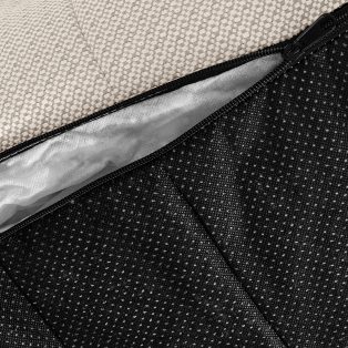 Nábytek se od ostatních odlišuje promyšleným designem a inovativním přístupem k funkčnosti. Důmyslným řešením je vnější potah, který je všitý do struktury nábytku. Lze jej snadno schovat dovnitř a v případě potřeby zapnout na zip, což je nesmírně praktické a estetické. Na okrajích potahu je našita pružná páska, která zabraňuje jeho sklouznutí z nábytku a zajišťuje, že vše zůstane na svém místě. Potah je vyroben z voděodolné tkaniny, která účinně chrání nábytek před rozmary počasí, a zároveň se jedná o prodyšný mikrostrukturovaný materiál, který zaručuje, že nedojde k navlhnutí nebo vzniku plísní. Nábytek tak zůstane svěží a hygienický po celý rok. Další výhodou je okamžité rozložení a uzavření potahu, které šetří váš čas a námahu. S myšlenkou na mobilitu a pohodlí při stěhování jsou do nábytku všity úchyty (ze stejné látky jako čalounění), které usnadňují přemístění nábytku podle vašich potřeb. Spodní strana nábytku byla upravena protiskluzovou tkaninou, která zajišťuje stabilitu a bezpečné používání na jakémkoli povrchu. Vnitřní část nábytku se otevírá na zip, což vám dává možnost v případě potřeby doplnit výplň, a právě výplň zabraňuje změně tvaru nábytku. Sedák se neshutňuje, zůstává pružný po celá léta a vrací se do původního tvaru i po dlouhodobém tlaku. Nábytek se navíc přizpůsobuje hmotnosti a tvaru člověka, což v kombinaci s jeho pružností zajišťuje bezkonkurenční pohodlí.