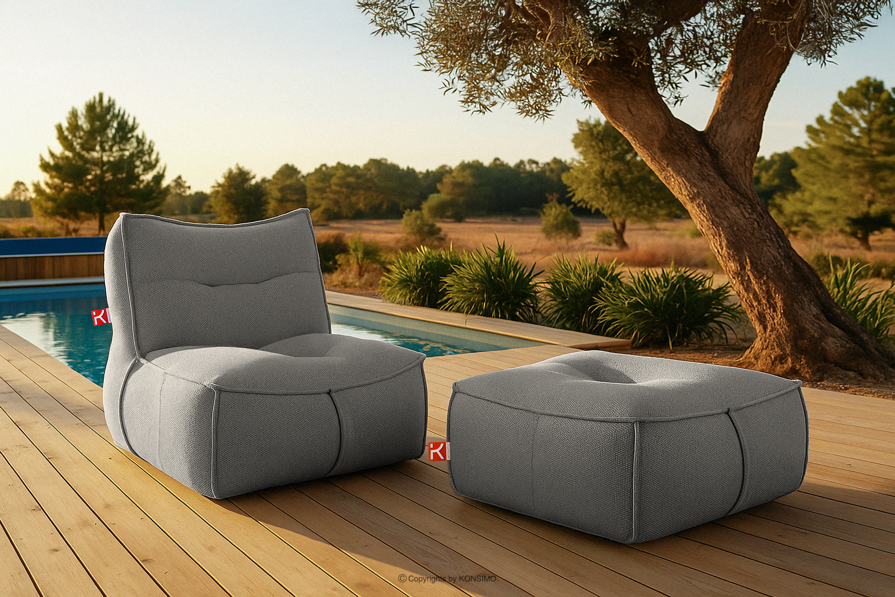 - Dodatočné informácie: spodná časť nábytku z protišmykovej tkaniny, uchopovací pás z čalúnenia pre ľahšie prenášanie, vonkajší poťah z nepremokavého materiálu všitý do konštrukcie nábytku, skrytý vo vnútri a uzatvárateľný na zips, všitá gumička v obale zabraňuje skĺznutiu z nábytku