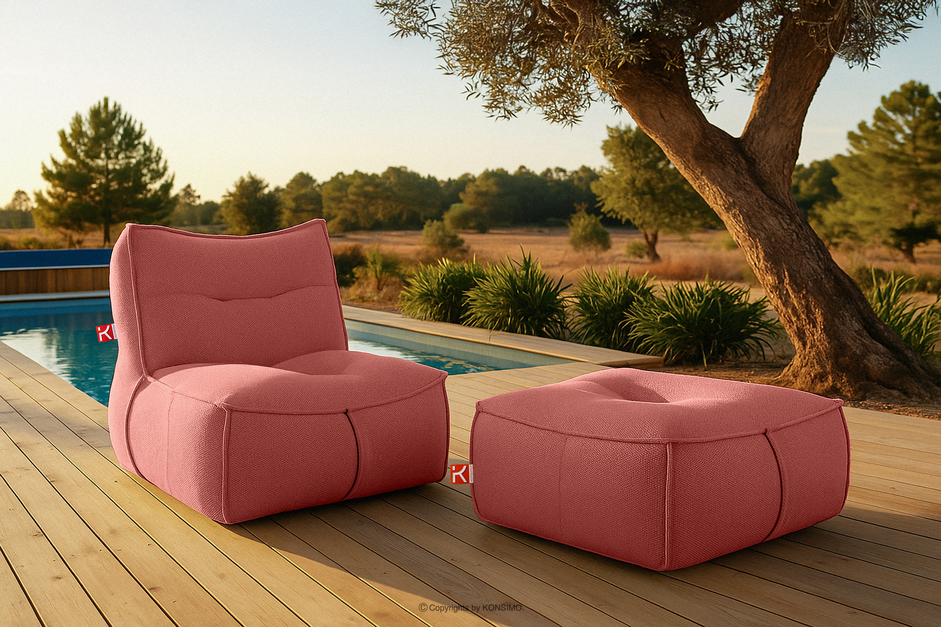 - Dodatočné informácie: spodná časť nábytku z protišmykovej tkaniny, uchopovací pás z čalúnenia pre ľahšie prenášanie, vonkajší poťah z nepremokavého materiálu všitý do konštrukcie nábytku, skrytý vo vnútri a uzatvárateľný na zips, všitá gumička v obale zabraňuje skĺznutiu z nábytku
