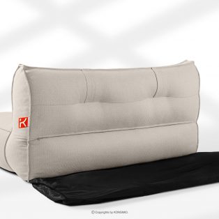 • Dodatočné informácie: spodná časť nábytku z protišmykovej tkaniny, uchopovací pás z čalúnenia pre ľahšie prenášanie, vonkajší poťah z nepremokavého materiálu všitý do konštrukcie nábytku, skrytý vo vnútri a uzatvárateľný na zips, všitá gumička v obale zabraňuje skĺznutiu z nábytku
