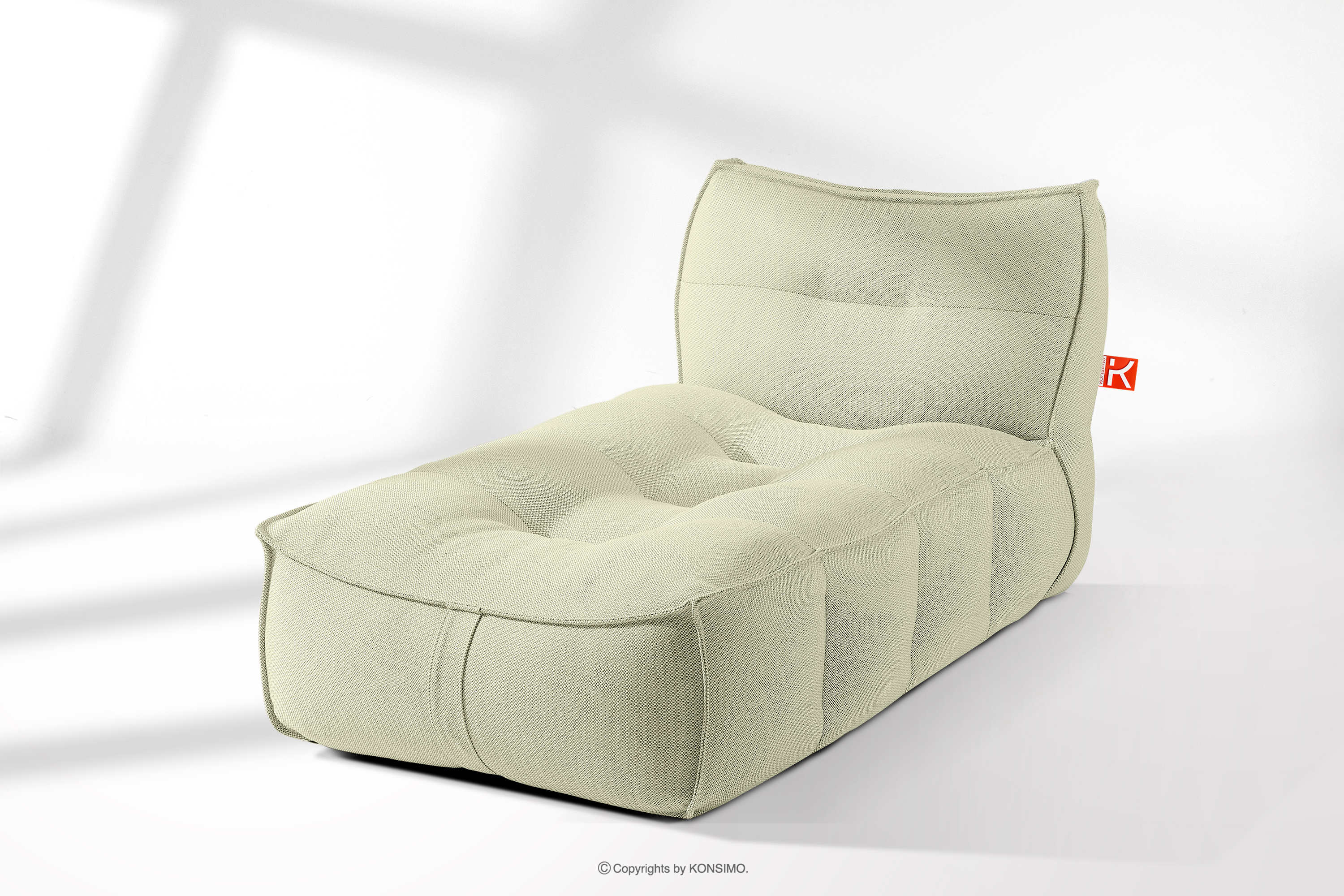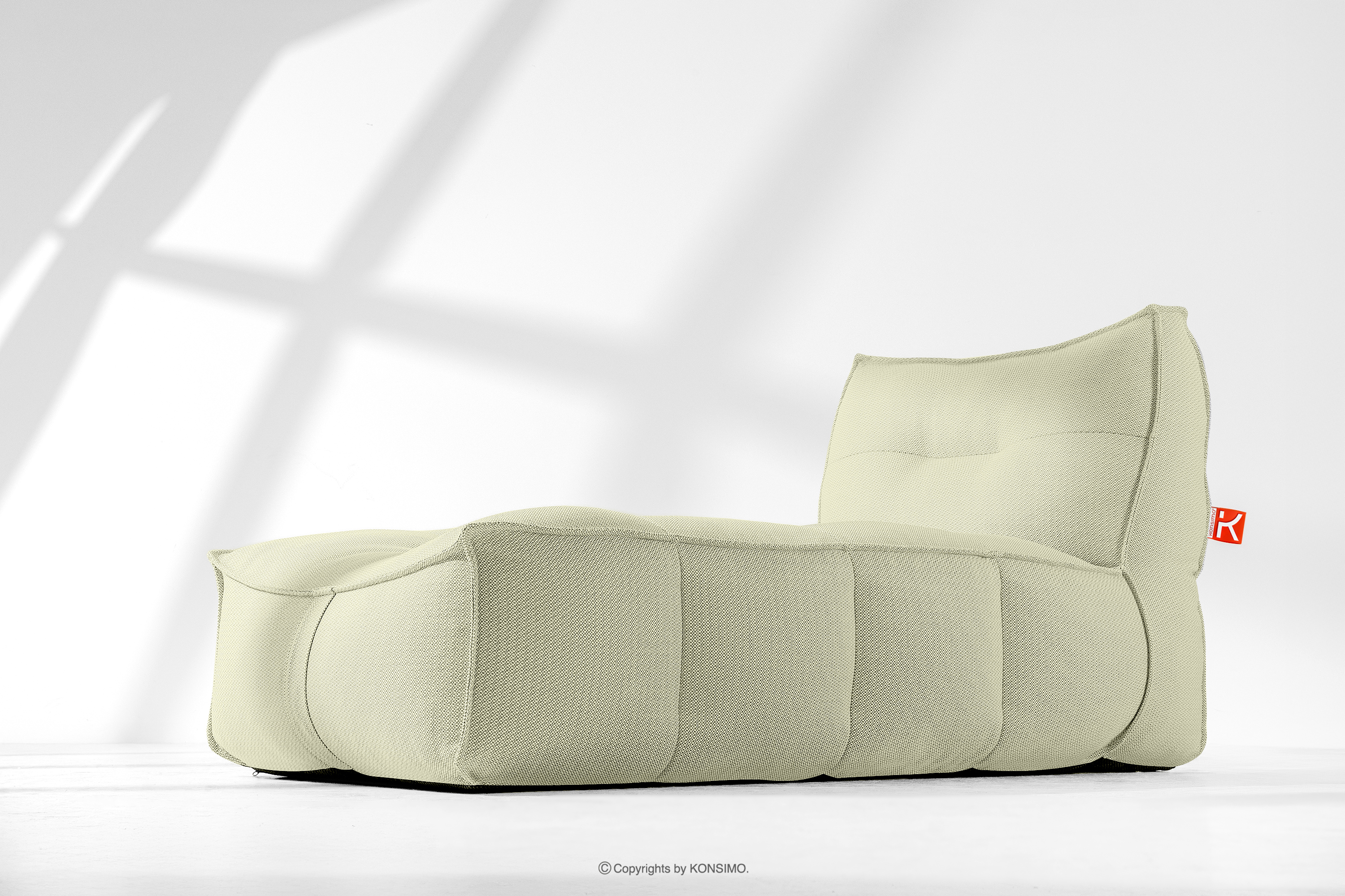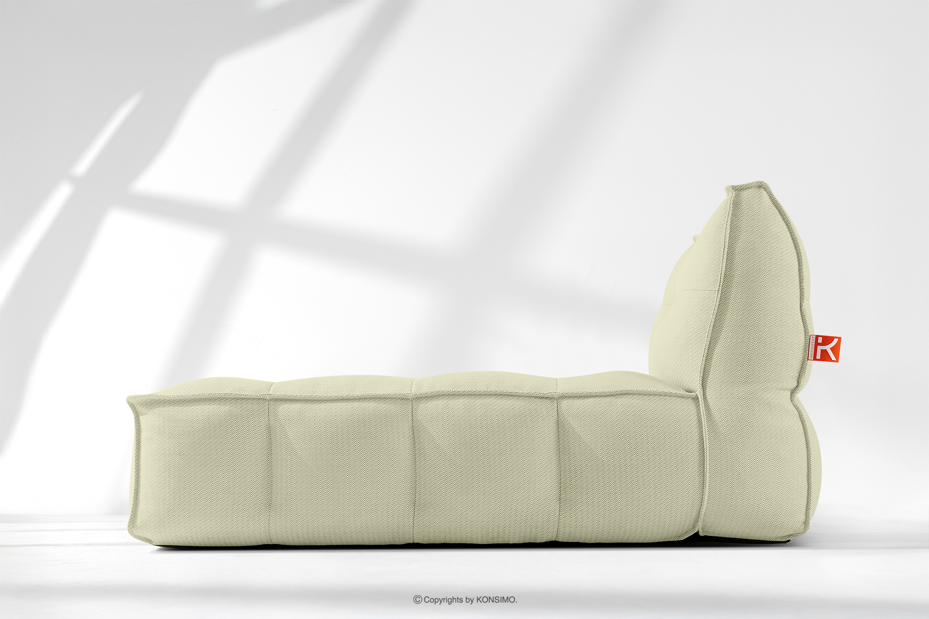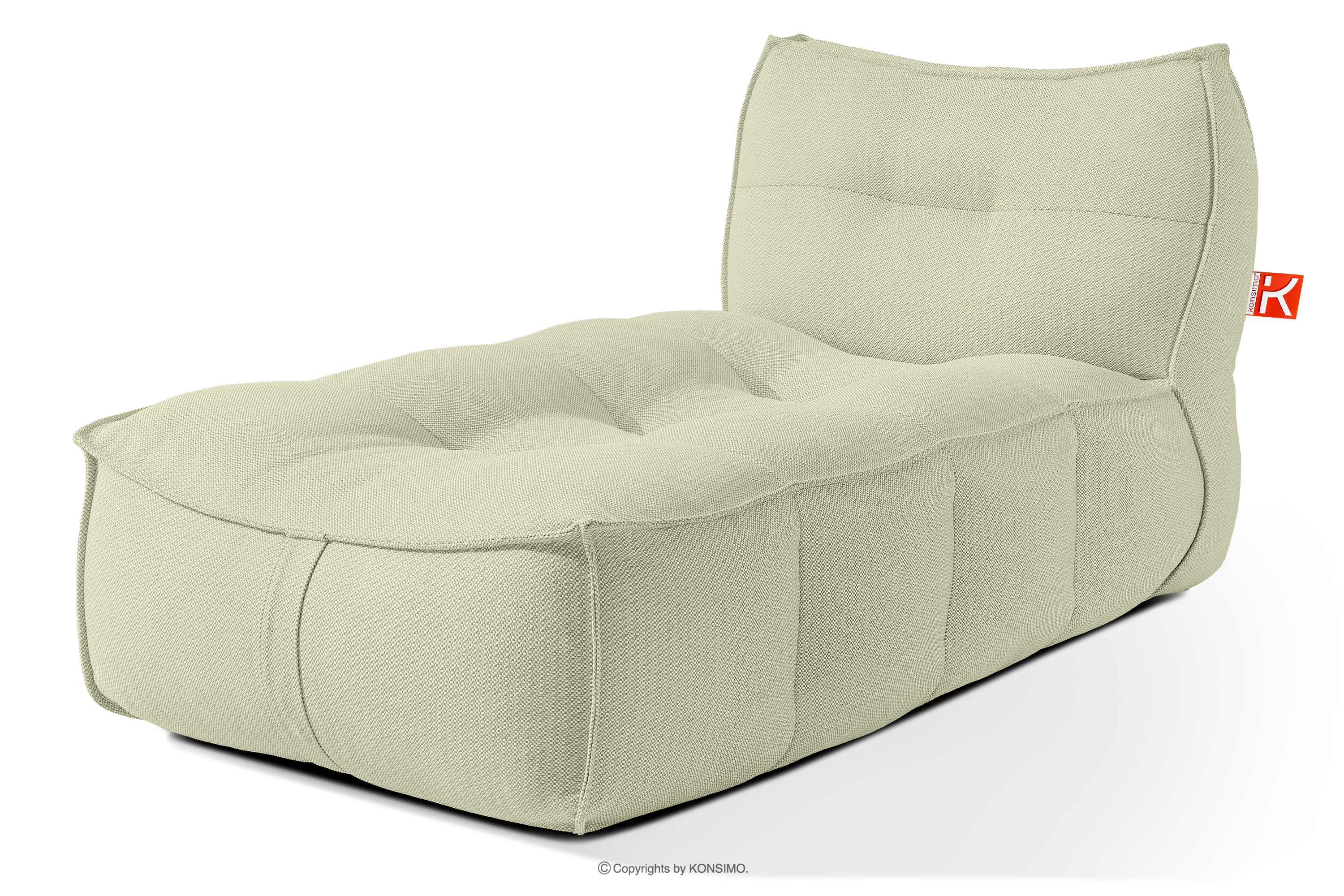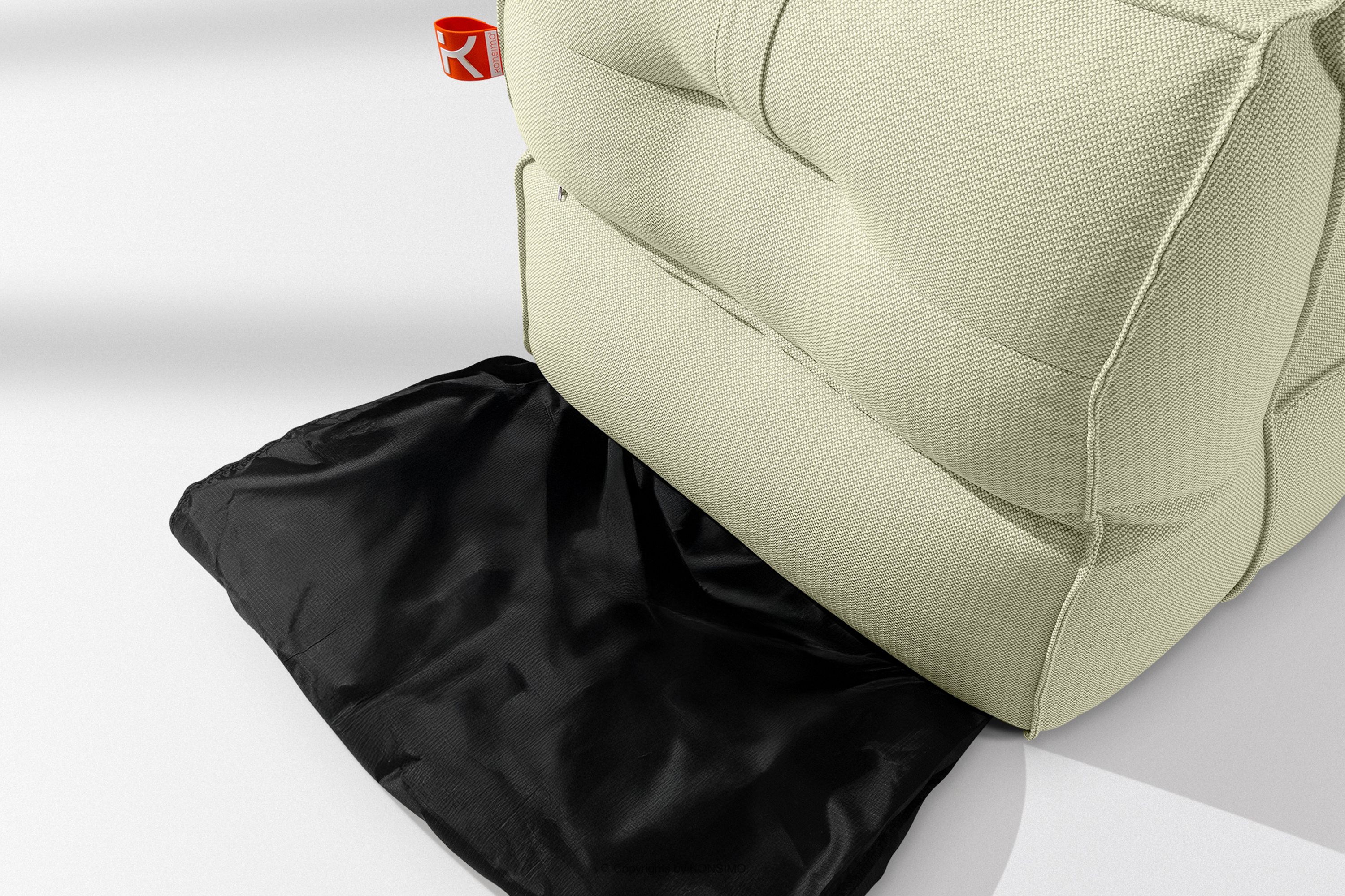 - Dodatočné informácie: spodná časť nábytku z protišmykovej tkaniny, uchopovací pás z čalúnenia pre ľahšie prenášanie, vonkajší poťah z nepremokavého materiálu všitý do konštrukcie nábytku, skrytý vo vnútri a uzatvárateľný na zips, všitá gumička v obale zabraňuje skĺznutiu z nábytku