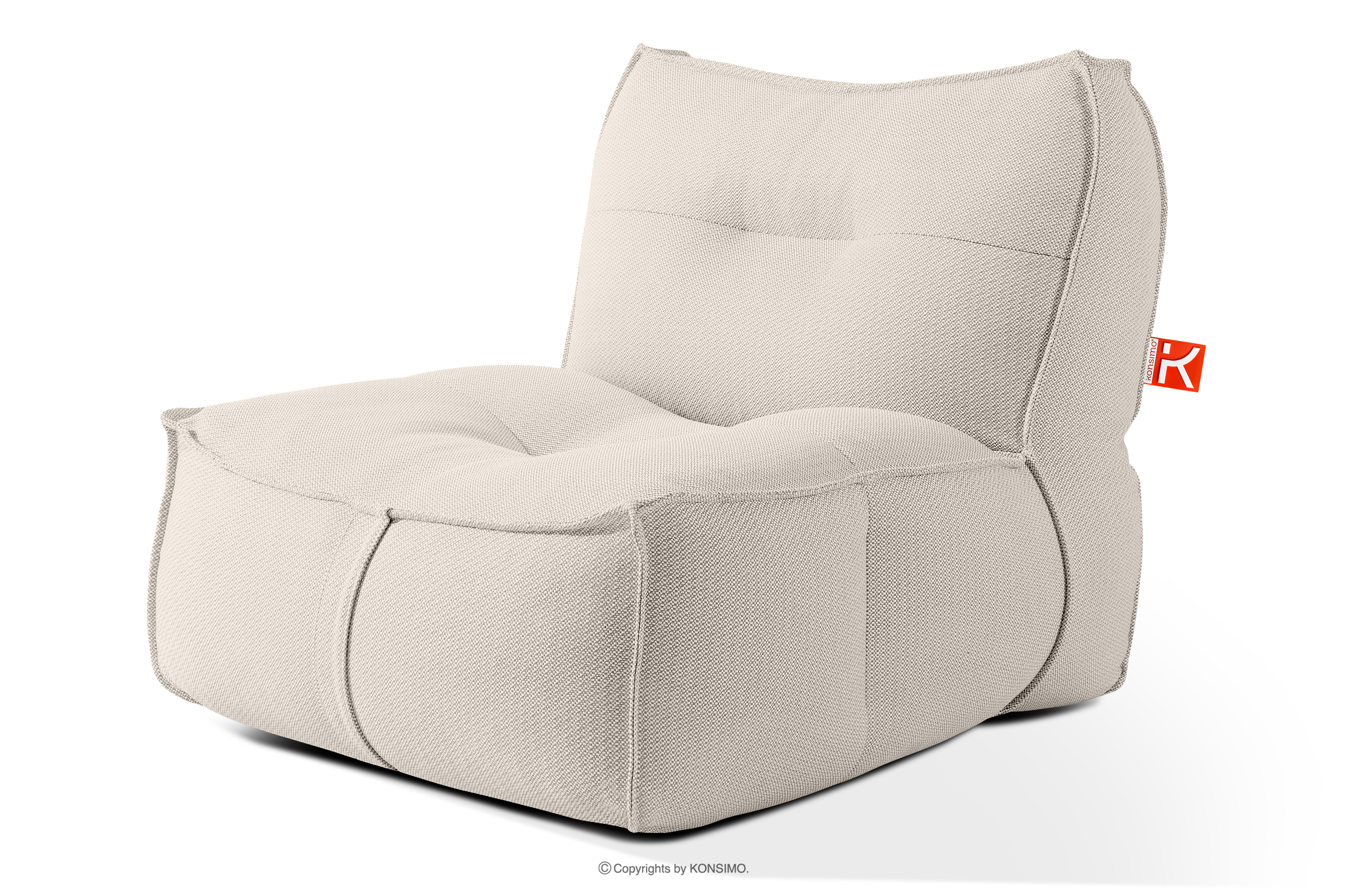 - Dodatočné informácie: spodná časť nábytku z protišmykovej tkaniny, uchopovací pás z čalúnenia pre ľahšie prenášanie, vonkajší poťah z nepremokavého materiálu všitý do konštrukcie nábytku, skrytý vo vnútri a uzatvárateľný na zips, všitá gumička v obale zabraňuje skĺznutiu z nábytku