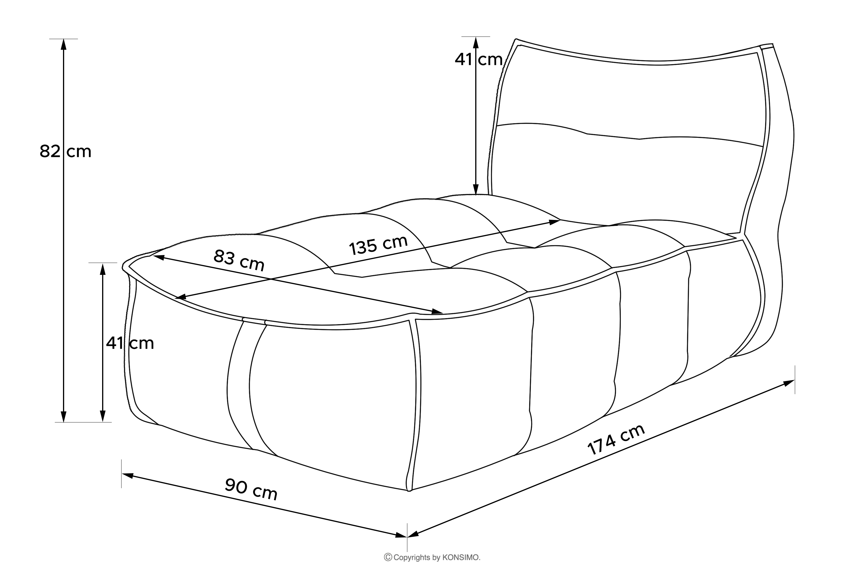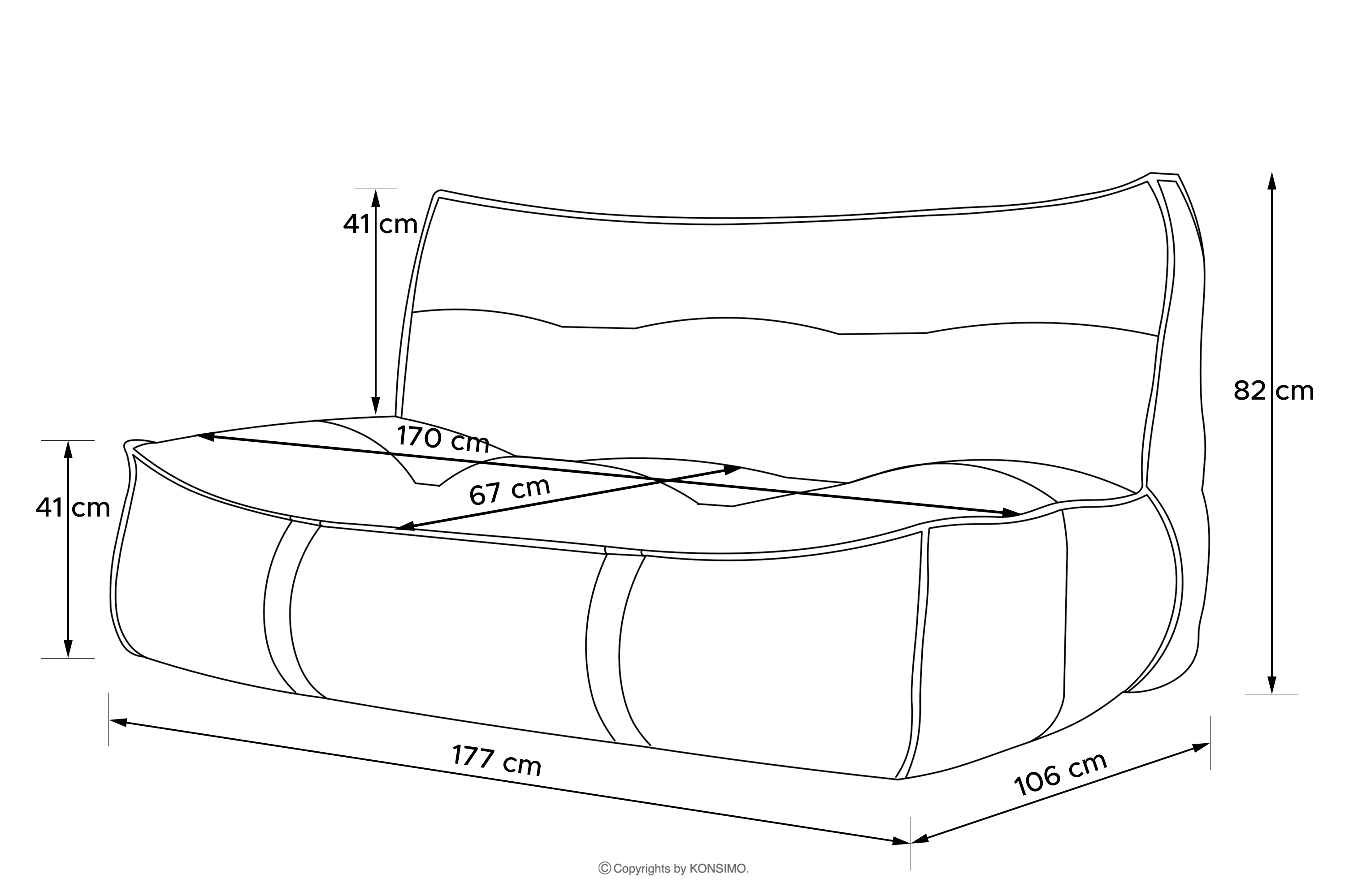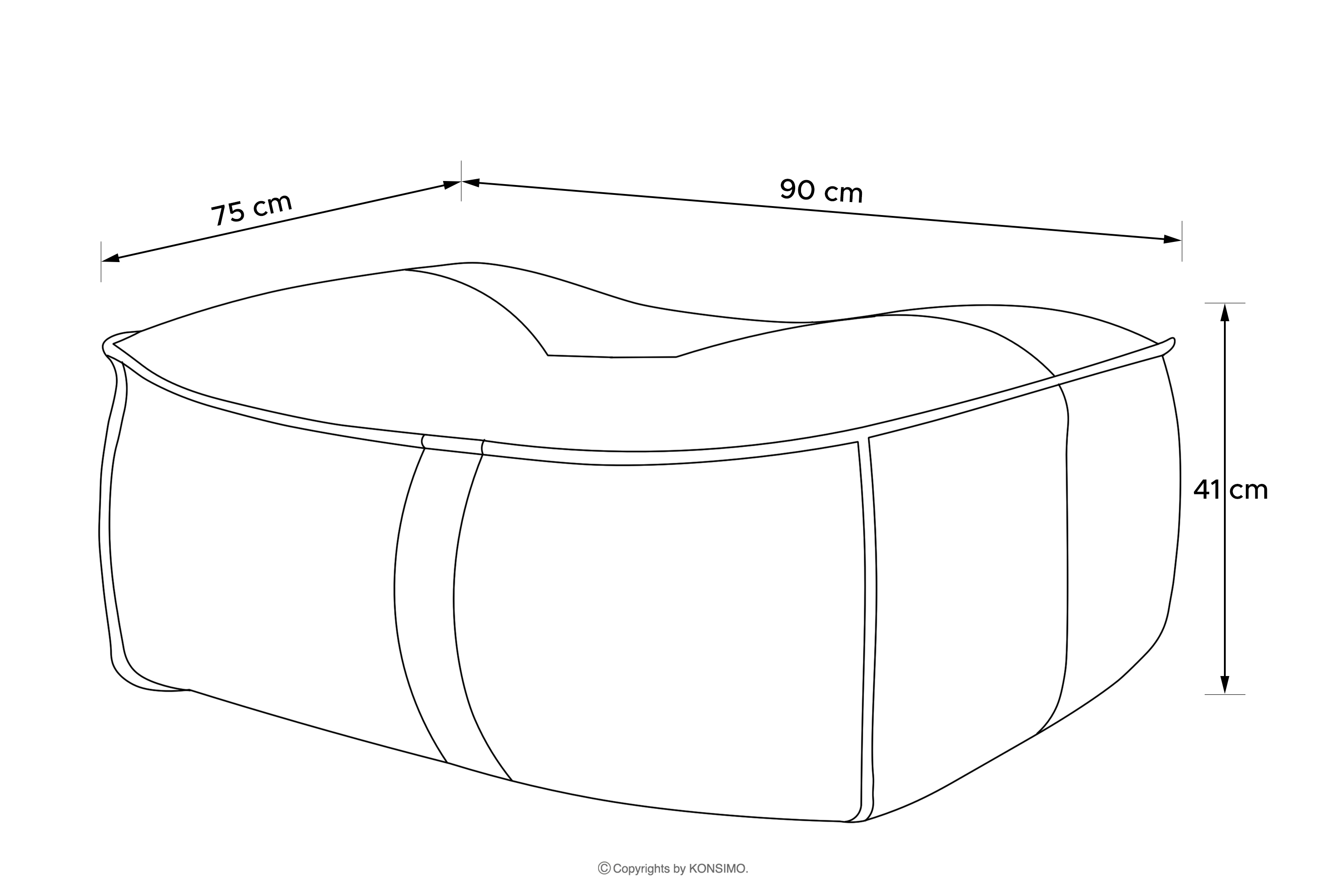 - Dodatočné informácie: spodná časť nábytku z protišmykovej tkaniny, uchopovací pás z čalúnenia pre ľahšie prenášanie, vonkajší poťah z nepremokavého materiálu všitý do konštrukcie nábytku, skrytý vo vnútri a uzatvárateľný na zips, všitá gumička v obale zabraňuje skĺznutiu z nábytku
