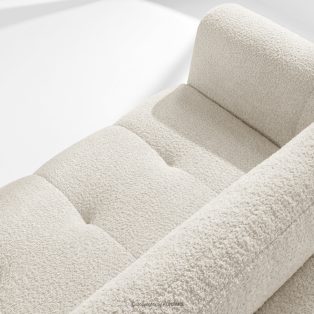 Trojmiestna pohovka z tkaniny boucle biela dodá interiéru luxusný a útulný charakter. Unikátna štruktúra tkaniny vytvára jemné vzory, ktoré krásne ladia s prirodzeným svetlom a dodávajú nábytku hĺbku a charakter. Čalúnená luxusnou látkou boucle, táto pohovka zaujme svojou mäkkosťou a príjemným povrchom na dotyk. Inovatívny pružinový systém DL zaisťuje výnimočnú odolnosť a pružnosť sedadla.