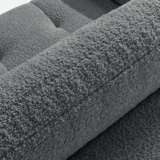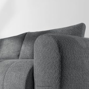 Pohovka a puf bucle tmavosivá dodá interiéru luxusný a útulný charakter. Unikátna štruktúra tkaniny vytvára jemné vzory, ktoré krásne ladia s prirodzeným svetlom a dodávajú nábytku hĺbku a charakter. Čalúnená luxusnou látkou boucle, táto pohovka nadchne svojou mäkkosťou a príjemným povrchom na dotyk. Inovatívny pružinový systém DL zaisťuje výnimočnú odolnosť a pružnosť sedadla.
