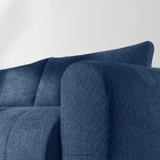 Pohovka a puf z látky boucle námornícka modrá dodá interiéru luxusný a útulný charakter. Unikátna štruktúra tkaniny vytvára jemné vzory, ktoré krásne ladia s prirodzeným svetlom a dodávajú nábytku hĺbku a charakter. Čalúnená luxusnou látkou boucle, táto pohovka nadchne svojou mäkkosťou a príjemným povrchom na dotyk. Inovatívny pružinový systém DL zaisťuje výnimočnú odolnosť a pružnosť sedadla.