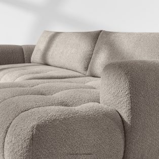 Pravá rohová pohovka a puf z látky boucle sivej farby dodá interiéru luxusný a útulný charakter. Unikátna štruktúra tkaniny vytvára jemné vzory, ktoré krásne ladia s prirodzeným svetlom a dodávajú nábytku hĺbku a charakter. Čalúnená luxusnou látkou boucle, táto pohovka nadchne svojou mäkkosťou a príjemným povrchom na dotyk. Inovatívny pružinový systém DL zaisťuje výnimočnú odolnosť a pružnosť sedadla.