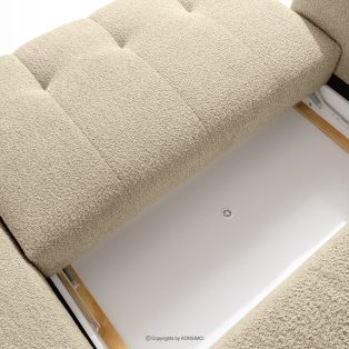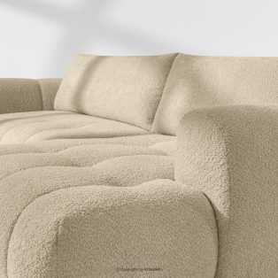 Pravá rohová pohovka a puf z bucle tkaniny svetlo béžovej farby dodá interiéru luxusný a útulný charakter. Unikátna štruktúra tkaniny vytvára jemné vzory, ktoré krásne ladia s prirodzeným svetlom a dodávajú nábytku hĺbku a charakter. Čalúnená luxusnou látkou boucle, táto pohovka nadchne svojou mäkkosťou a príjemným povrchom na dotyk. Inovatívny pružinový systém DL zaisťuje výnimočnú odolnosť a pružnosť sedadla.