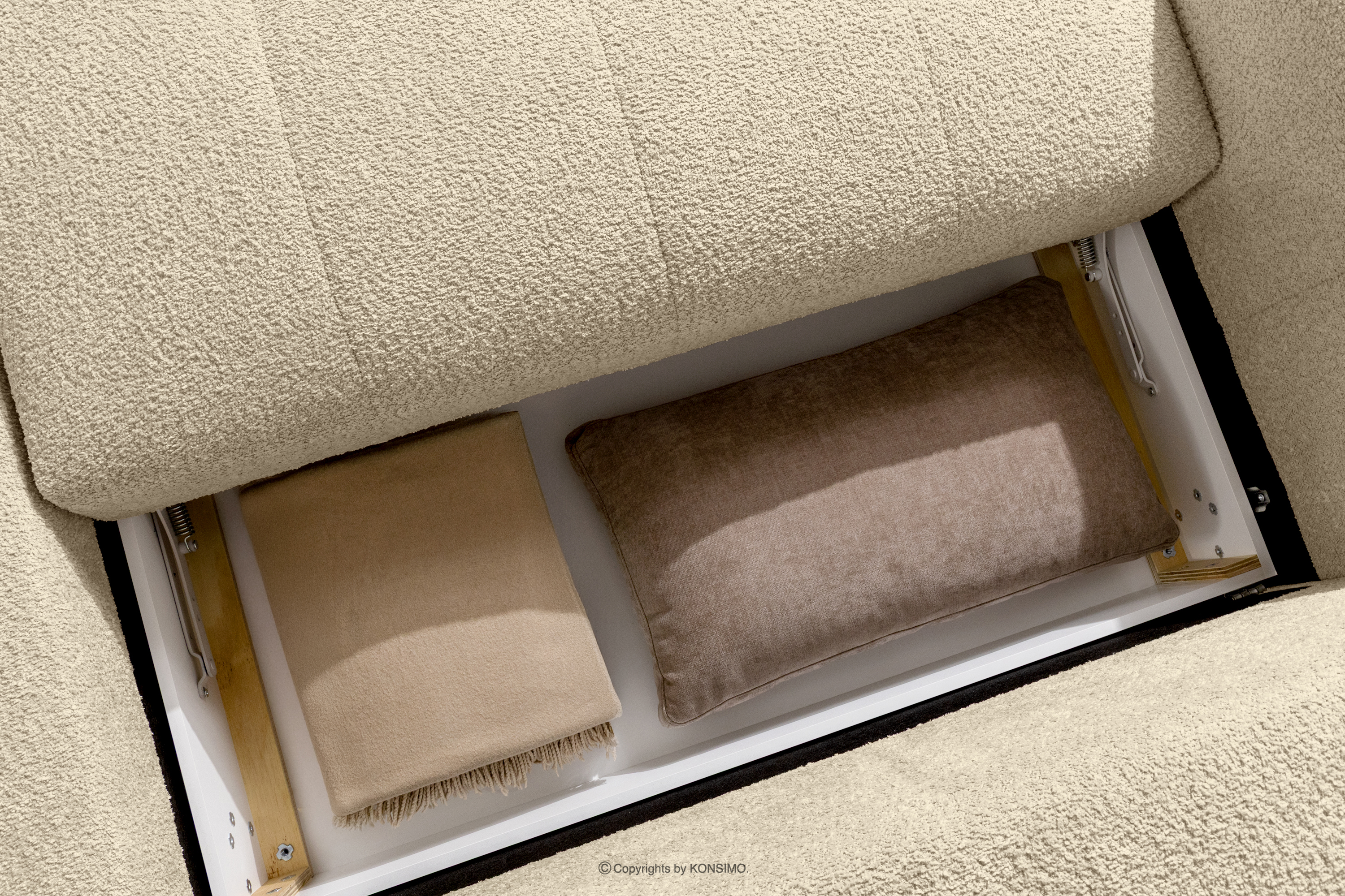 LIRA Objav celú kolekciu Pravá rohová pohovka a puf z bucle tkaniny svetlo béžovej farby- farba svetlo béžová