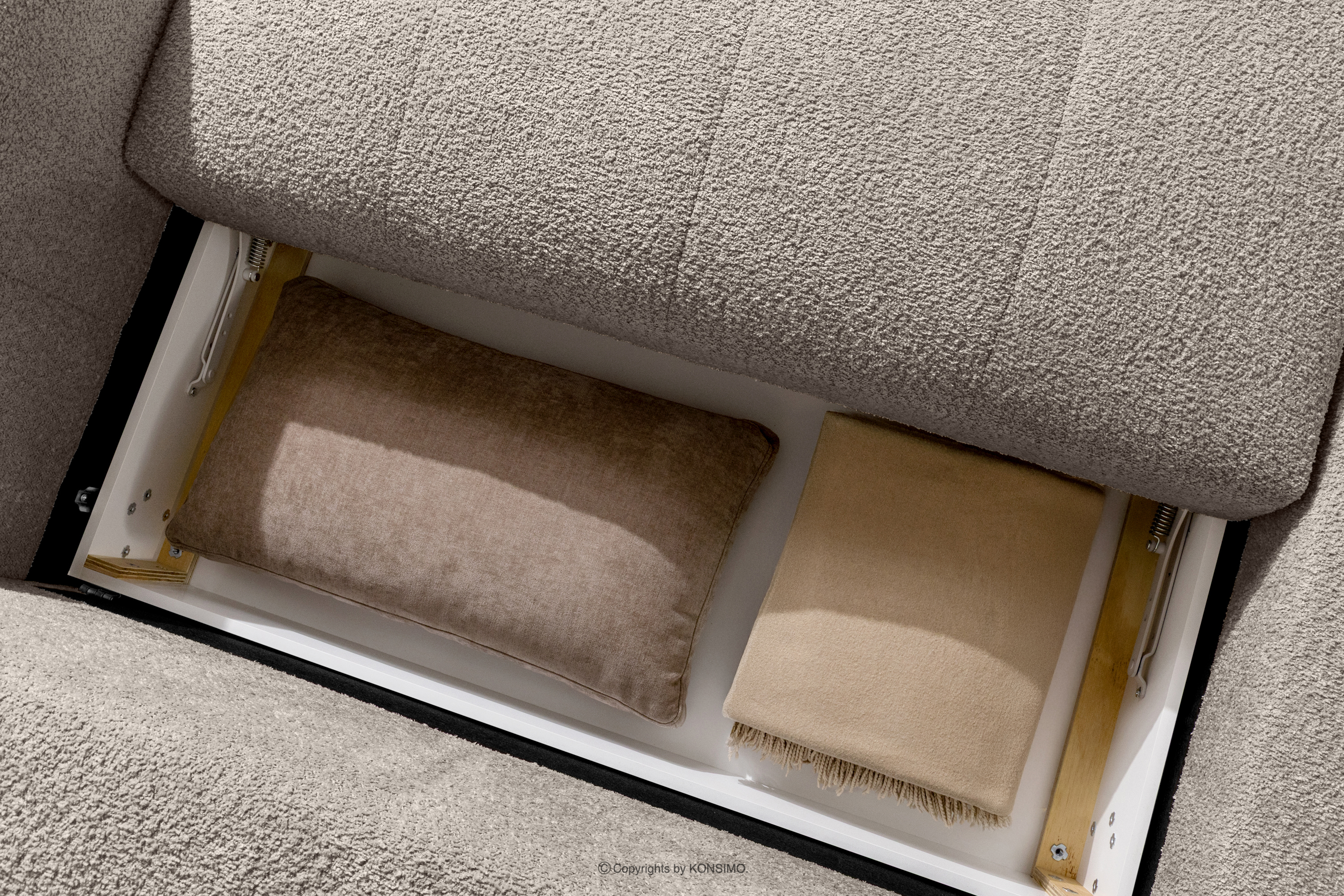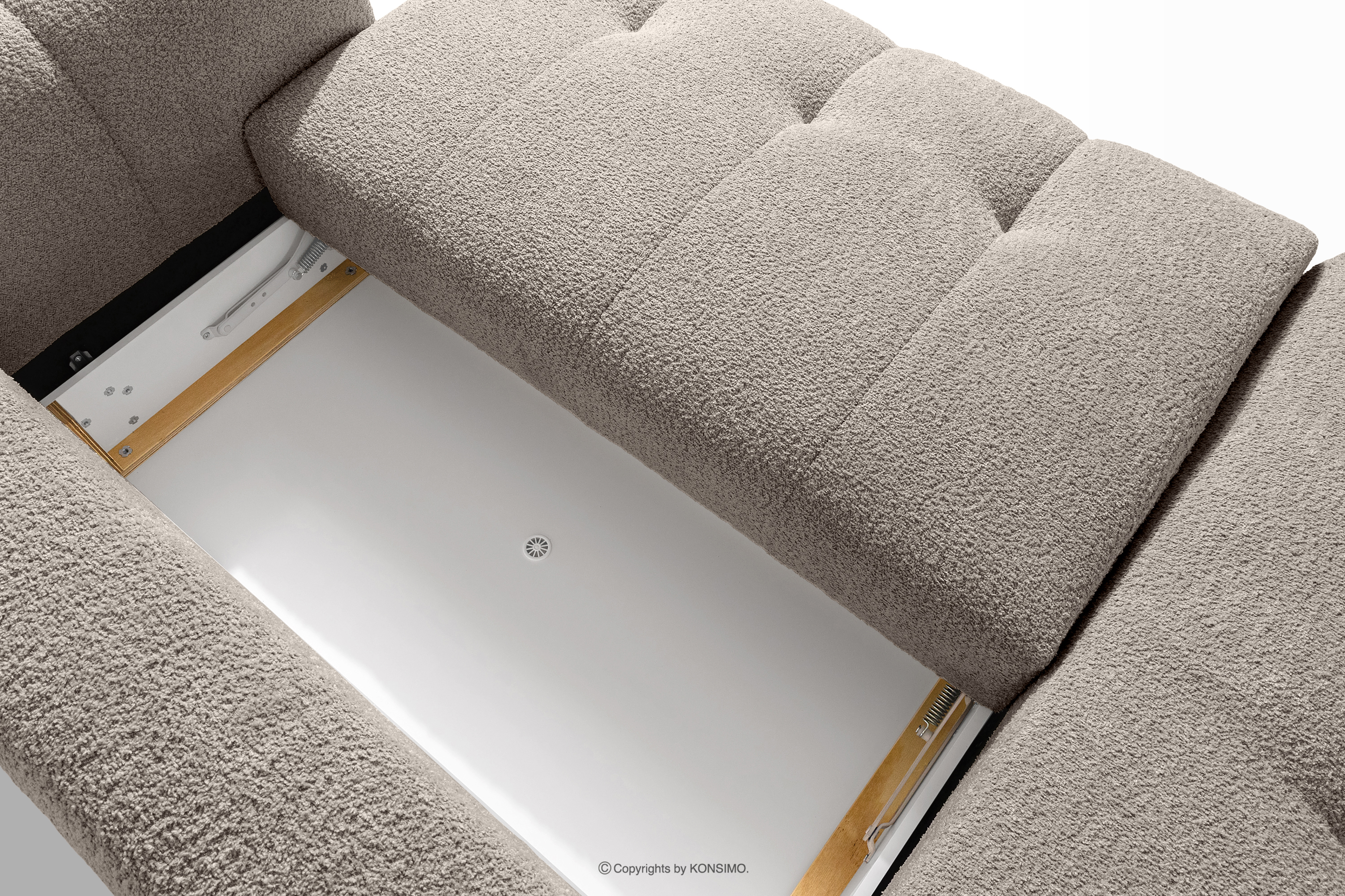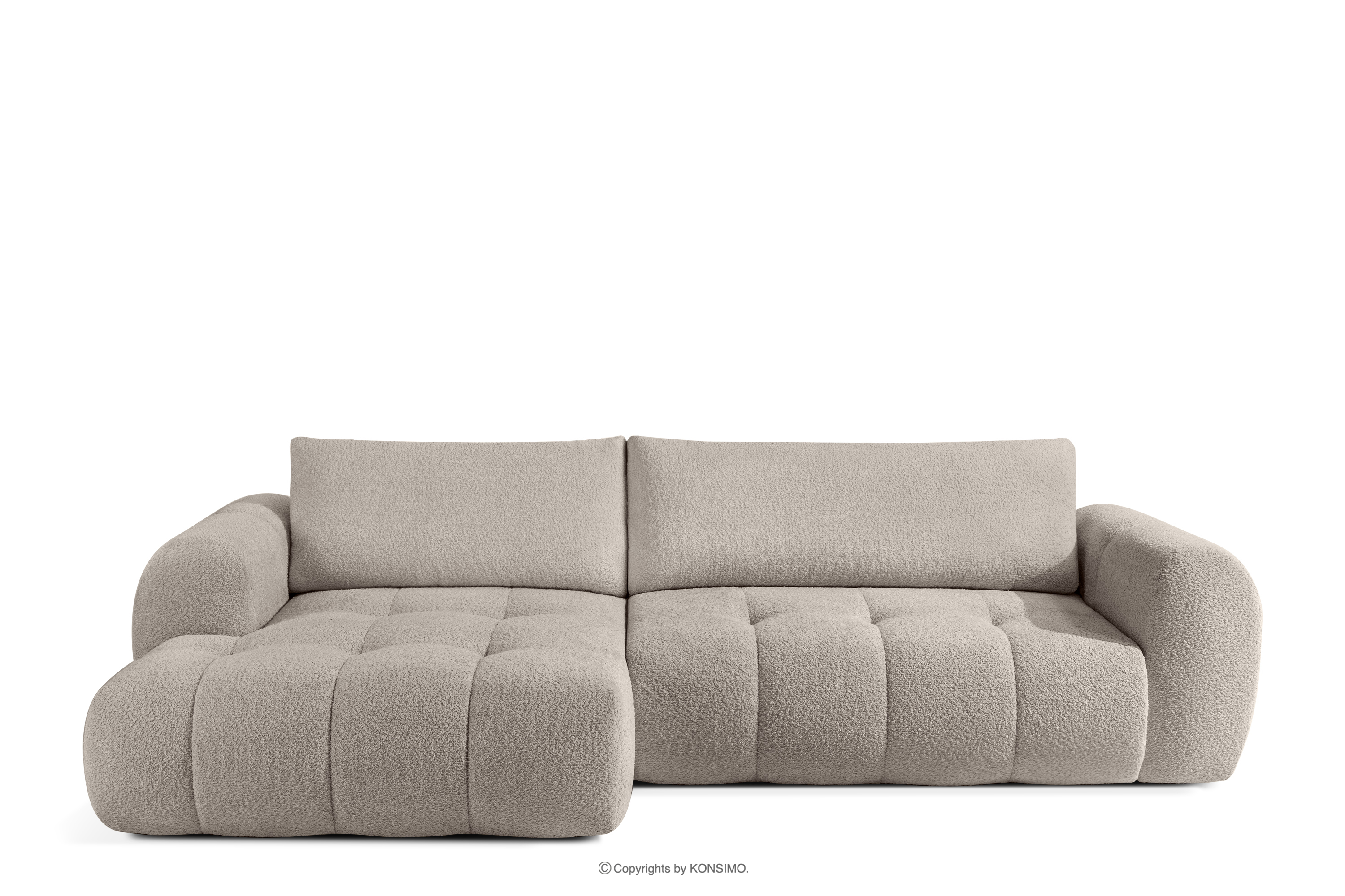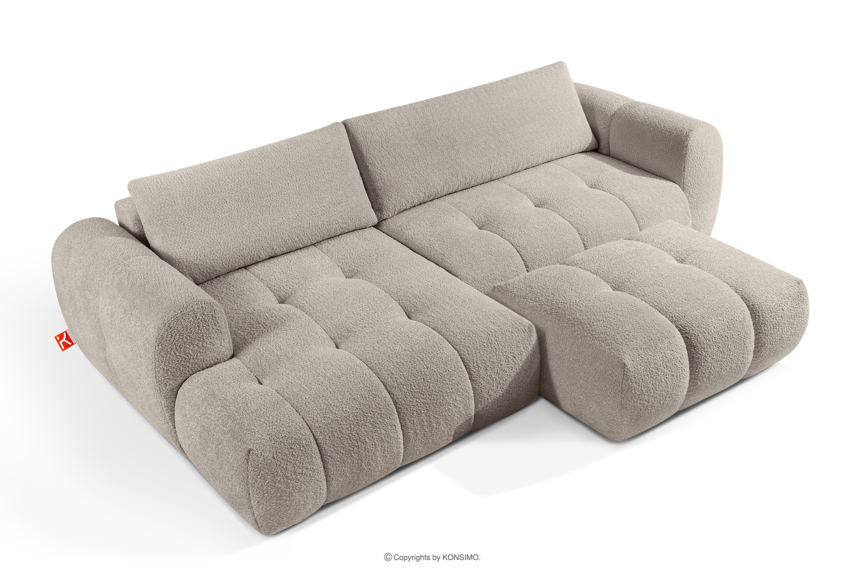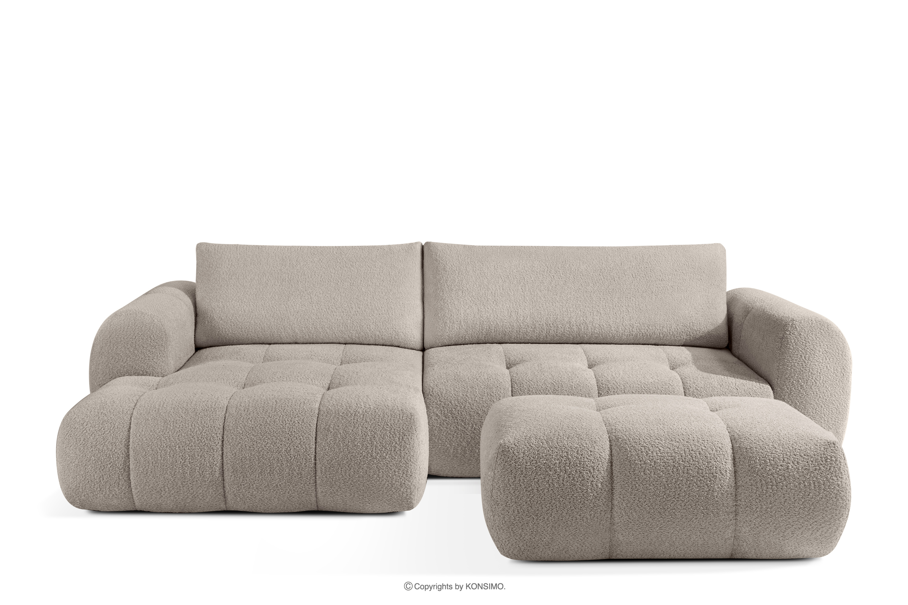 LIRA Objav celú kolekciu Pravá rohová pohovka a puf z látky boucle sivej farby- farba šedá