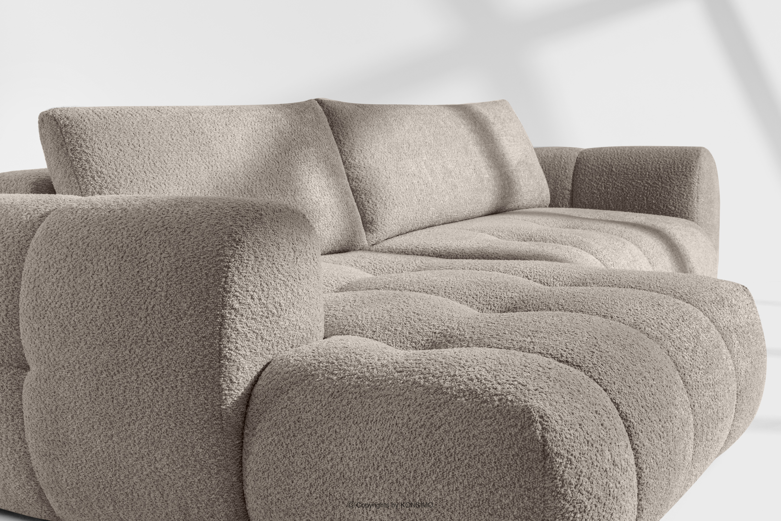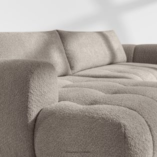 Lavá rohová pohovka a puf z látky boucle sivej farby dodá interiéru luxusný a útulný charakter. Unikátna štruktúra tkaniny vytvára jemné vzory, ktoré krásne ladia s prirodzeným svetlom a dodávajú nábytku hĺbku a charakter. Čalúnená luxusnou látkou boucle, táto pohovka nadchne svojou mäkkosťou a príjemným povrchom na dotyk. Inovatívny pružinový systém DL zaisťuje výnimočnú odolnosť a pružnosť sedadla.