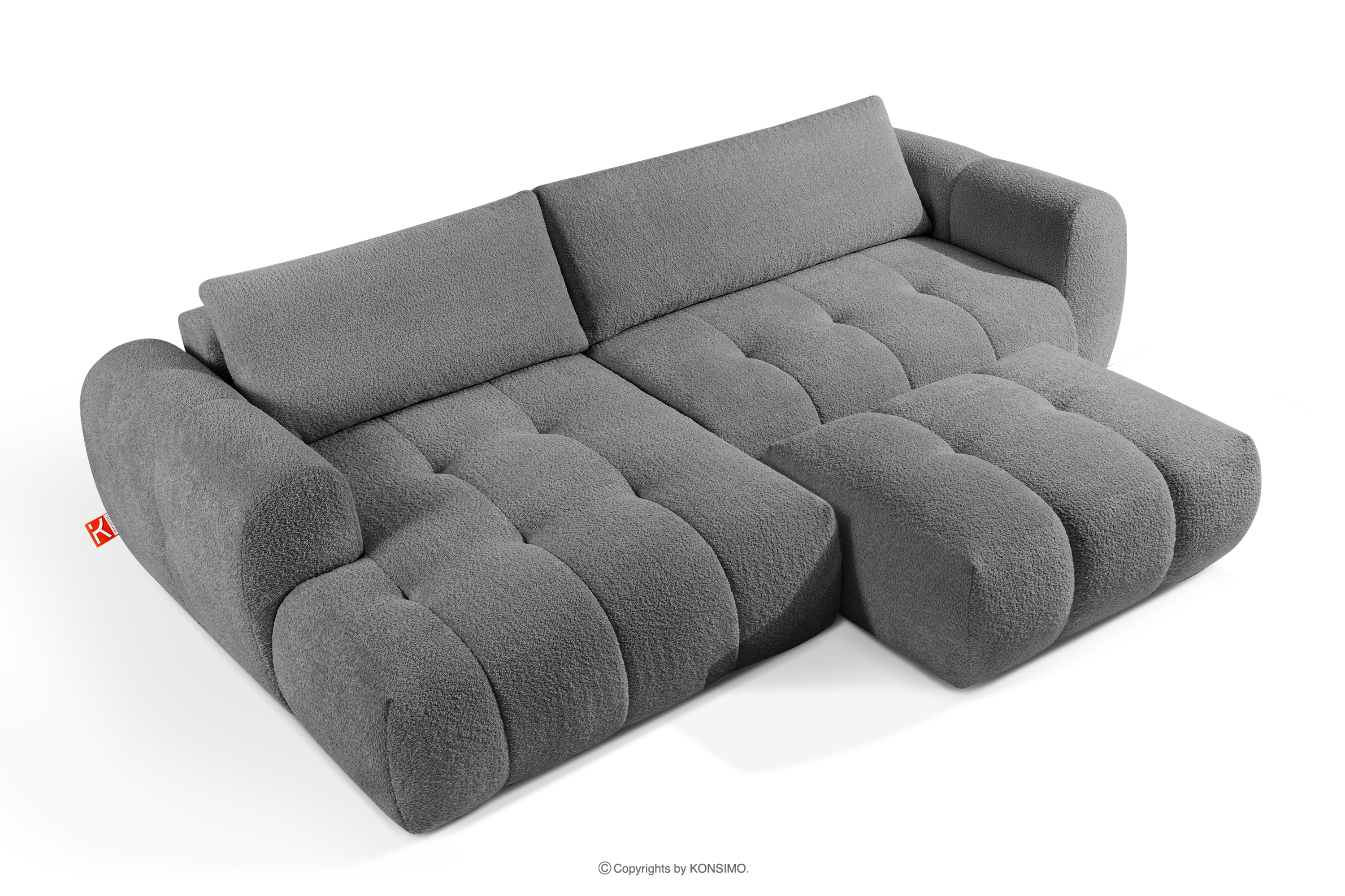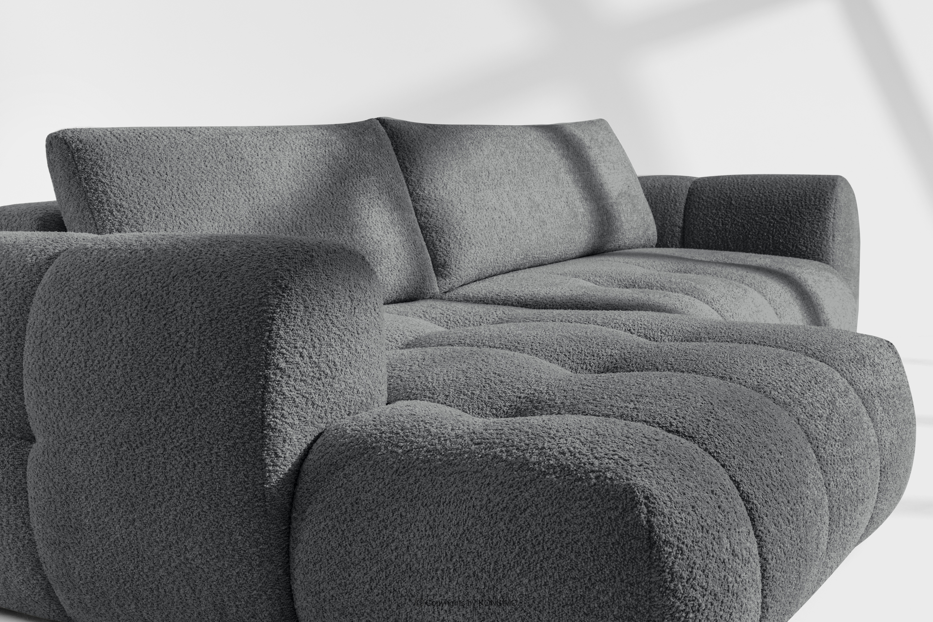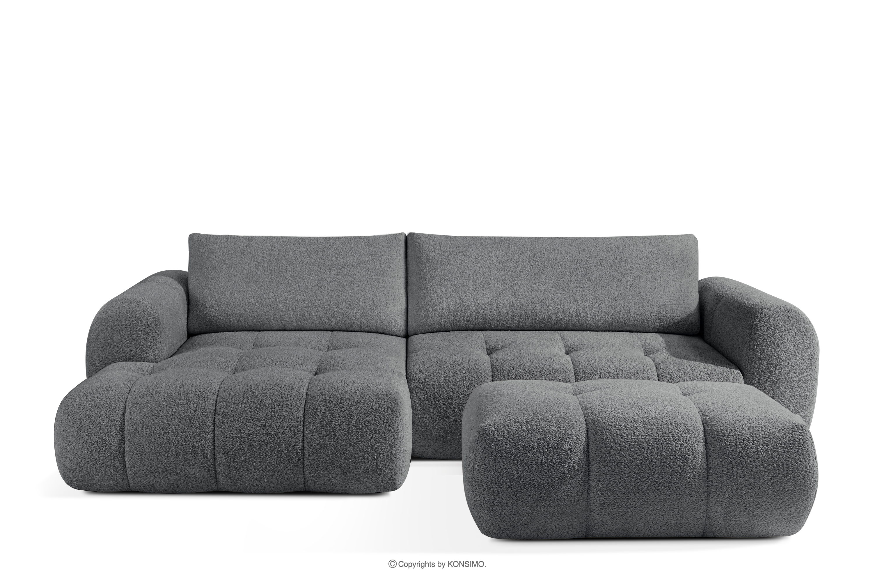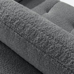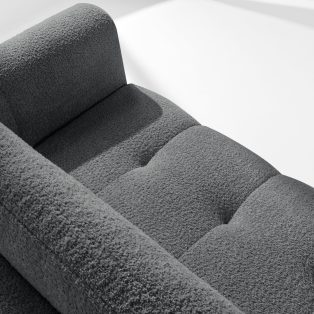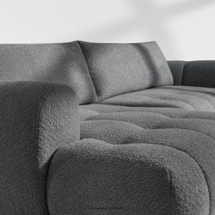 Lavá rohová pohovka a puf tmavosivý dodá interiéru luxusný a útulný charakter. Unikátna štruktúra tkaniny vytvára jemné vzory, ktoré krásne ladia s prirodzeným svetlom a dodávajú nábytku hĺbku a charakter. Čalúnená luxusnou látkou boucle, táto pohovka nadchne svojou mäkkosťou a príjemným povrchom na dotyk. Inovatívny pružinový systém DL zaisťuje výnimočnú odolnosť a pružnosť sedadla.