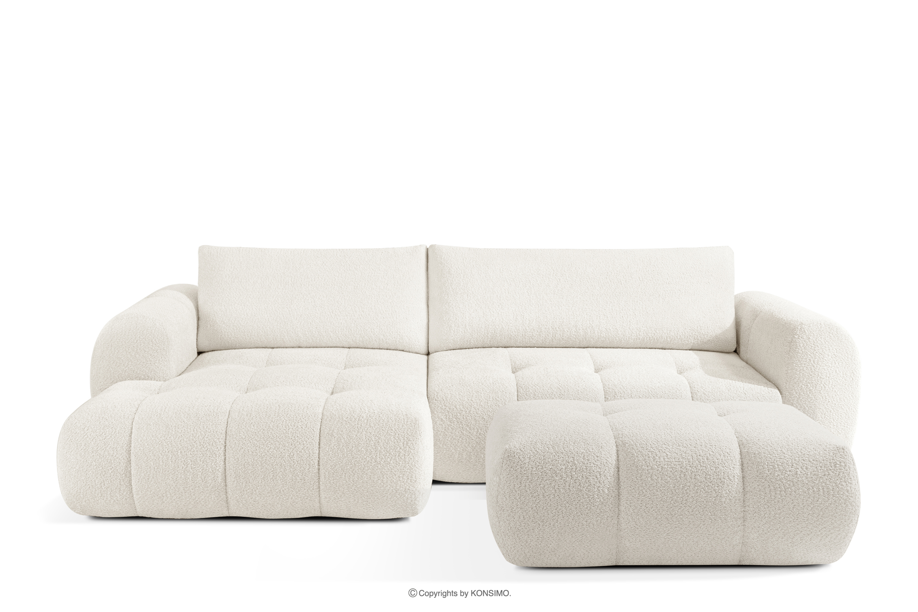 LIRA Objav celú kolekciu Pravá rohová pohovka a puf z látky boucle biela- farba biela