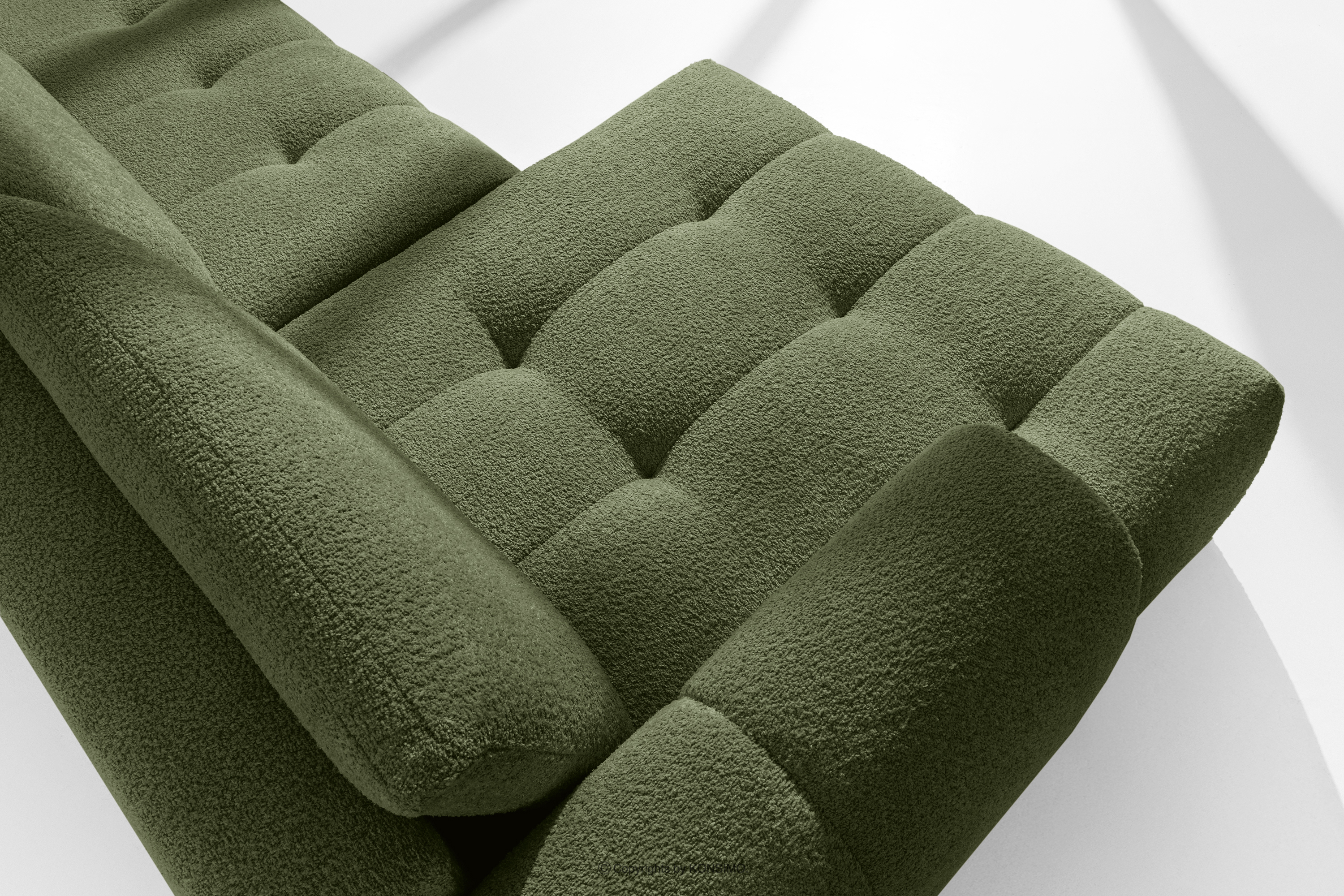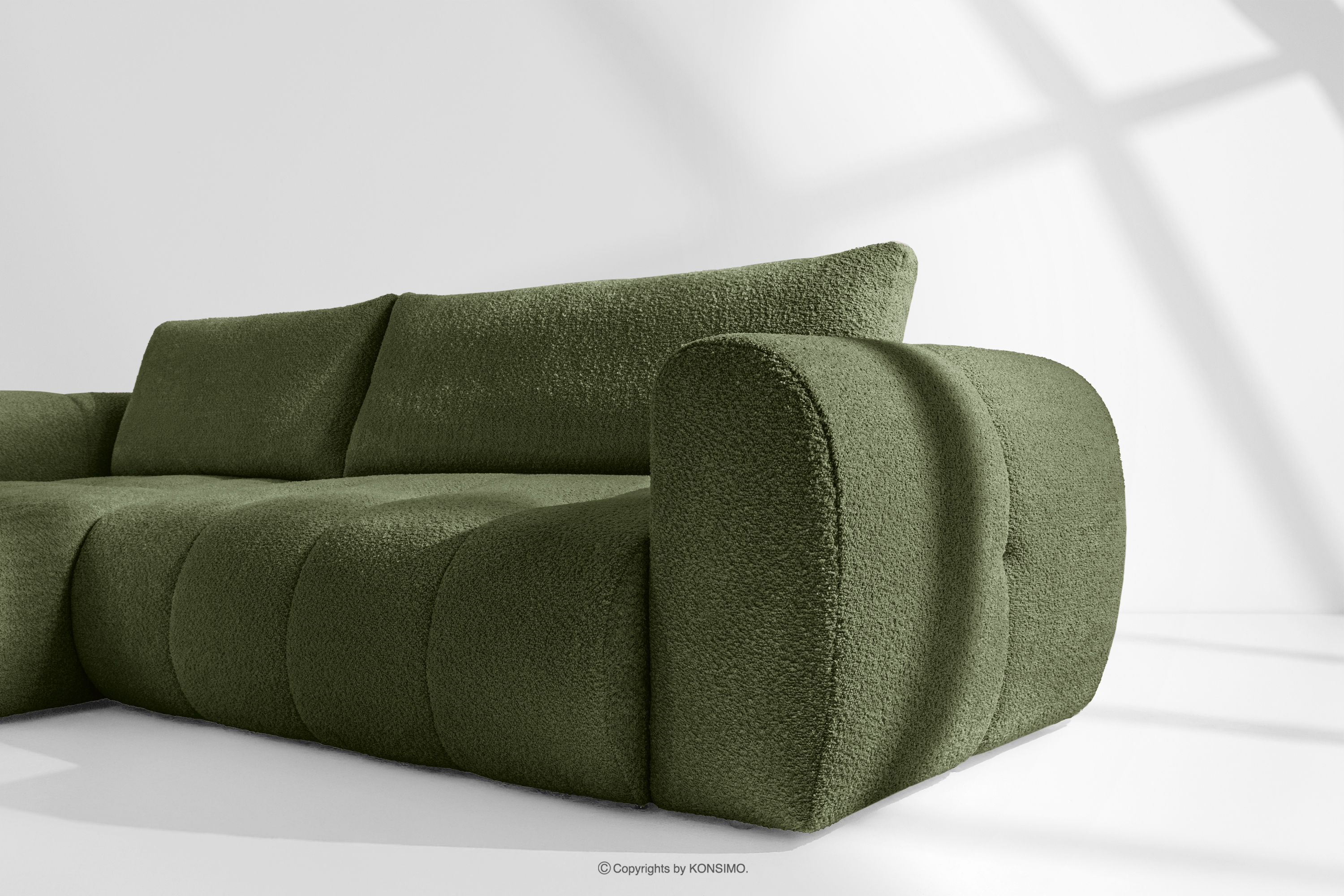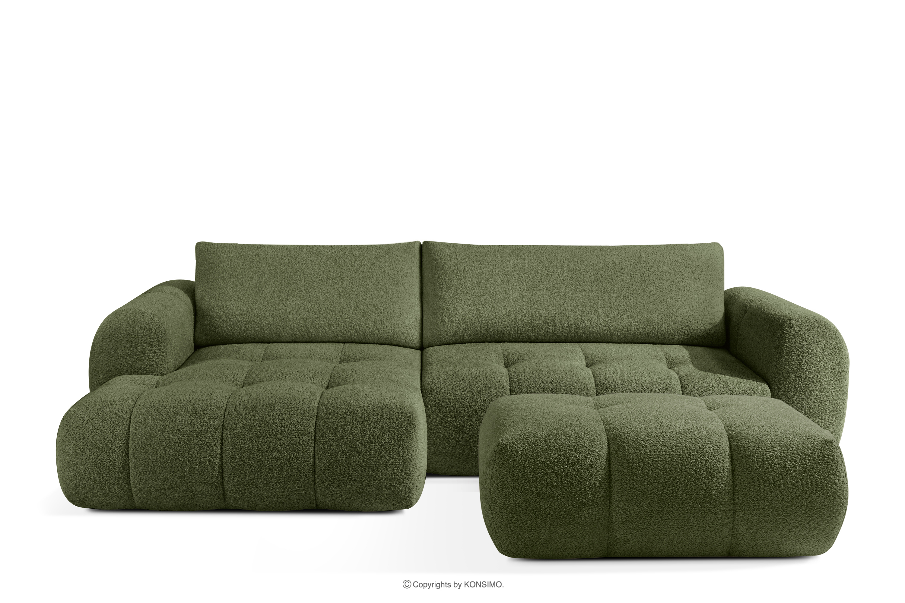 LIRA Objav celú kolekciu Pravá rohová pohovka a puf z látky boucle olivová- farba olivová