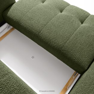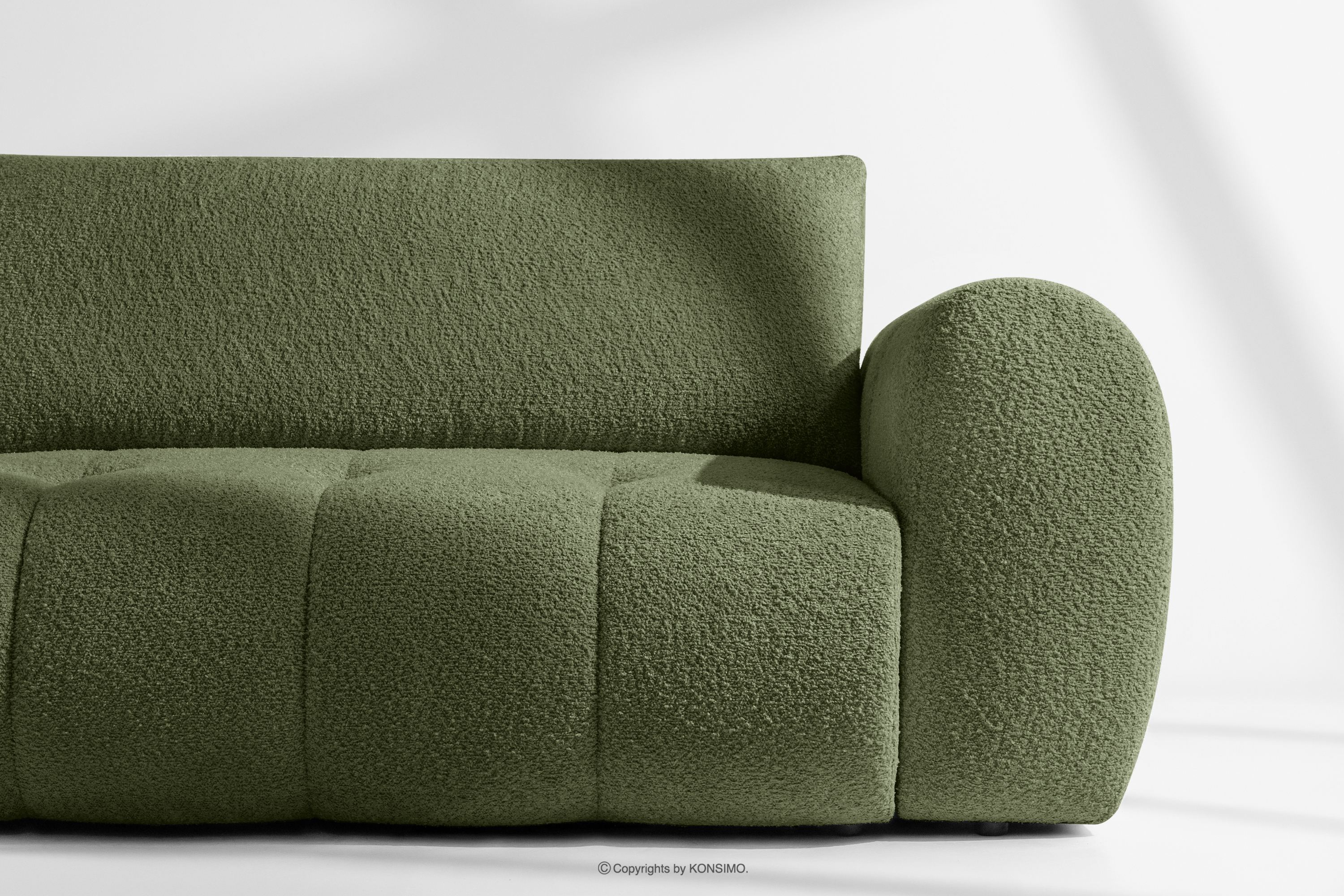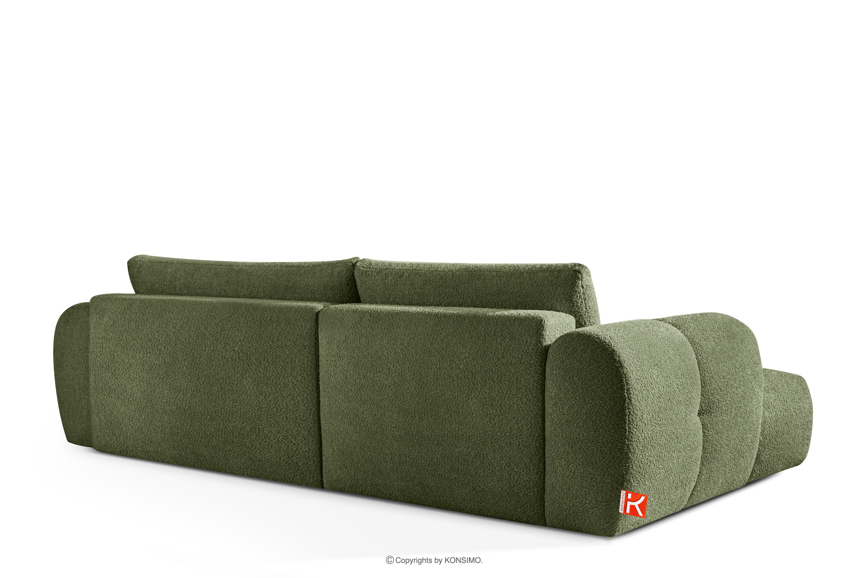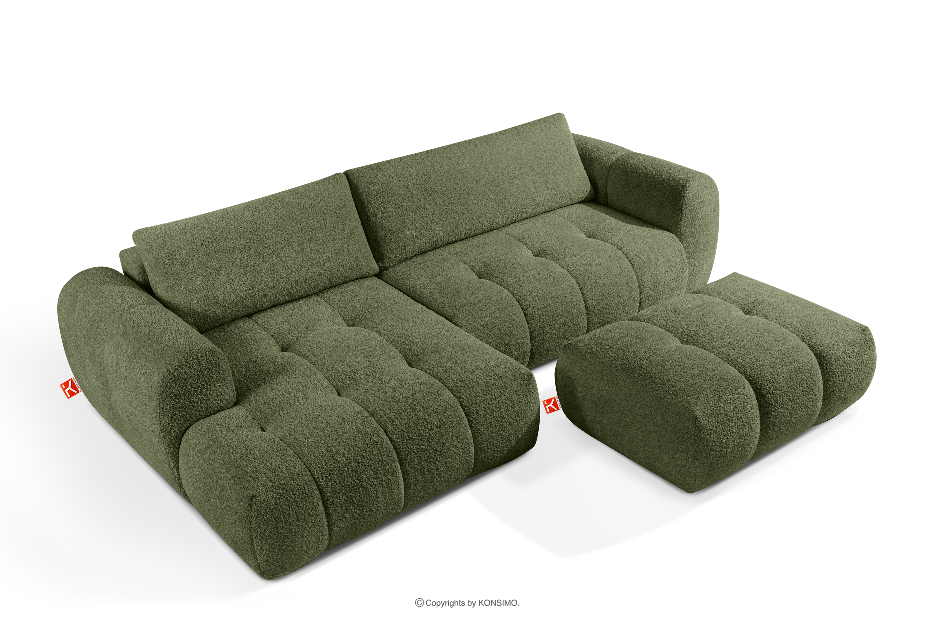 LIRA Objav celú kolekciu Pravá rohová pohovka a puf z látky boucle olivová- farba olivová