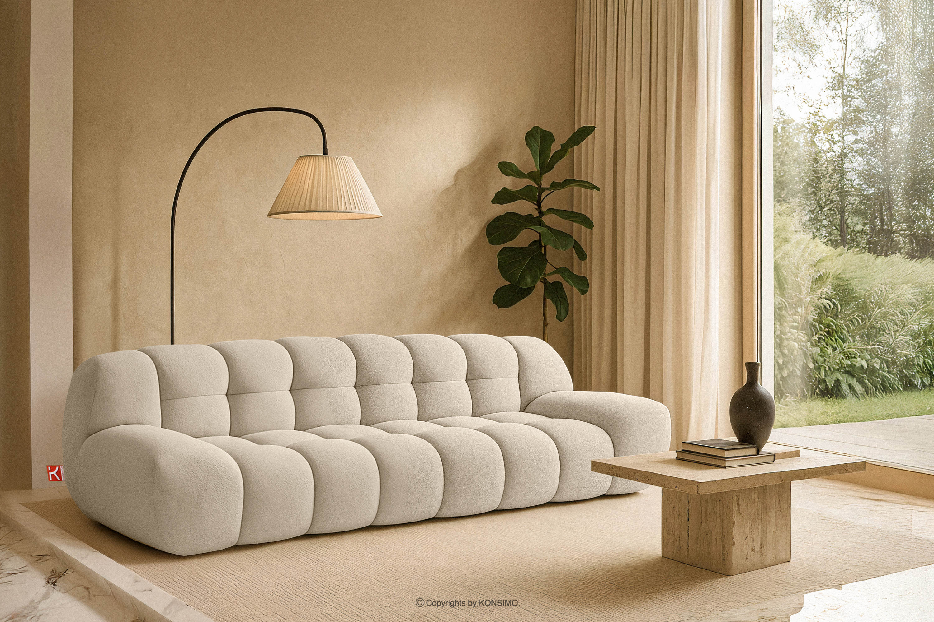 Trojmiestna pohovka v japandi štýle biela nie je len nábytok, je to prejav štýlu, komfortu a inovácie, vytvorený s ohľadom na najnáročnejších používateľov. Táto kolekcia, ktorá dokonale zapadá do harmonickej estetiky Japandi, premení každý interiér na oázu pokoja a sofistikovanosti. Najvýraznejším prvkom je inovatívny tvar „bubble“, ktorý dodáva nábytku jedinečný, mäkký vzhľad.