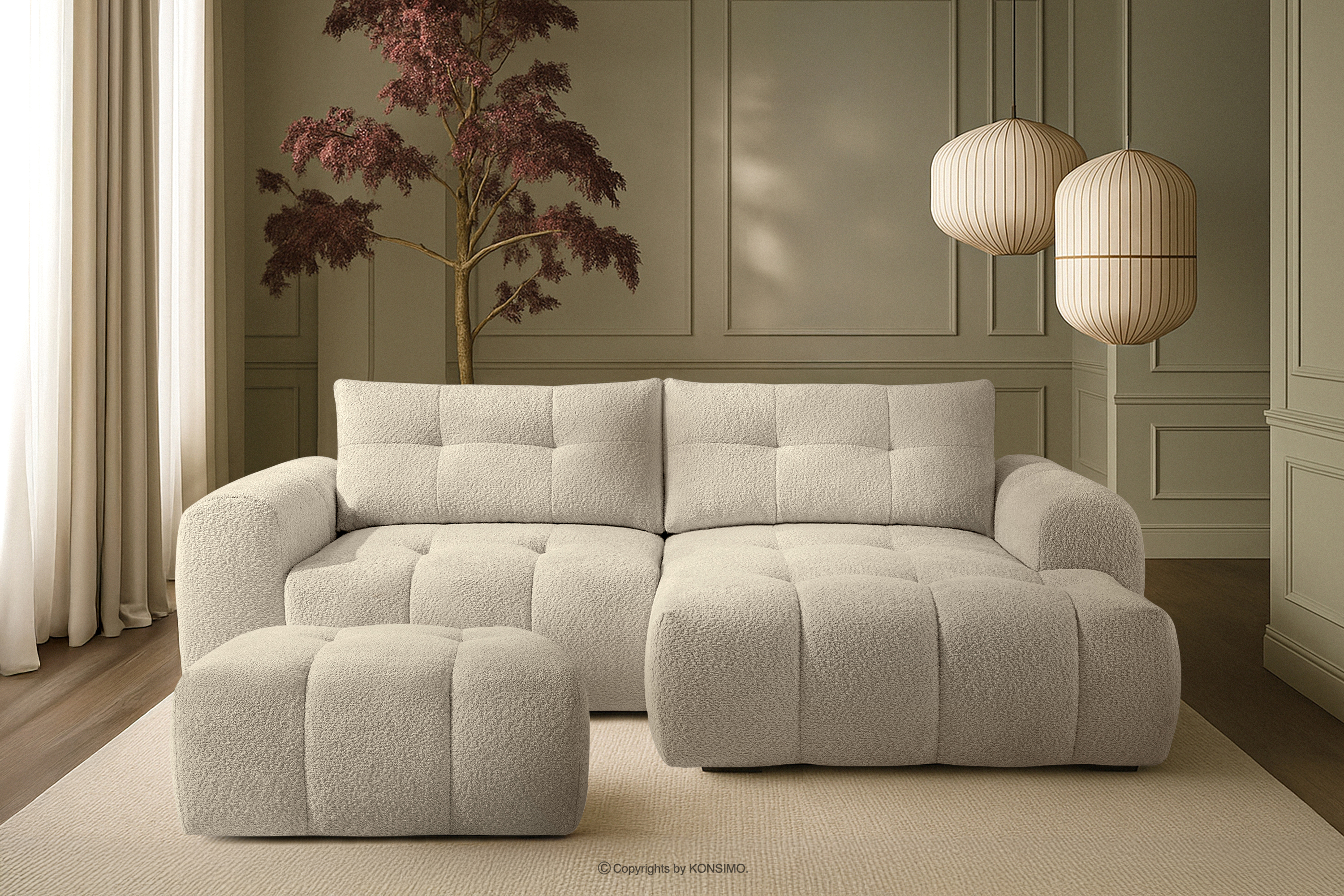 Puf boucle v štýle japandi