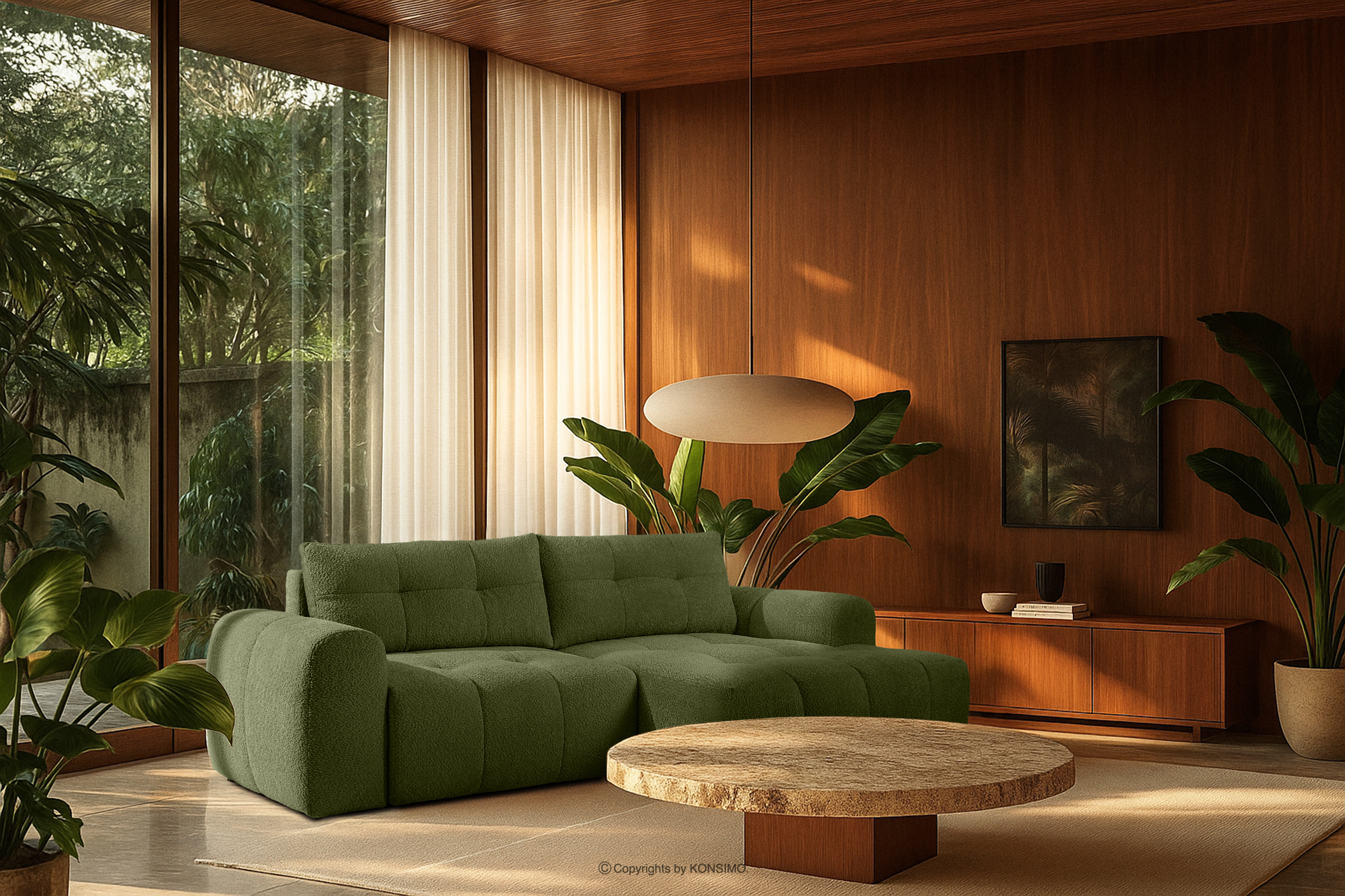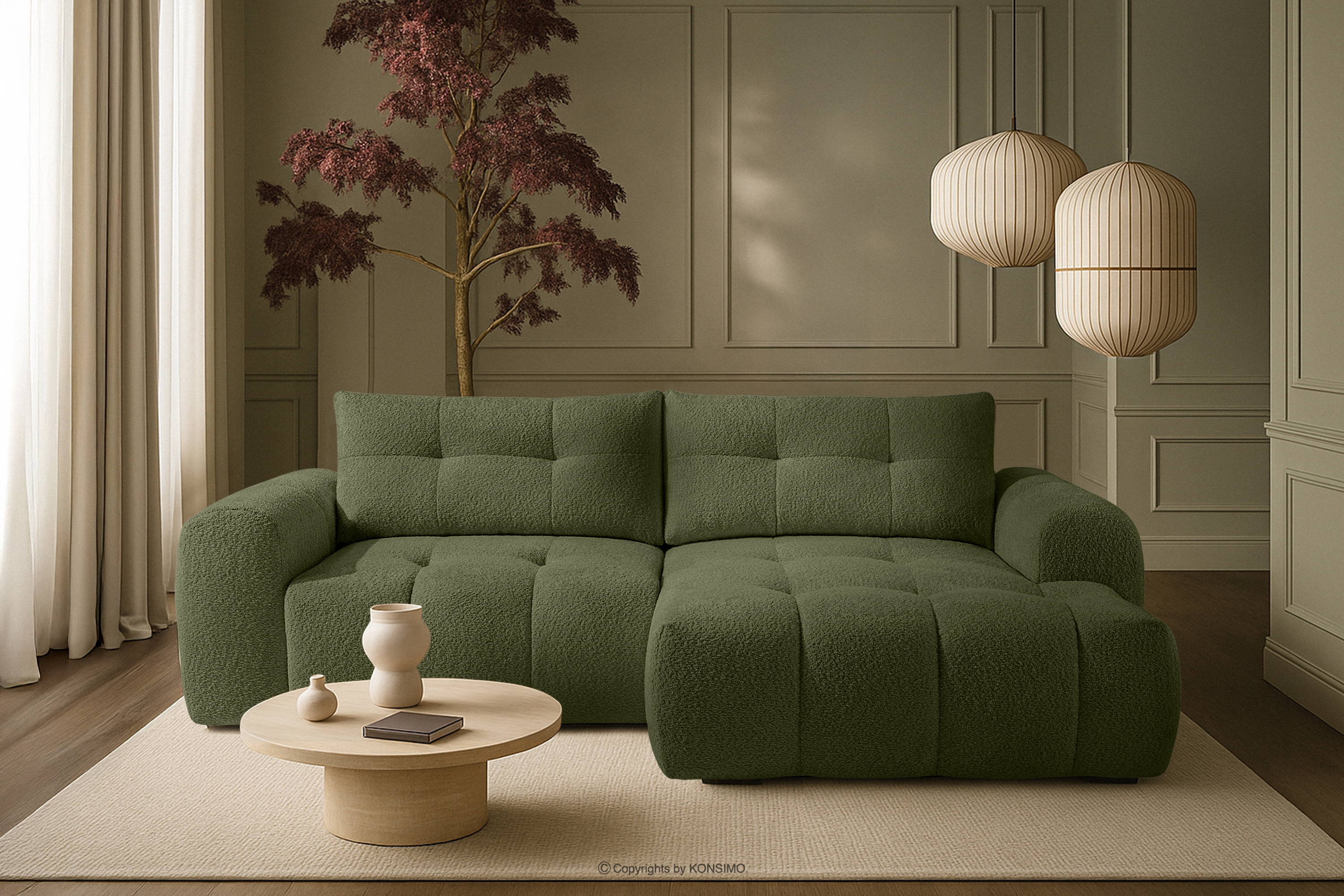 produktu Japandi boucle prošívaná rohová sedačka pravá olivová
