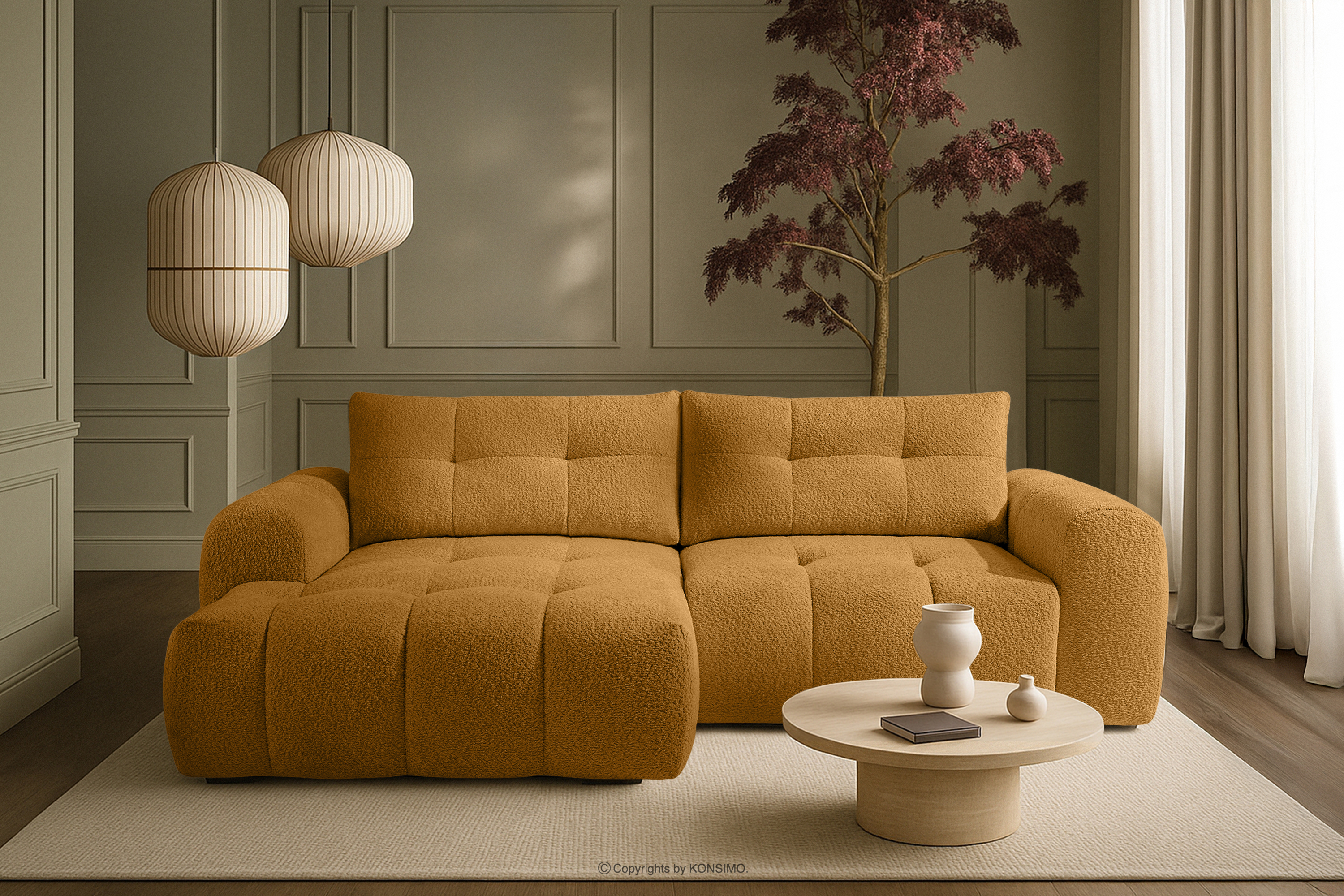 RAVIA Objav celú kolekciu Rohová pohovka s japandim prošíváním boucle levá medová- farba medová